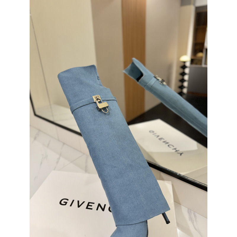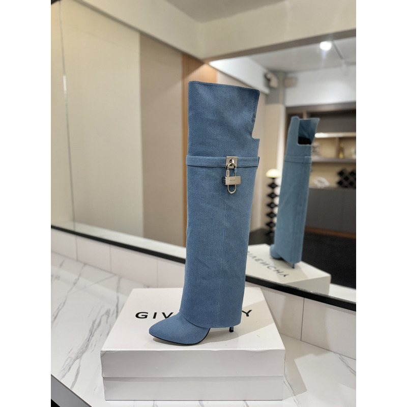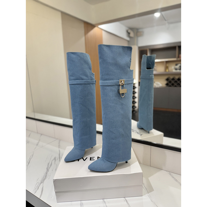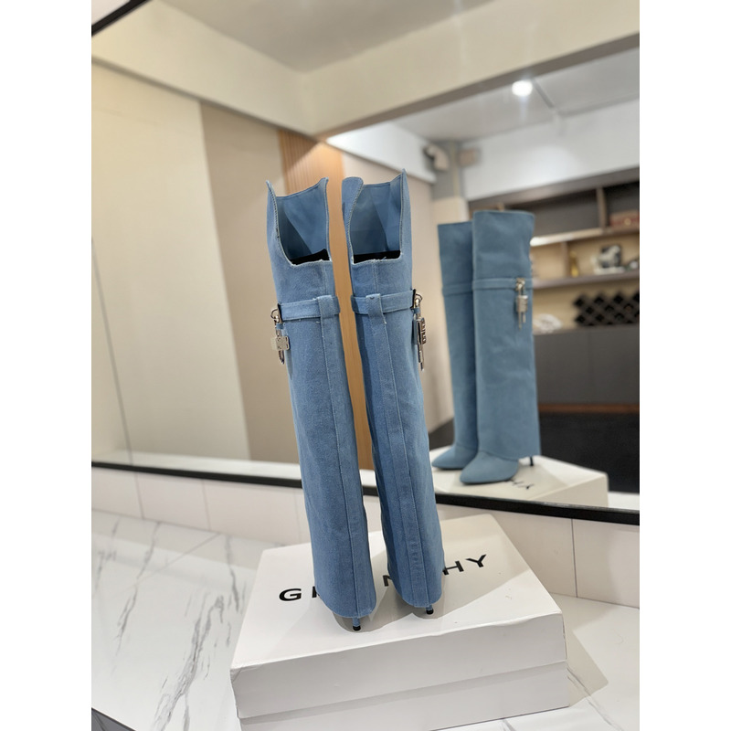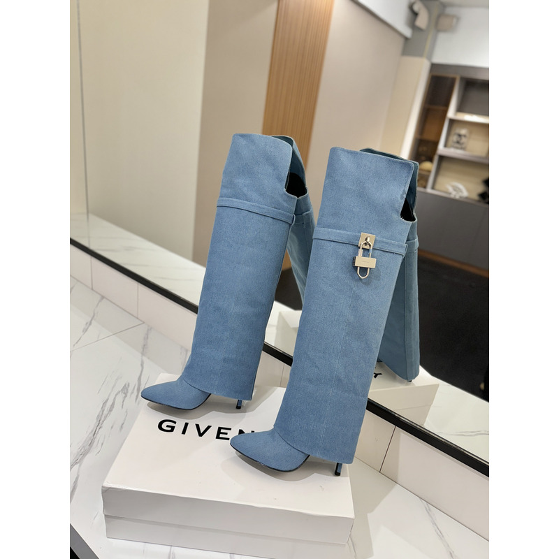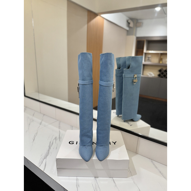 Givenchy Shark Lock Boots In Leather In Blue