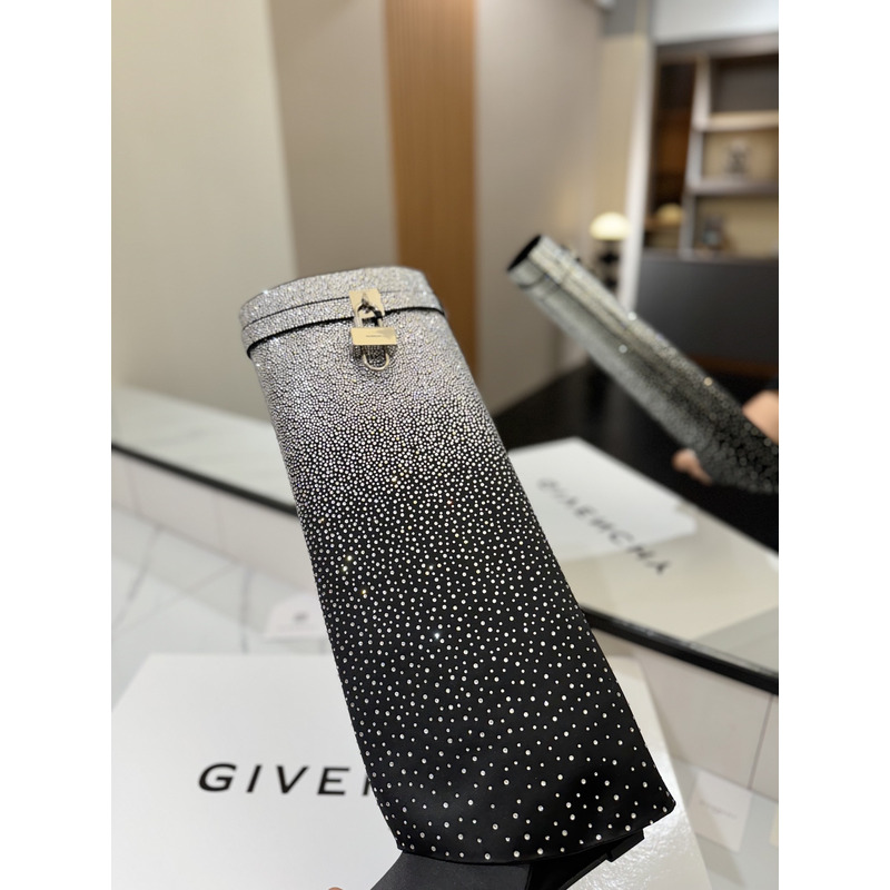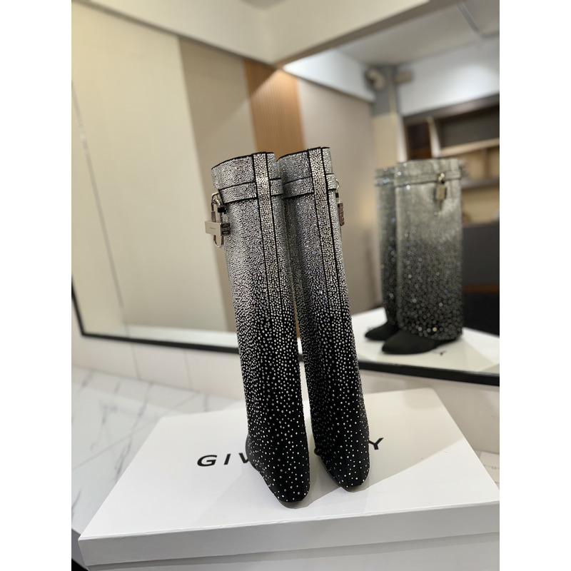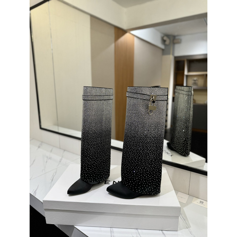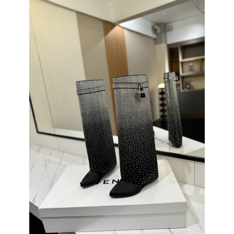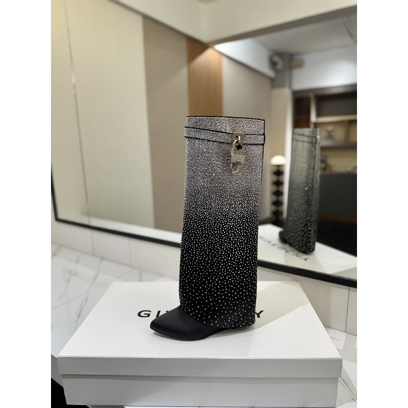 Givenchy Shark Lock Boots In Satin With Strass Black to Silver Gradient
