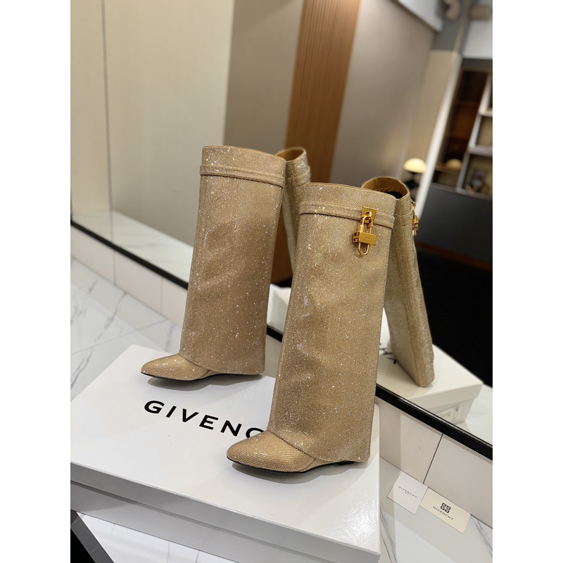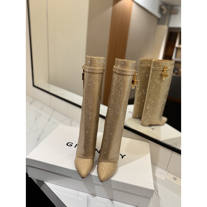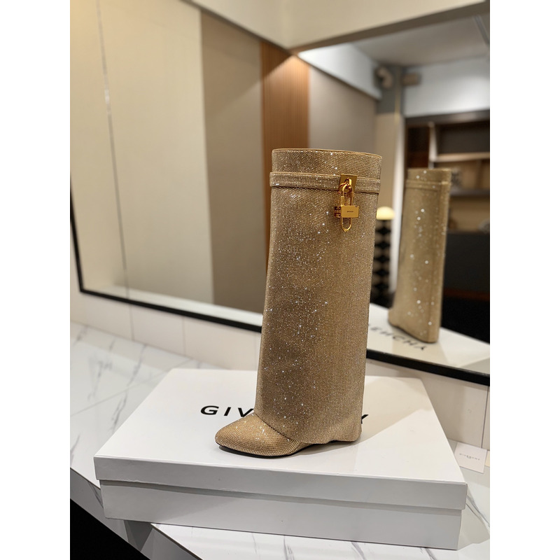 Givenchy Shark Lock Boots In Satin With Strass In Blond Gold