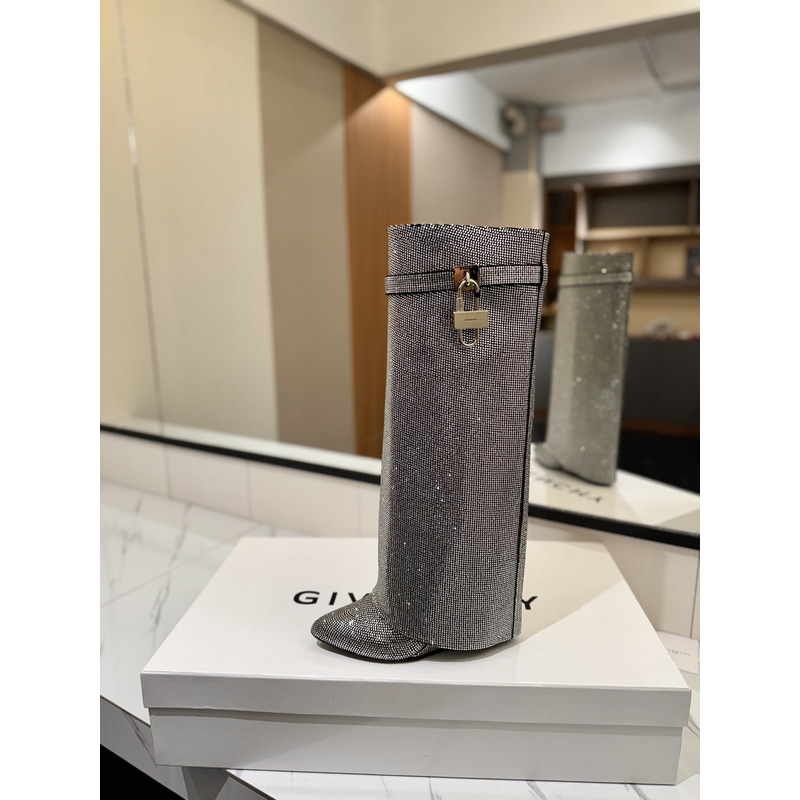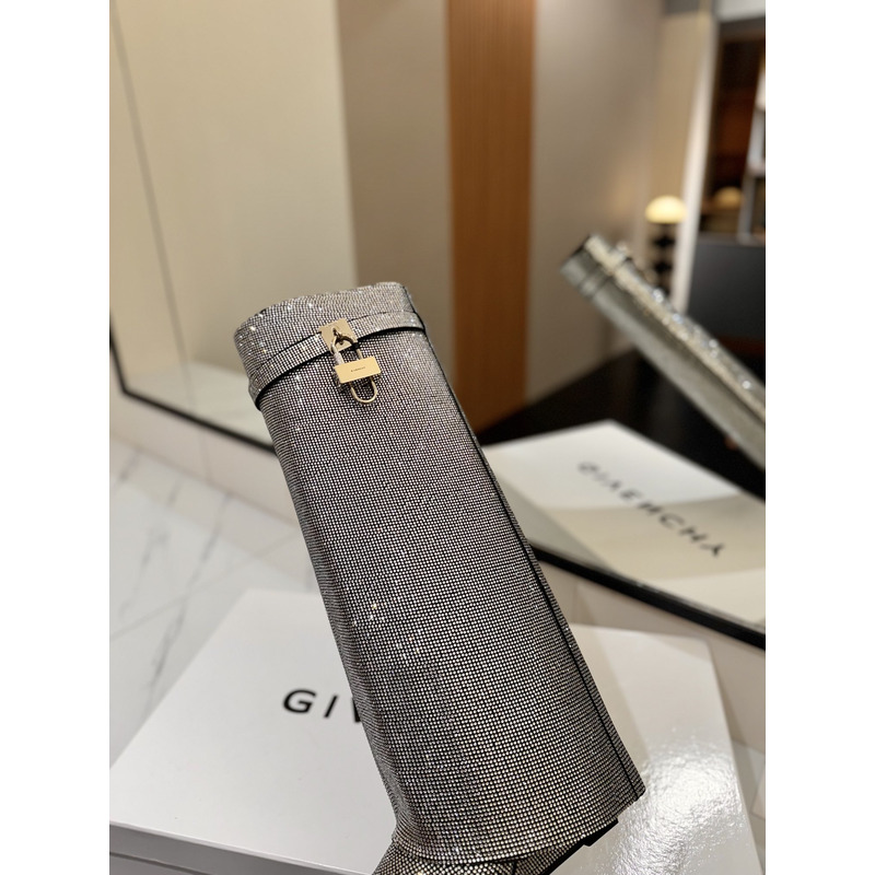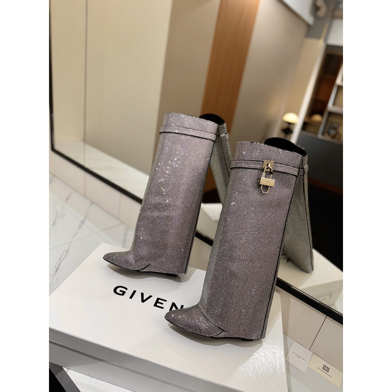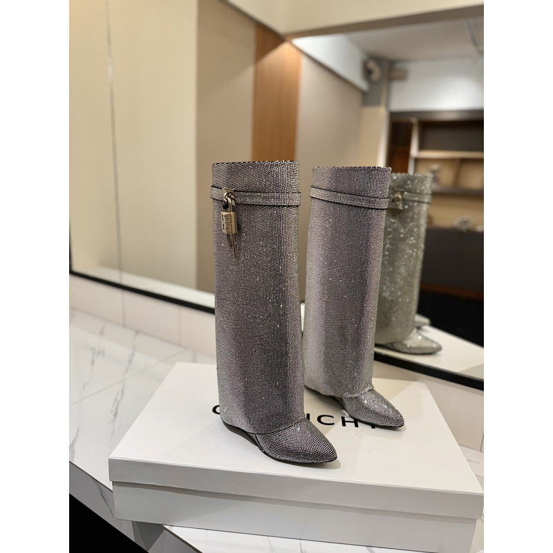 Givenchy Shark Lock Boots In Satin With Strass In Silver