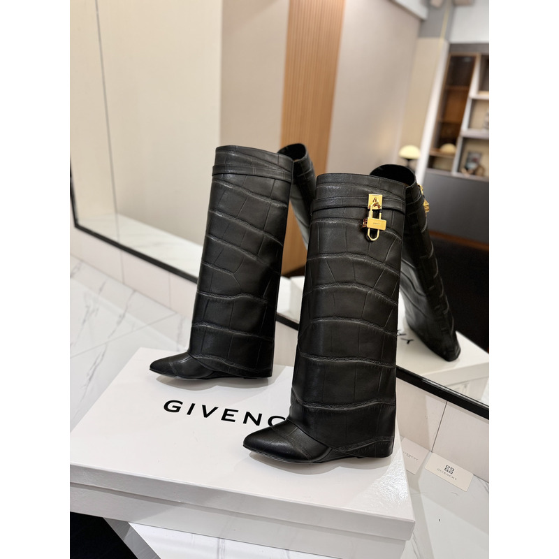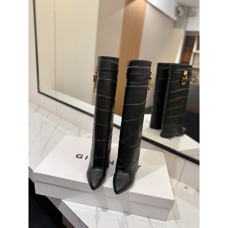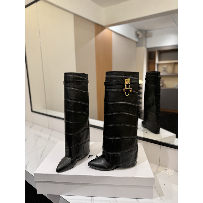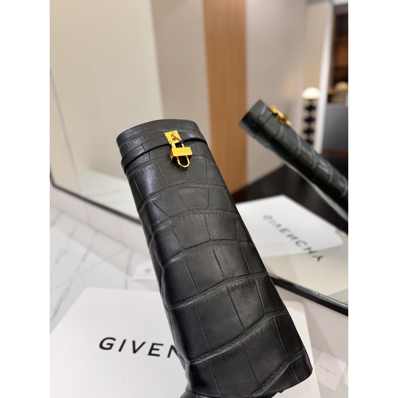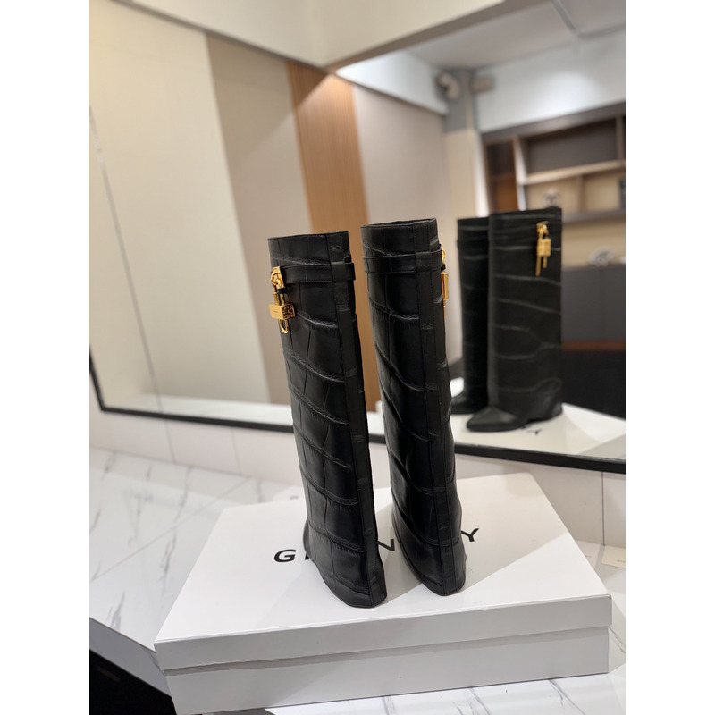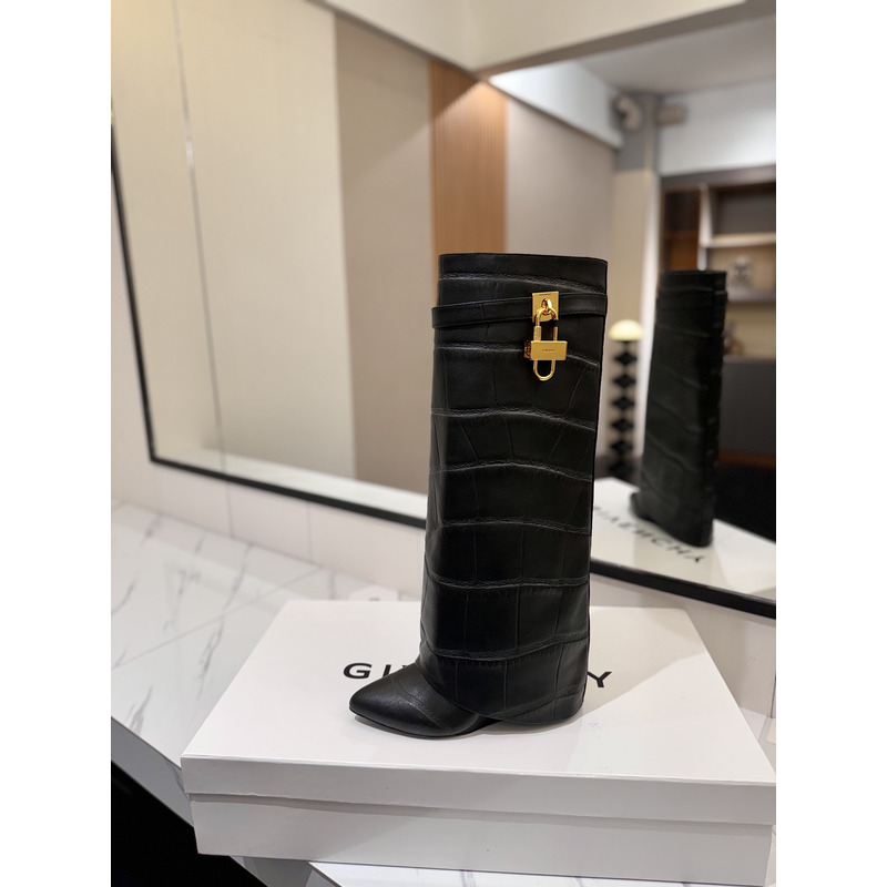 Givenchy Shark Lock Knee-High Boots In Crocodile-Embossed Leather In Black