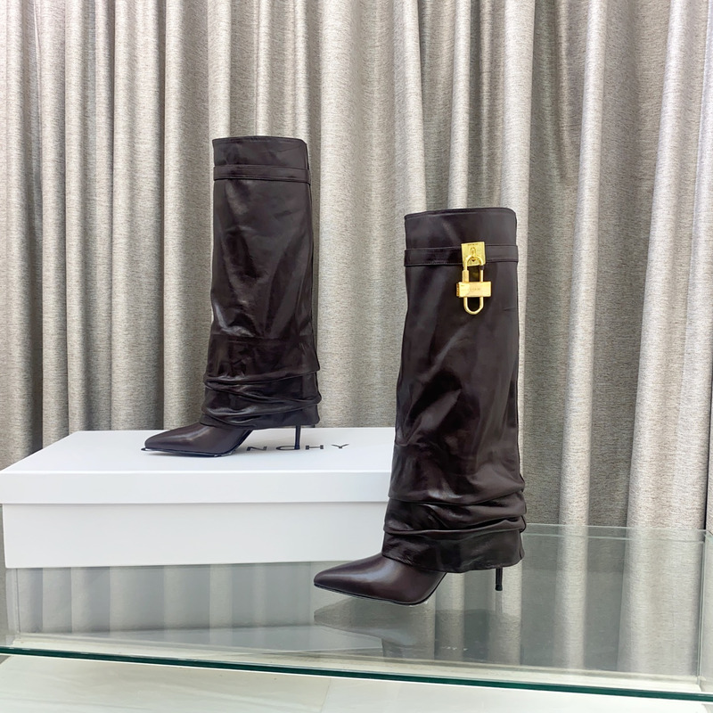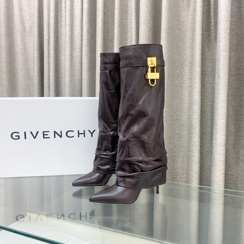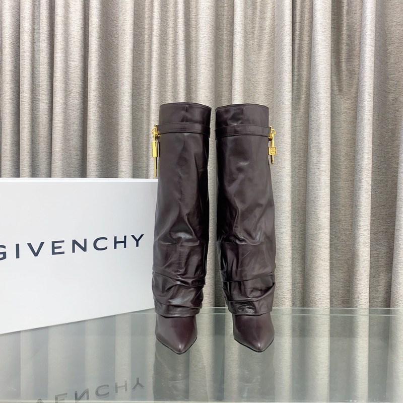 Givenchy Shark Lock Stiletto Boots In Nappa Leather Black
