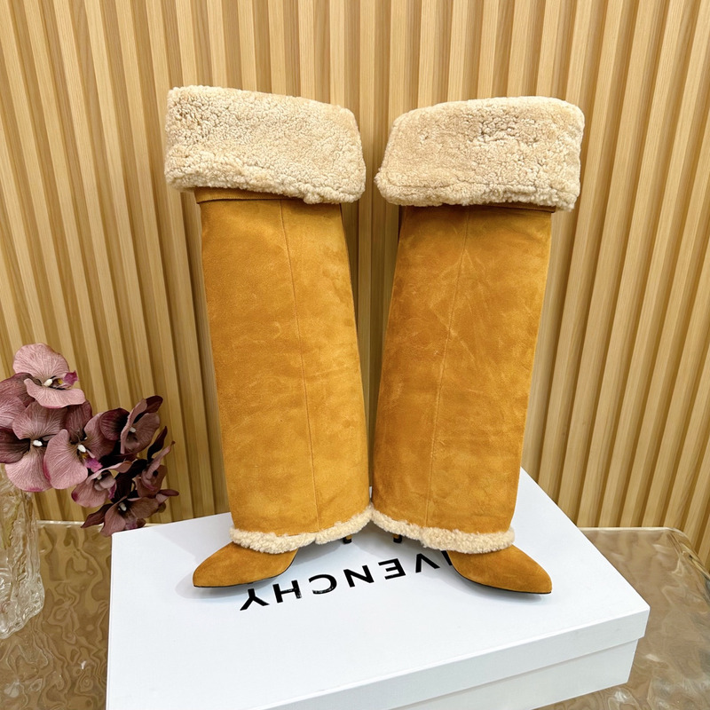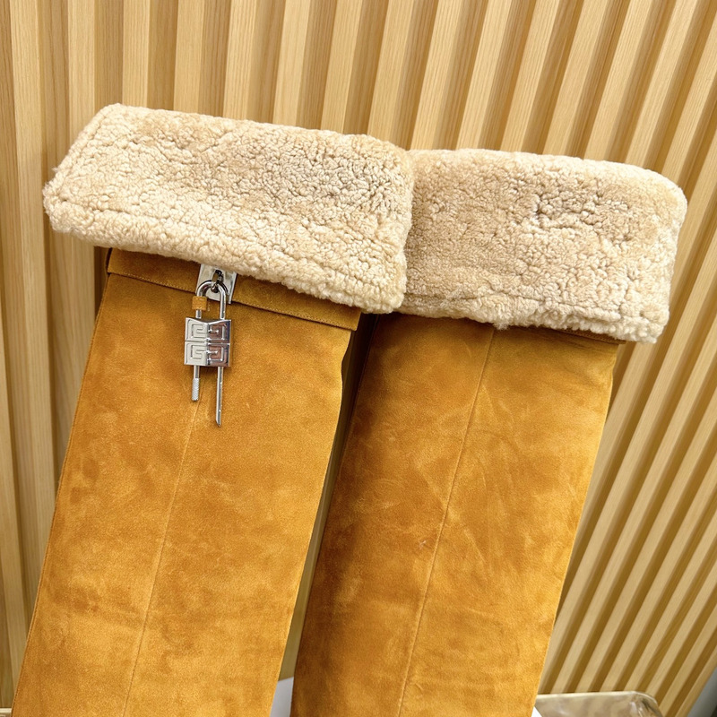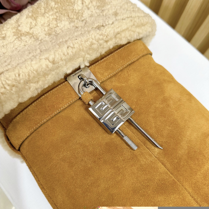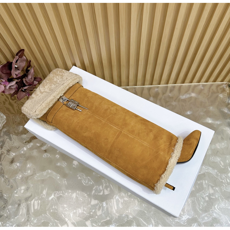 Givenchy Shark Lock Stiletto Boots In Suede and Shearling Azel