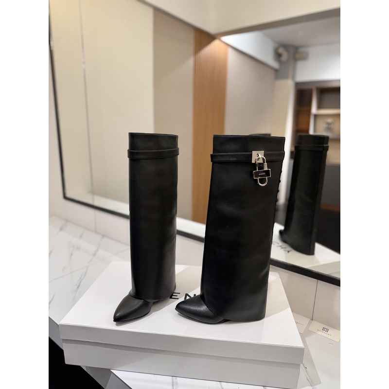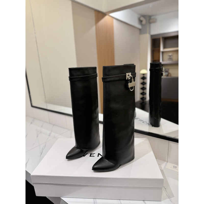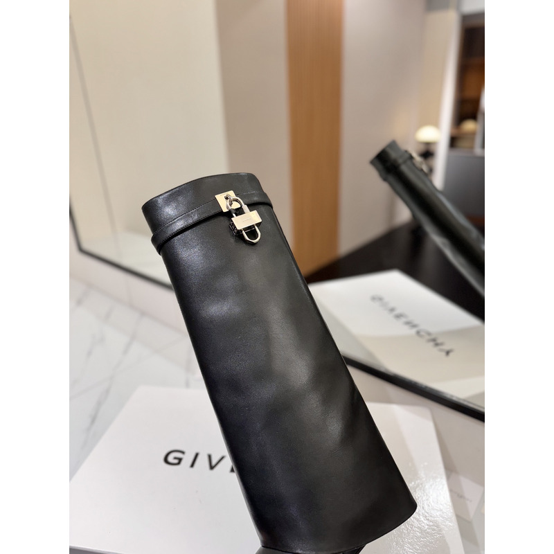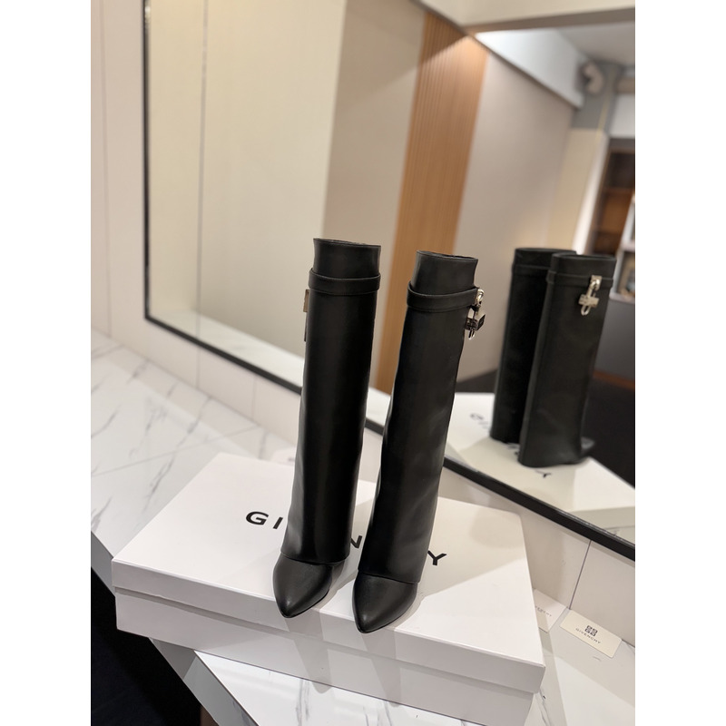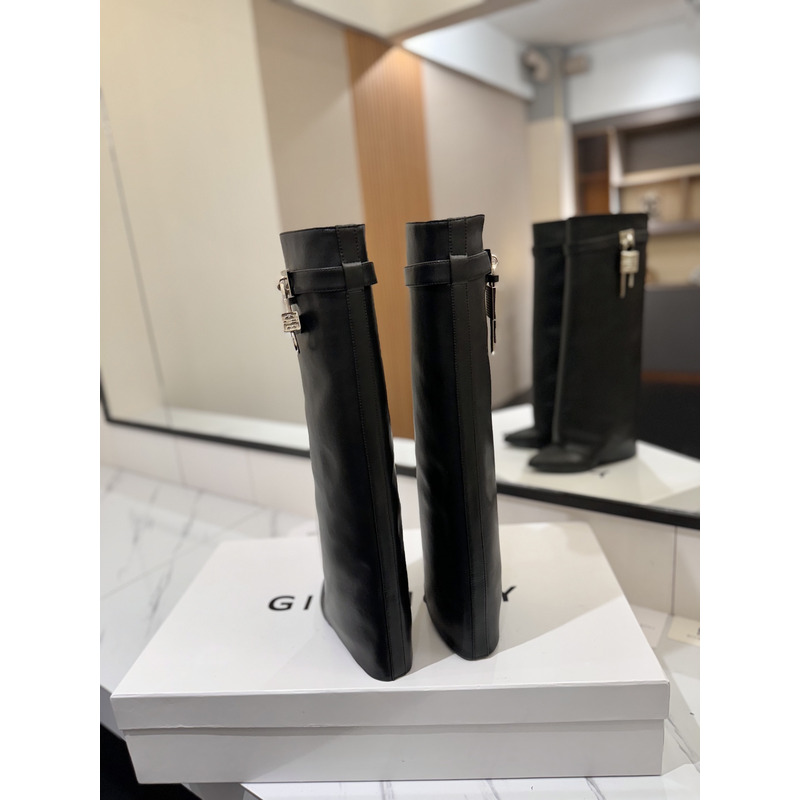 Givenchy Taupe Leather Shark Lock Knee-Length Boots