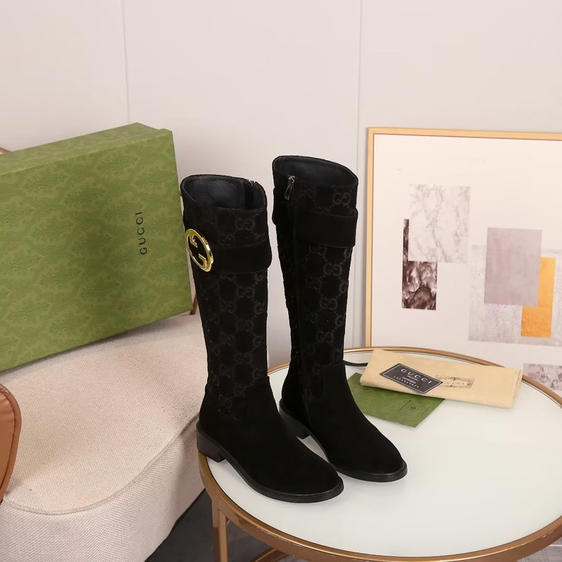 Gucci Blondie Knee High Boot In GG Canvas And Suede Black