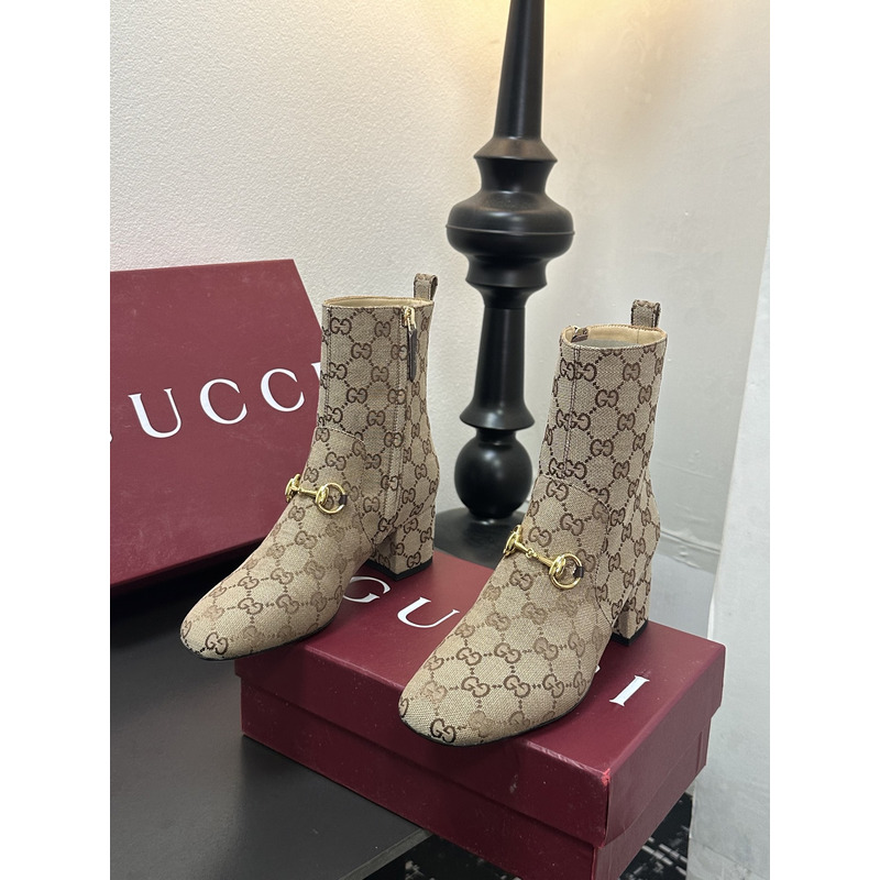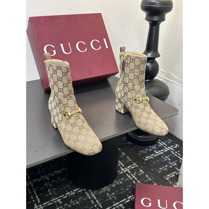 Gucci GG Pattern Horsebit Ankle Boots Beige