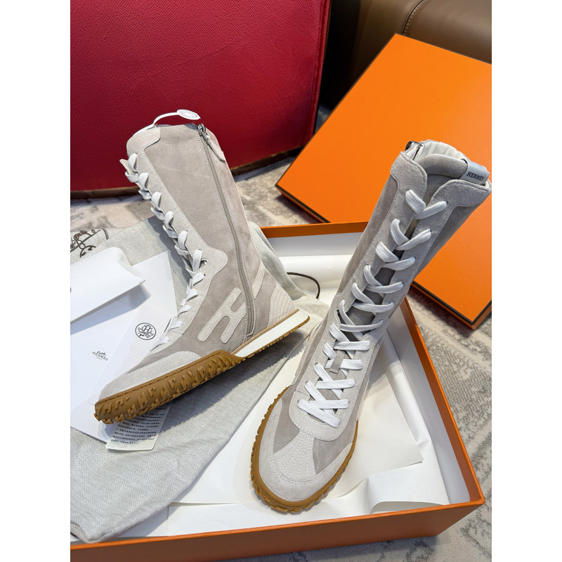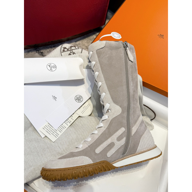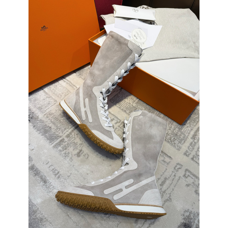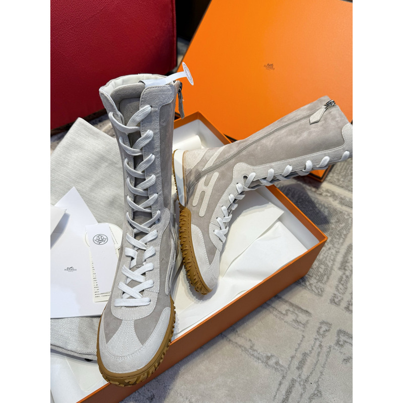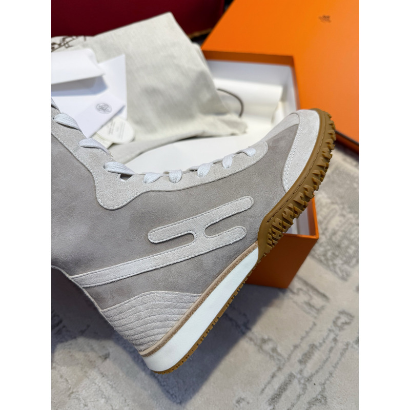 Hermès Lace Up Sneaker Suede Calfskin And Nappa Leather Grey