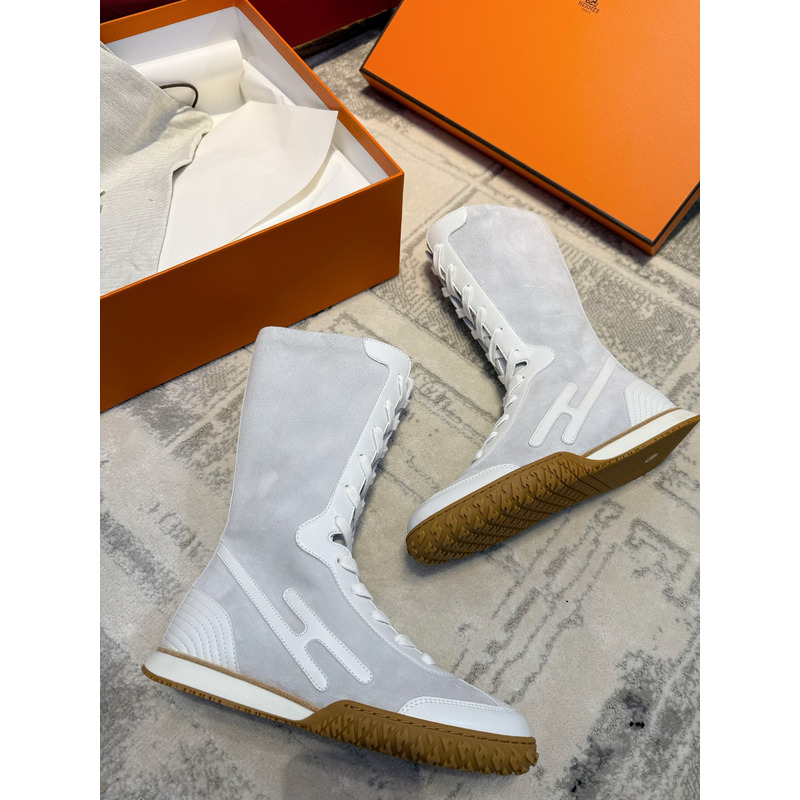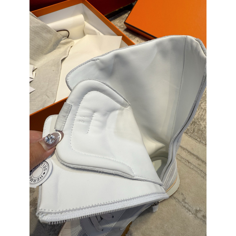 Hermès Lace Up Sneaker Suede Calfskin And Nappa Leather White