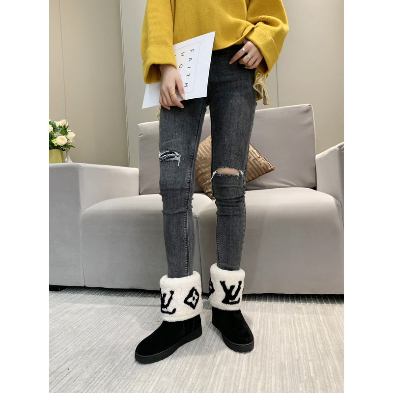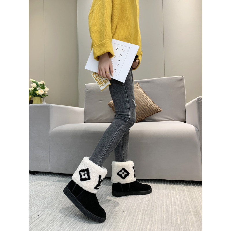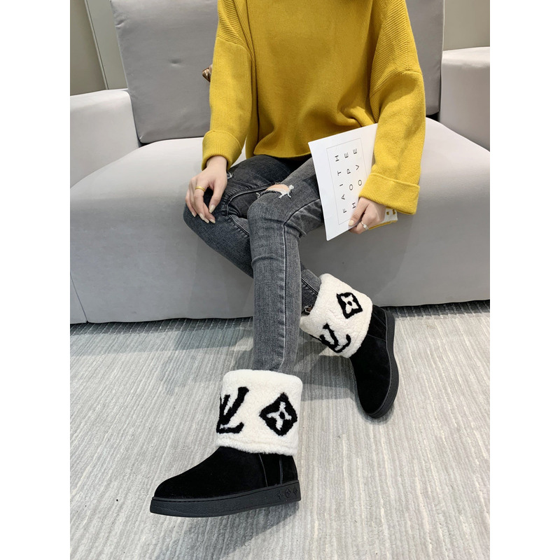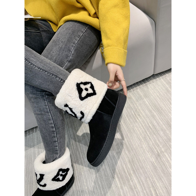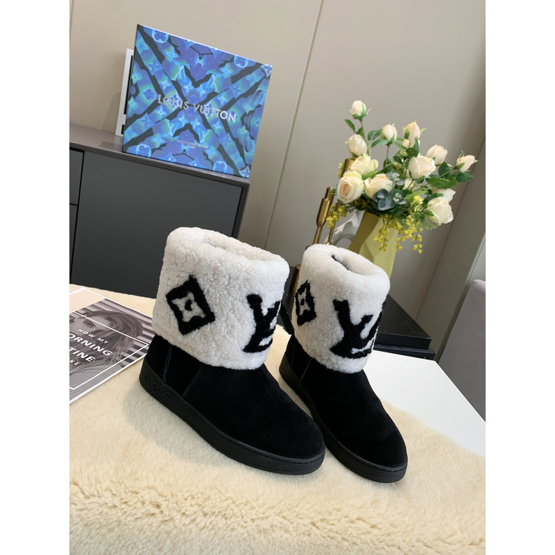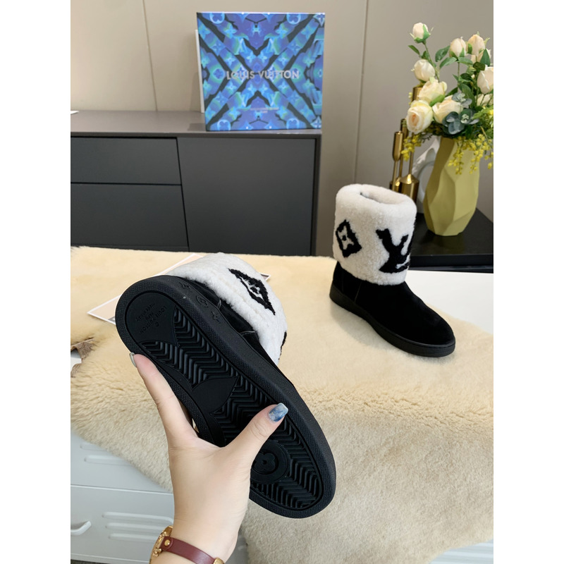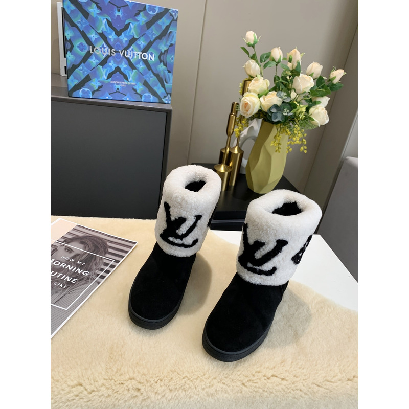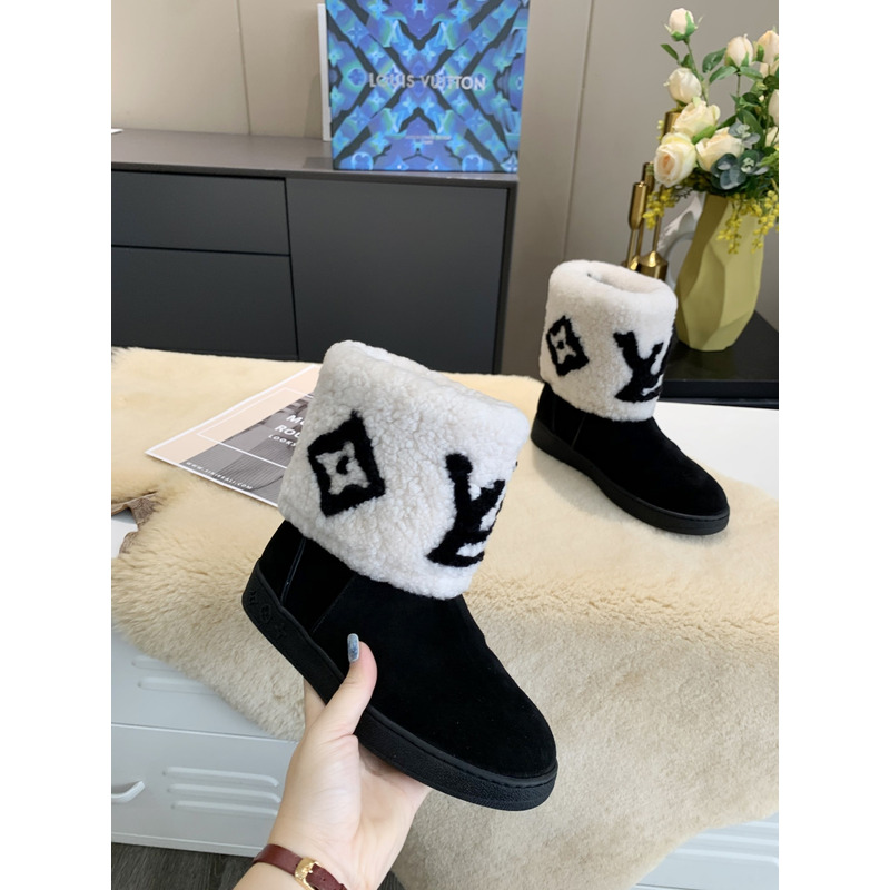Louis Vuitton Black And White Monogram Shearling-Trimmed Suede Ankle Boots