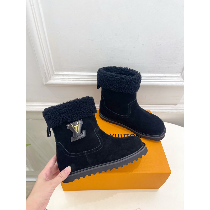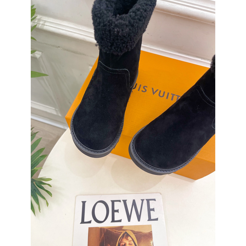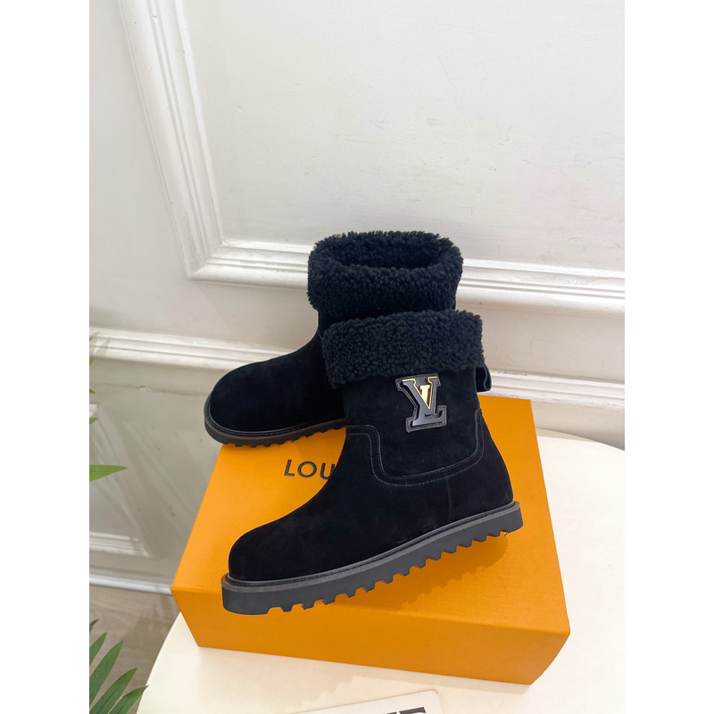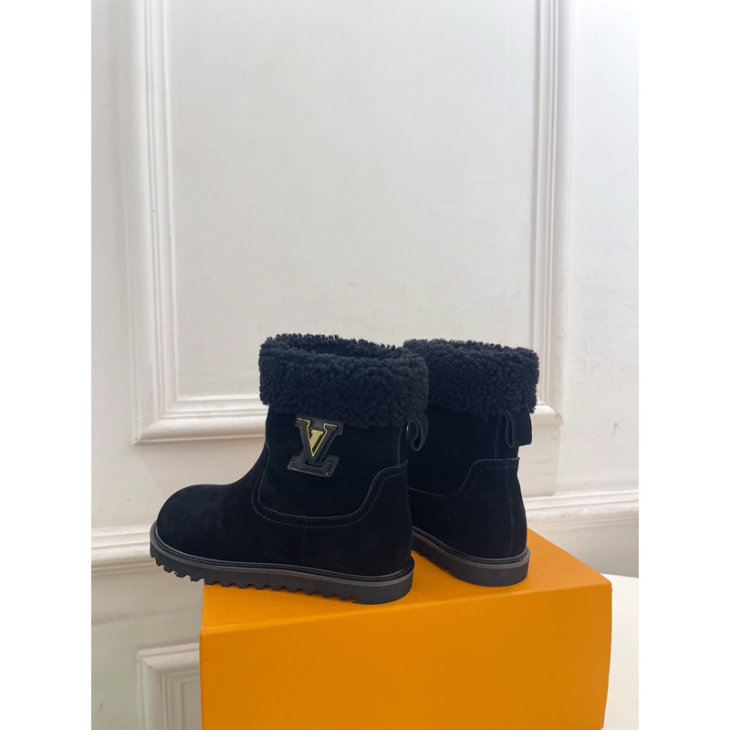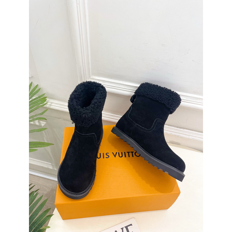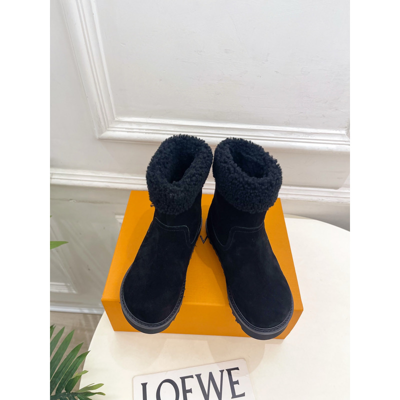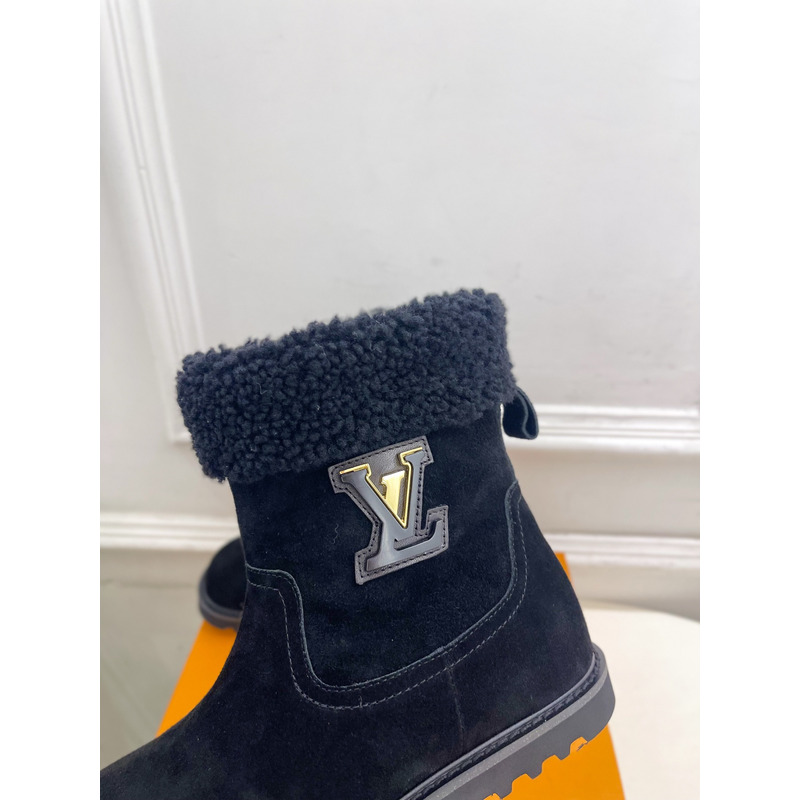 Louis Vuitton Black Shearling-trimmed Suede Ankle Boot