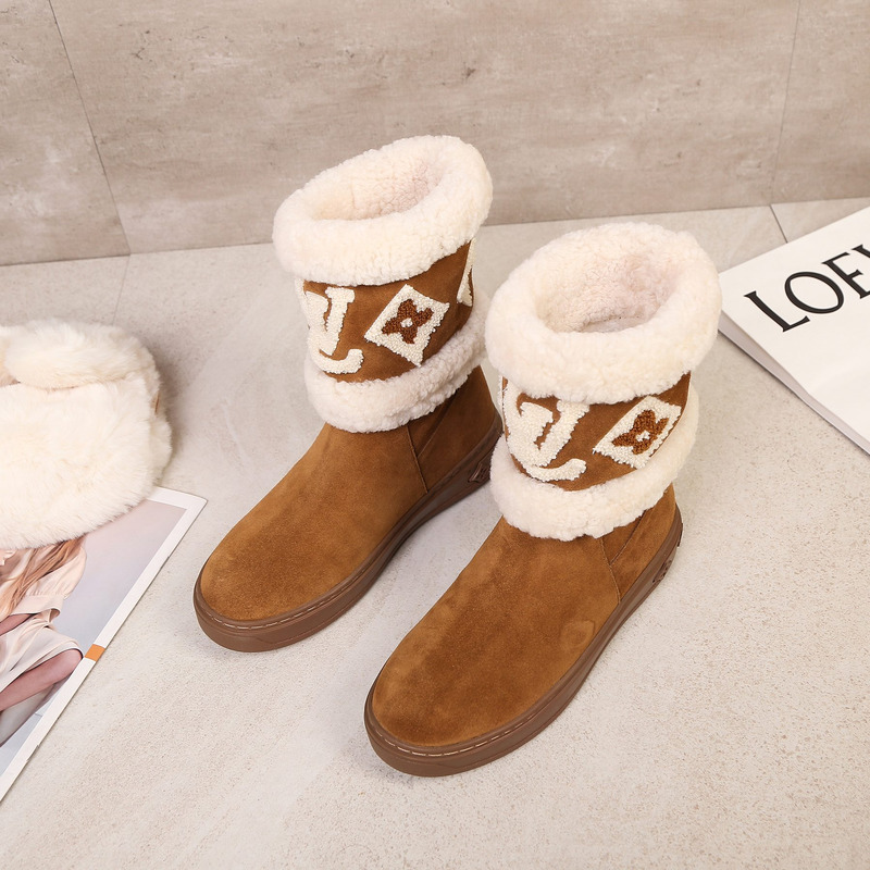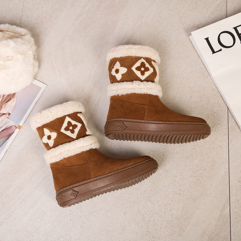 Louis Vuitton Brown Monogram Shearling-Trimmed Suede Ankle Boots