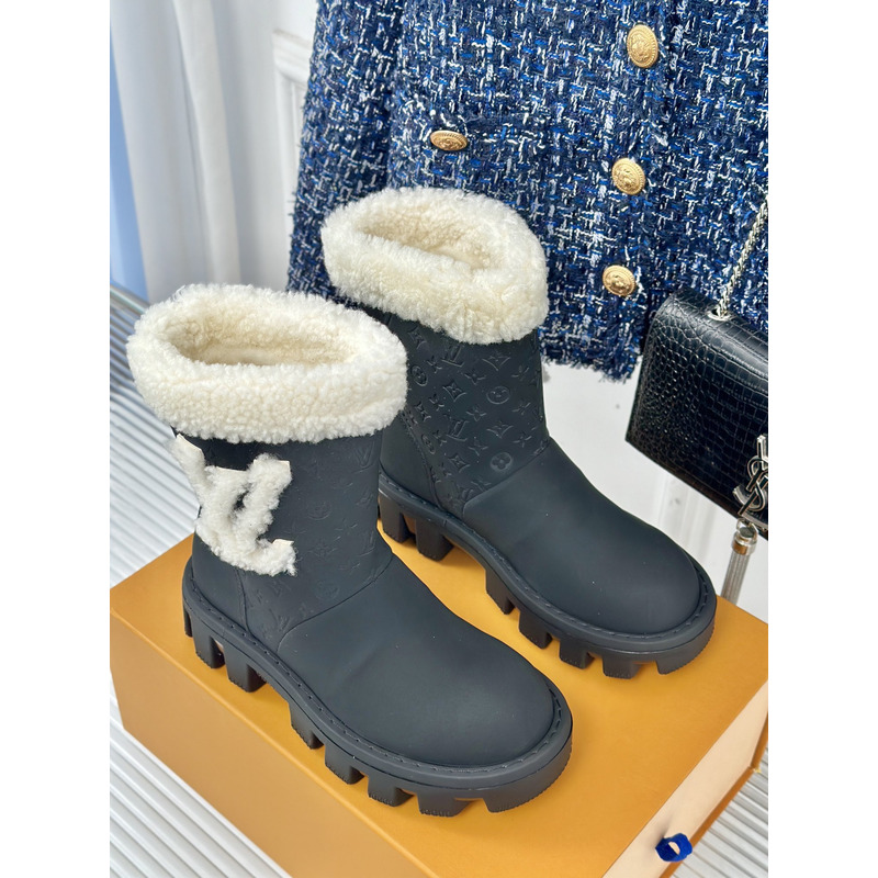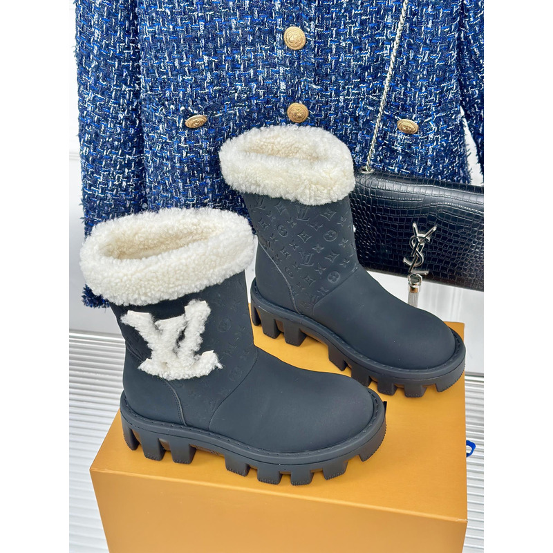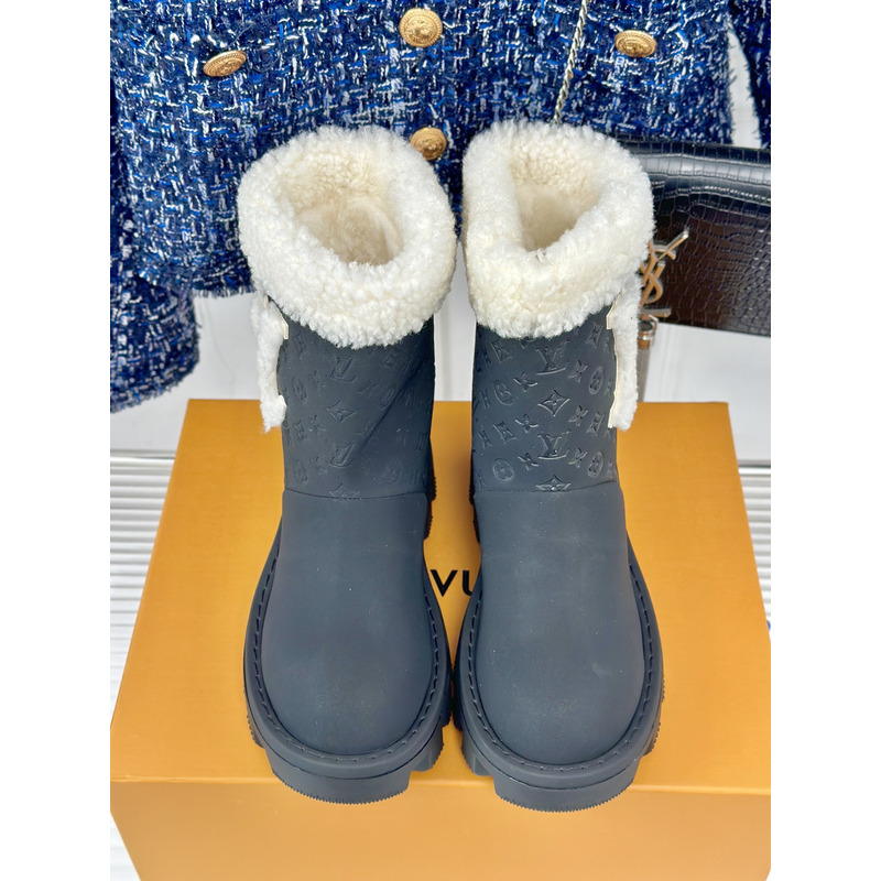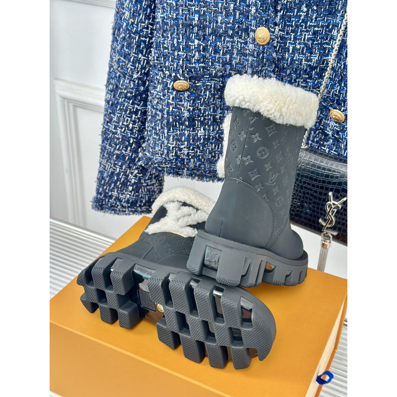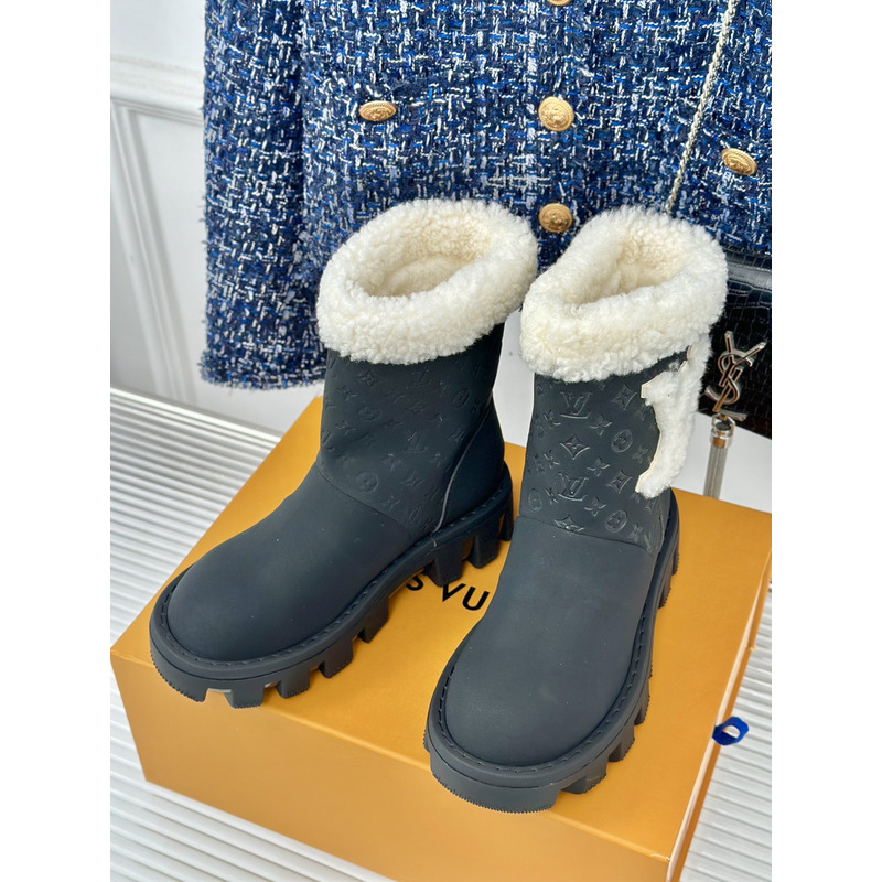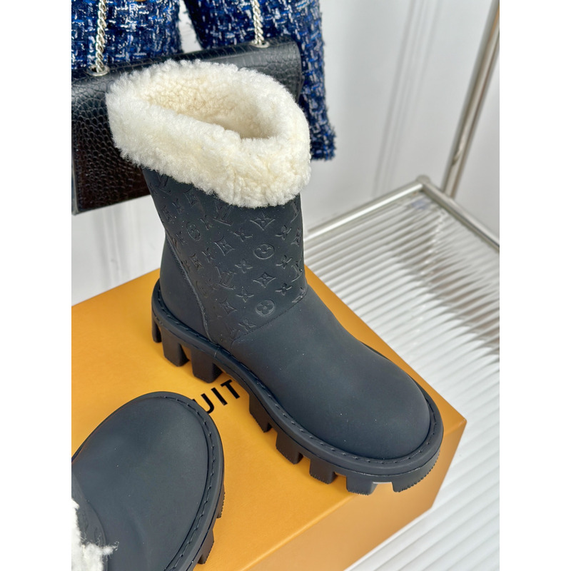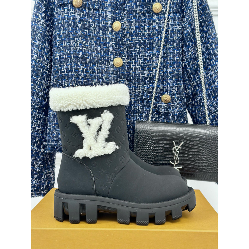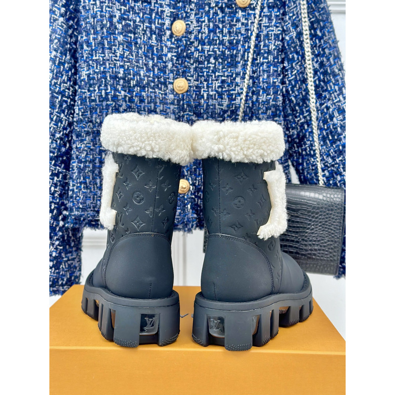 Louis Vuitton Fleece Trimmed Logo Ankle Boot In Black