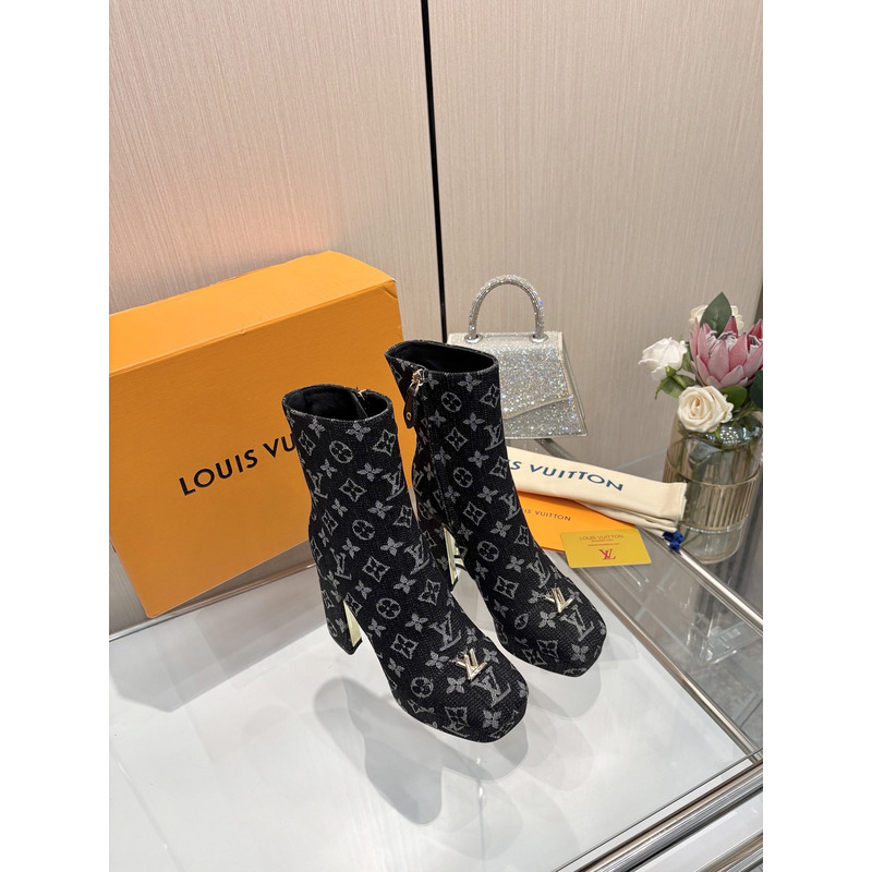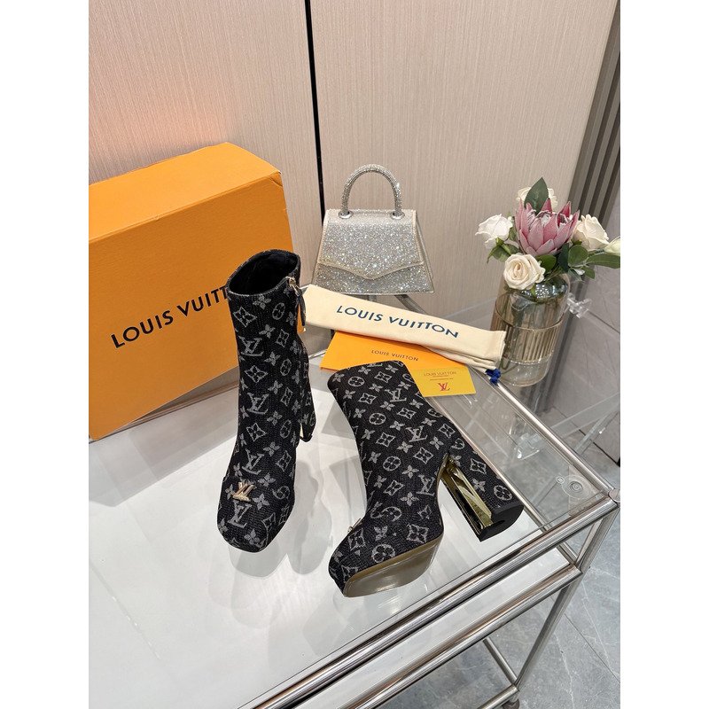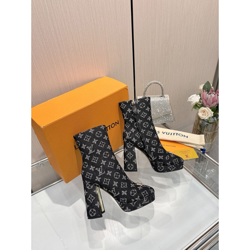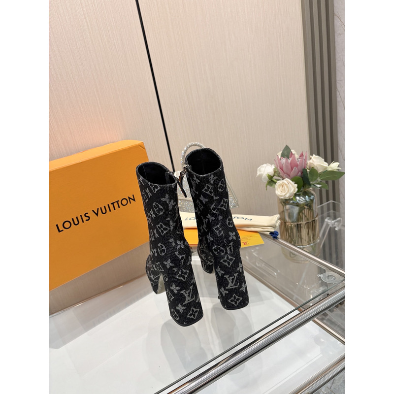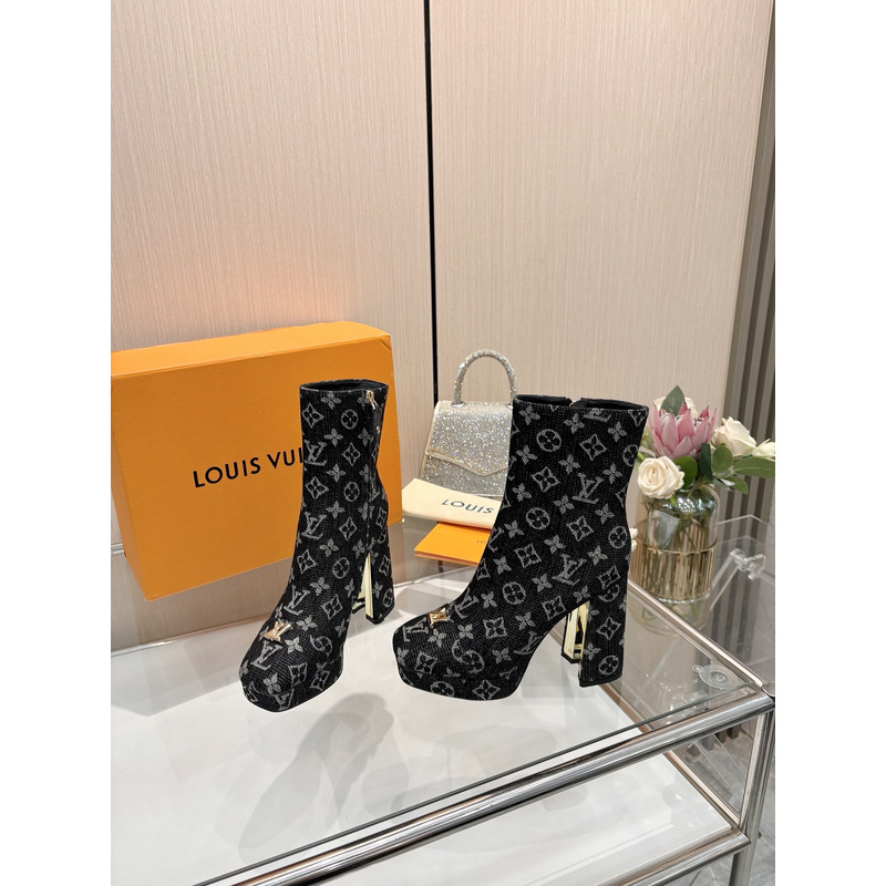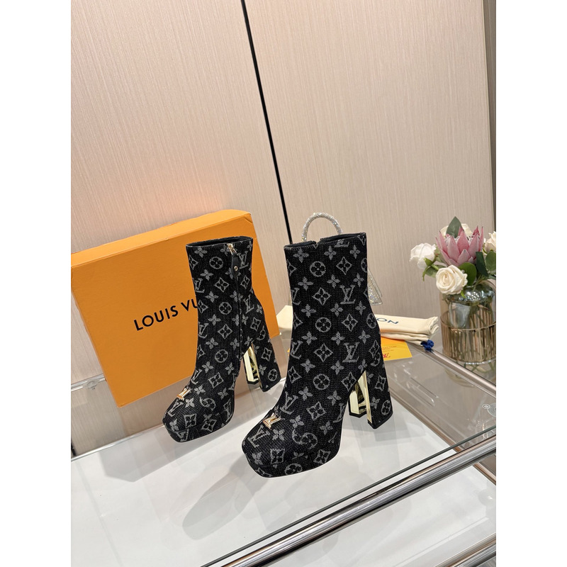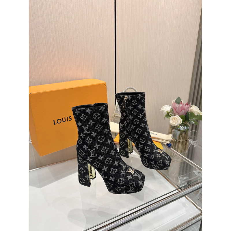 Louis Vuitton High - Heel Swing Platform Ankle Boot Black Monogram