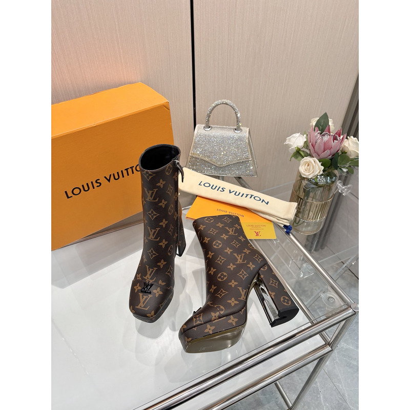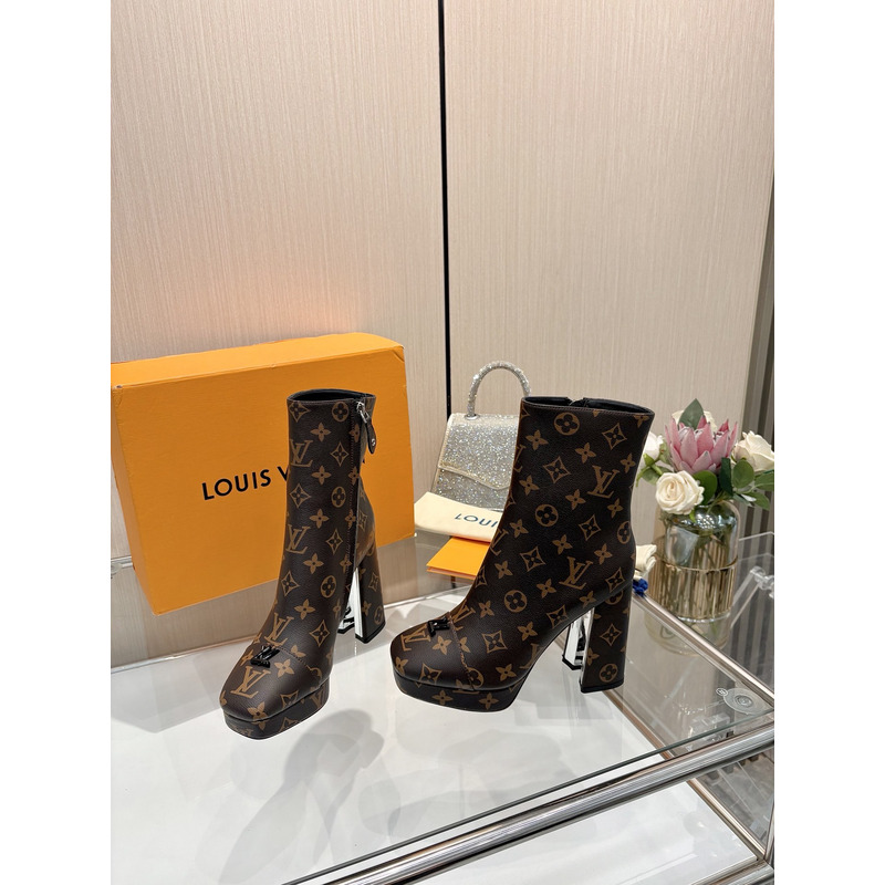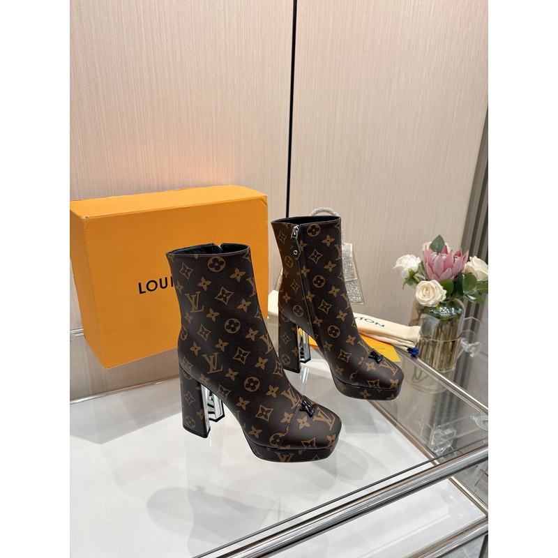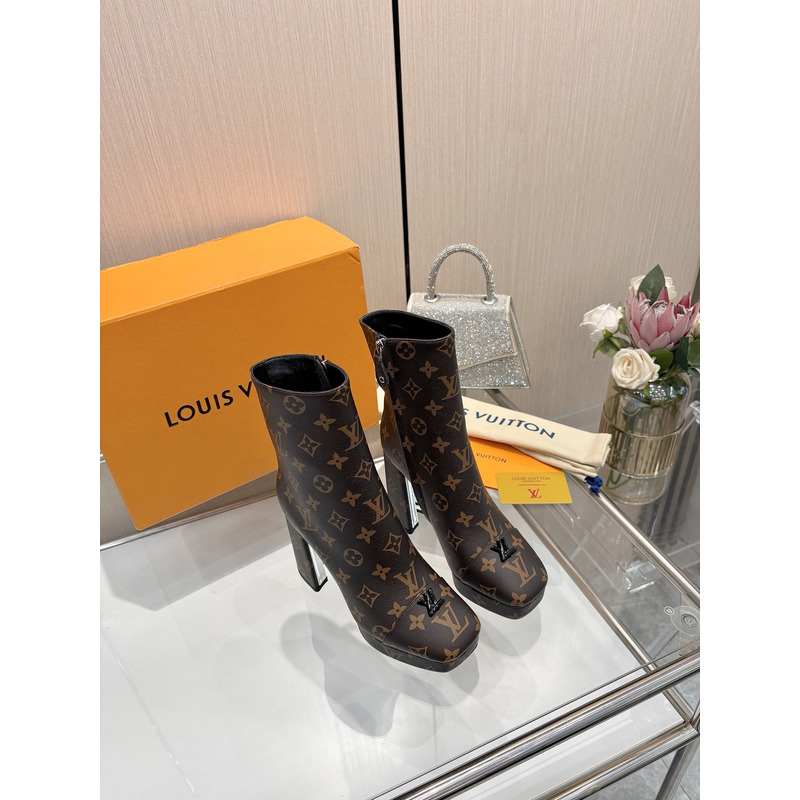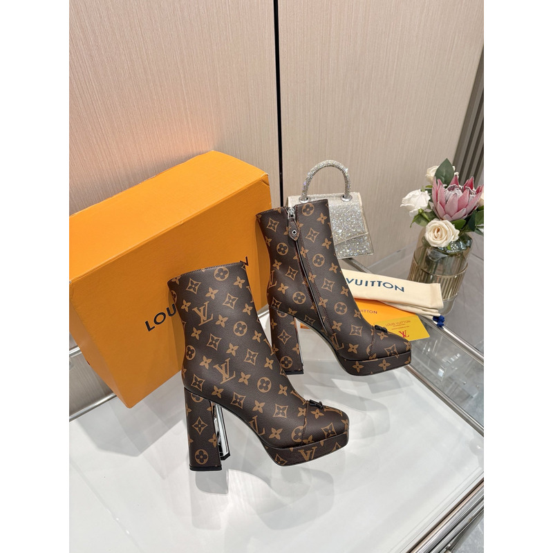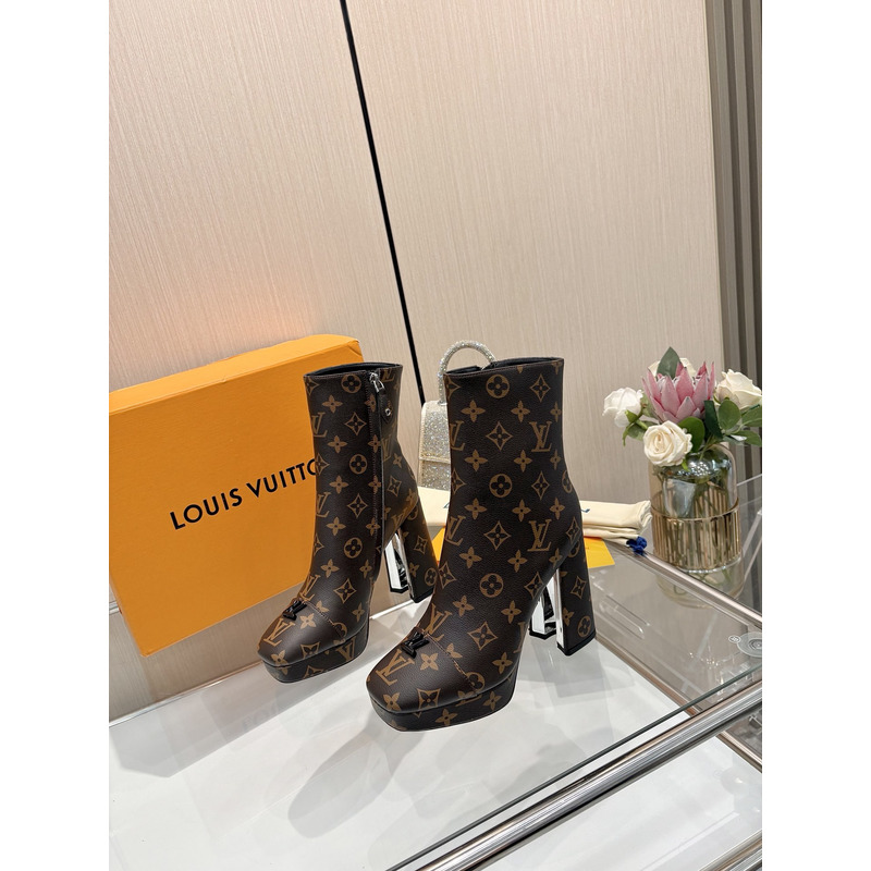Louis Vuitton High - Heel Swing Platform Ankle Boot Brown Monogram
