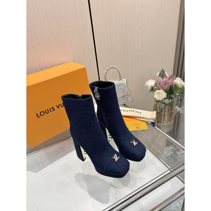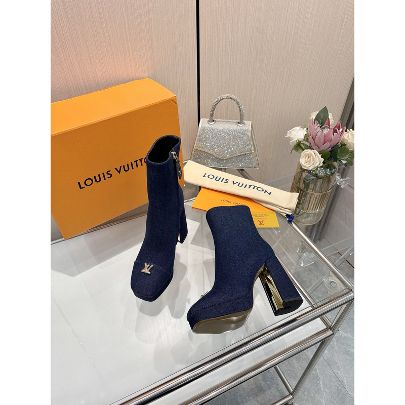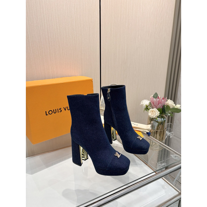 Louis Vuitton High - Heel Swing Platform Ankle Boot Navy Blue