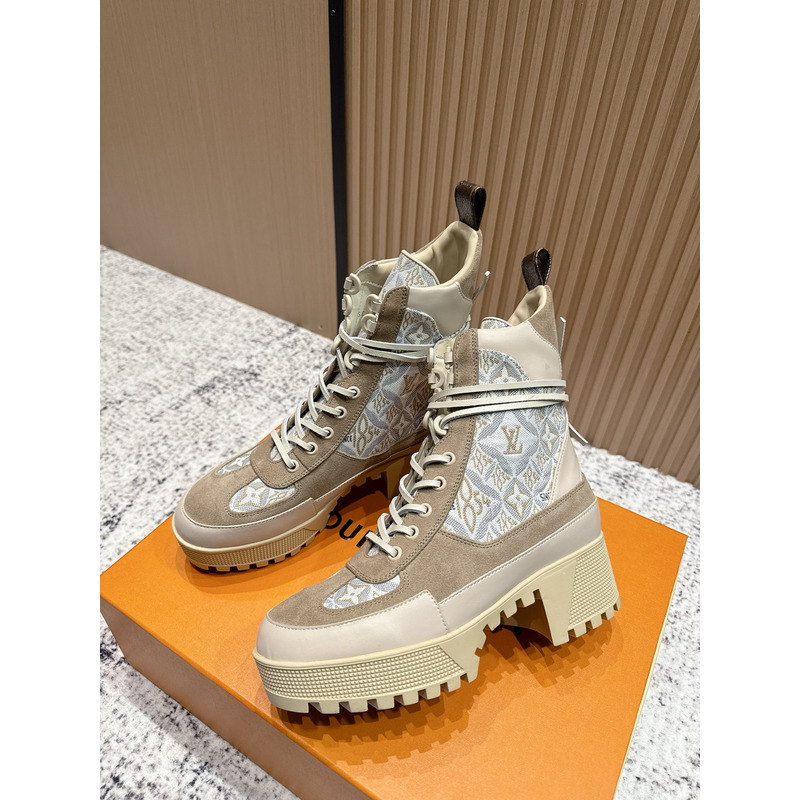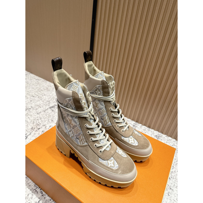 Louis Vuitton Laureate Platform Desert Boots Monogram Beige