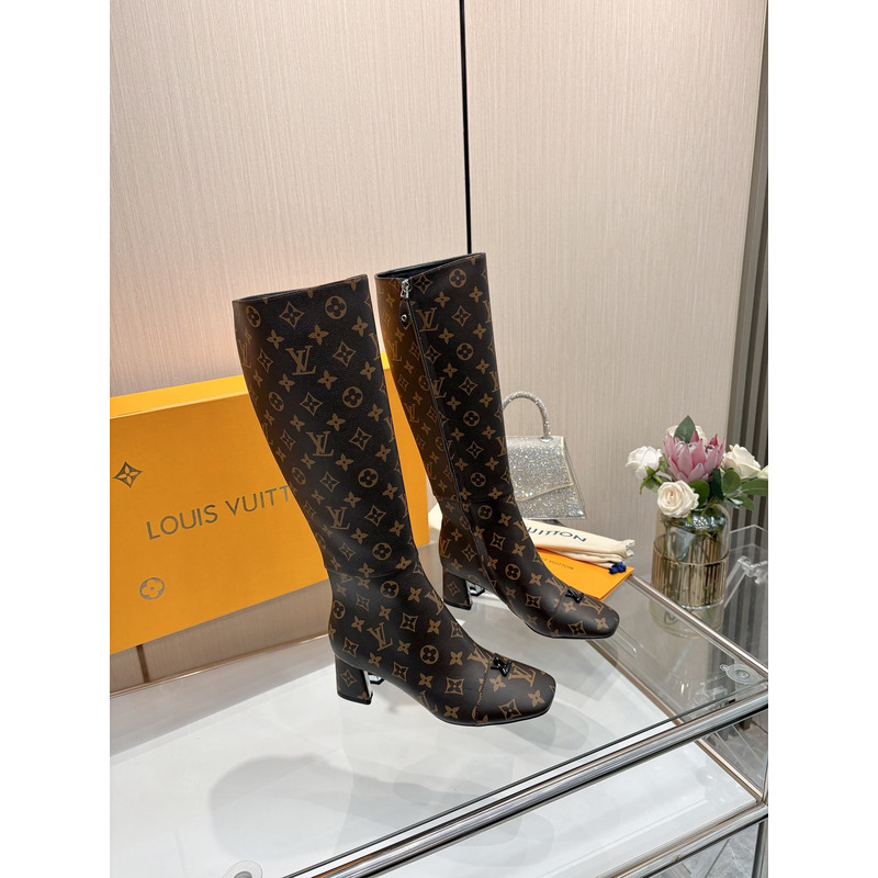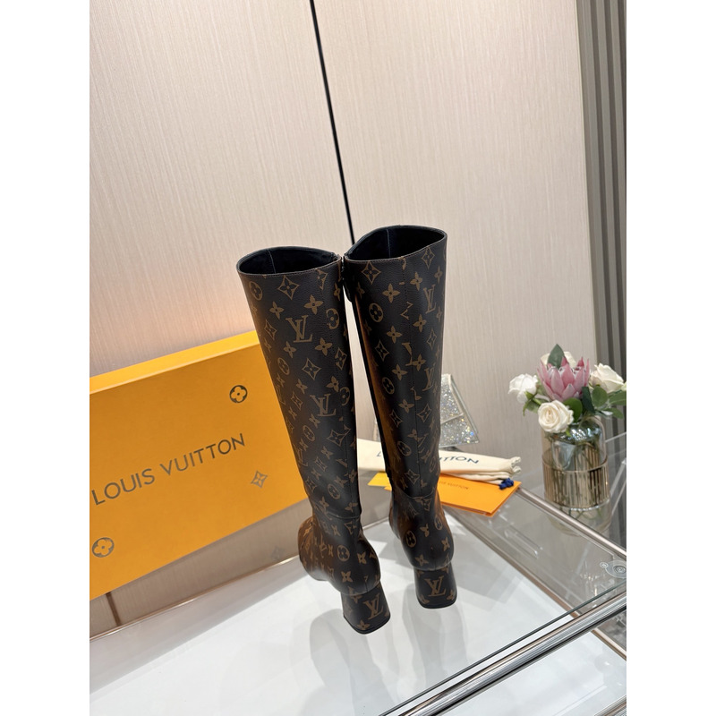 Louis Vuitton Low - Heel Knee Boot Brown Monogram