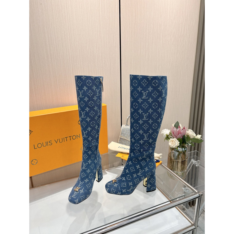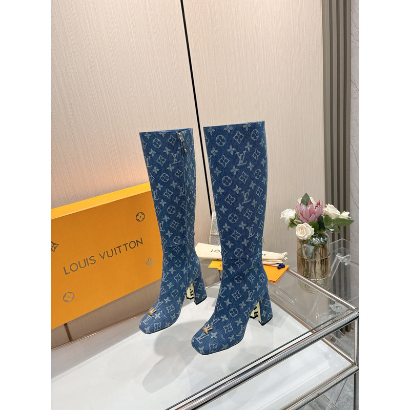 Louis Vuitton Low - Heel Knee Boot Denim Monogram Blue