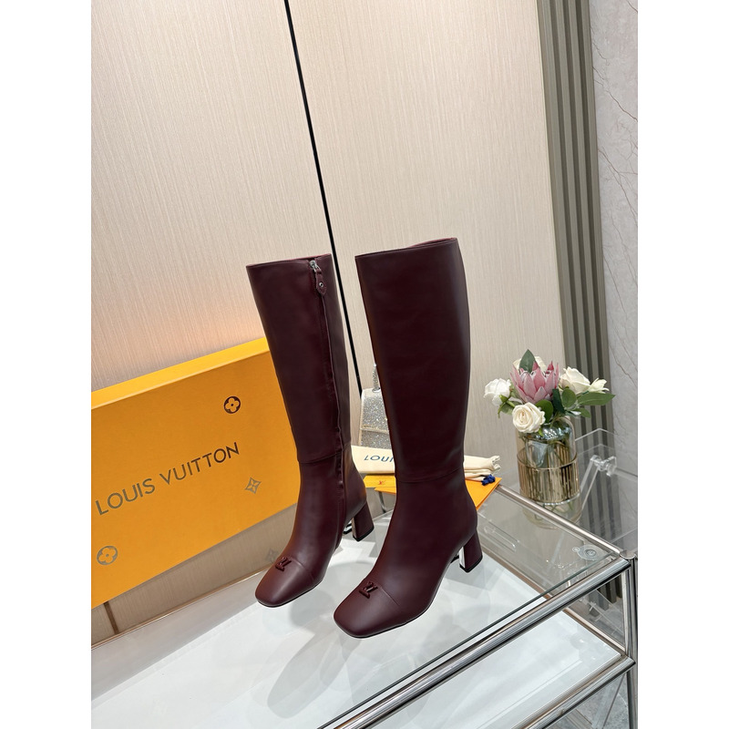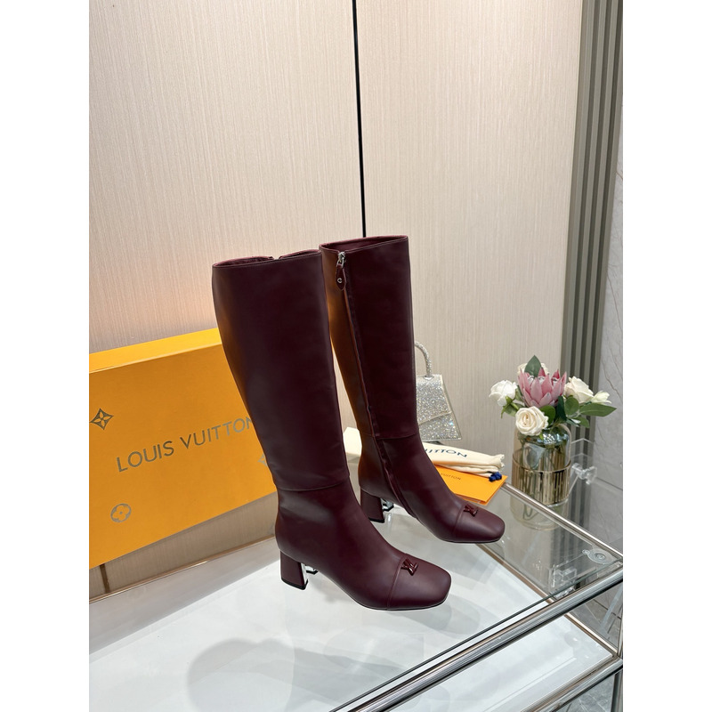 Louis Vuitton Low - Heel Knee Boot In Burgundy Leather