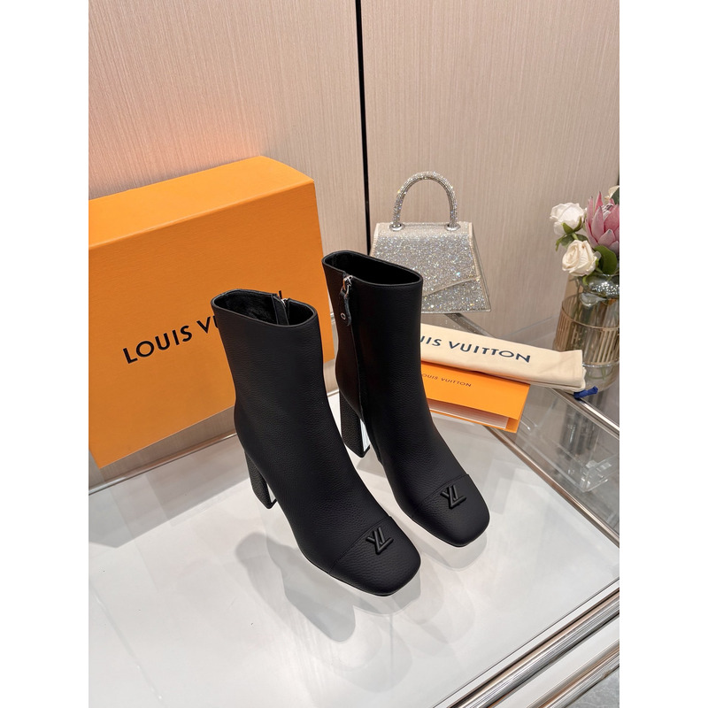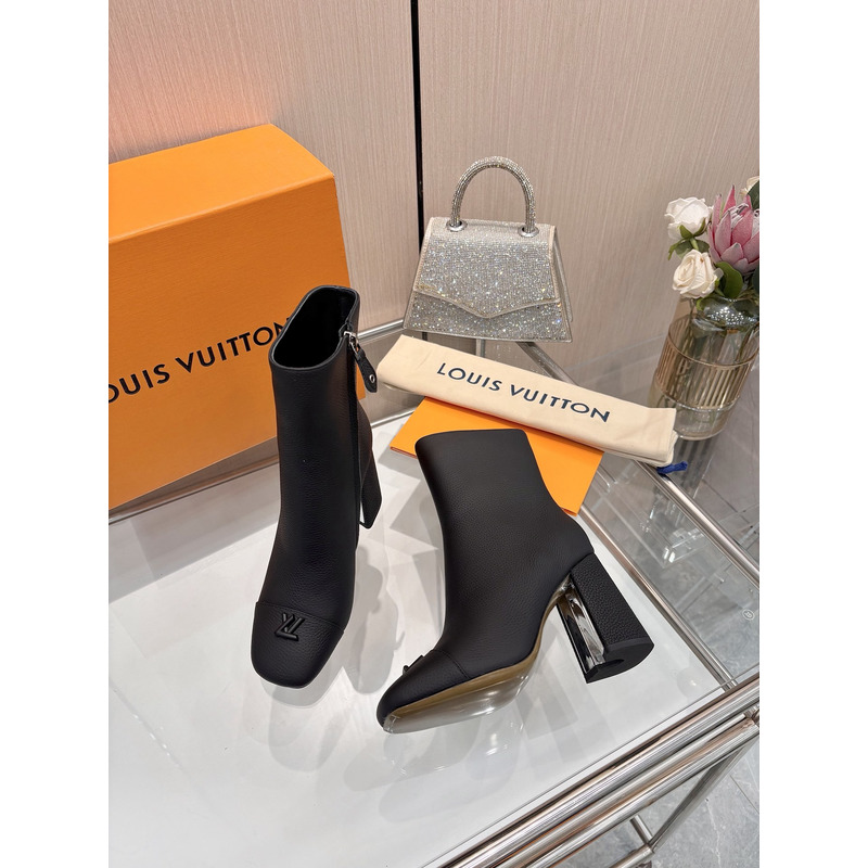 Louis Vuitton Mid - Heel Swing Platform Ankle Boot Suede Black