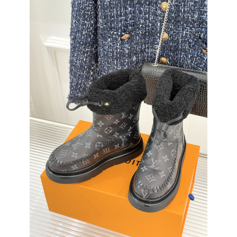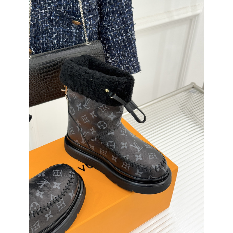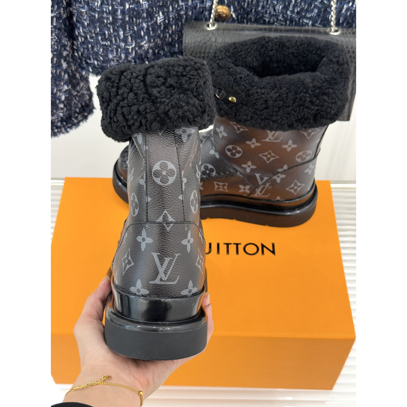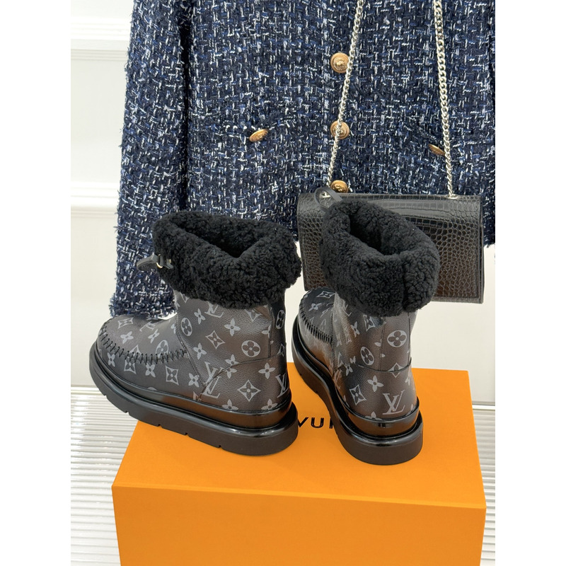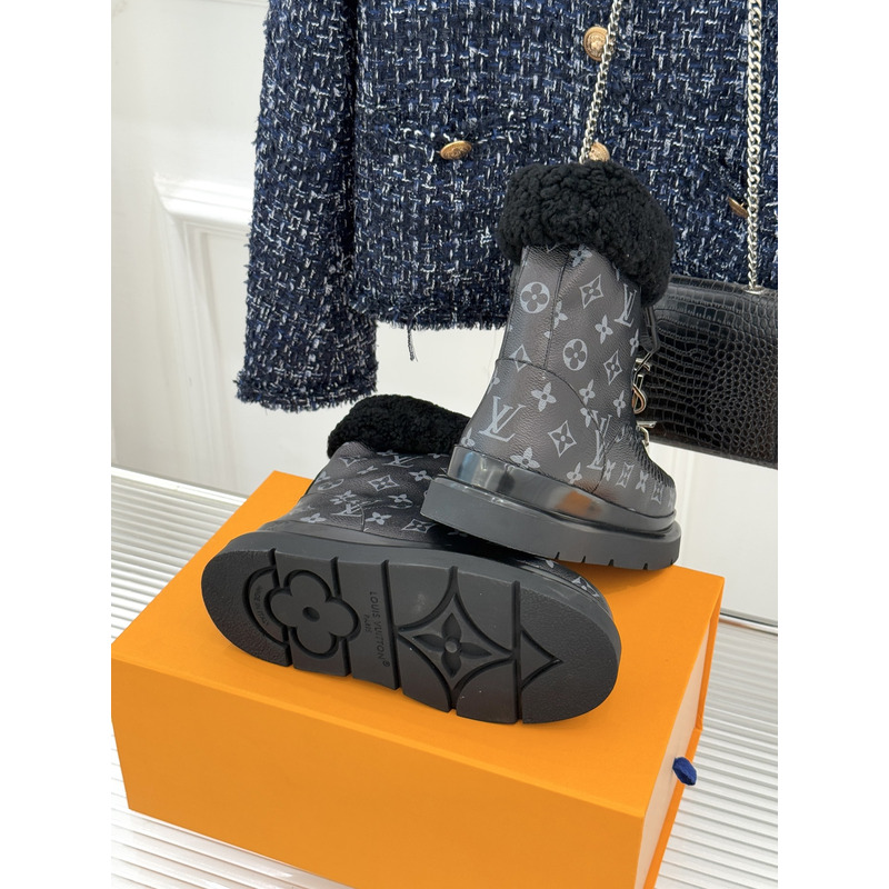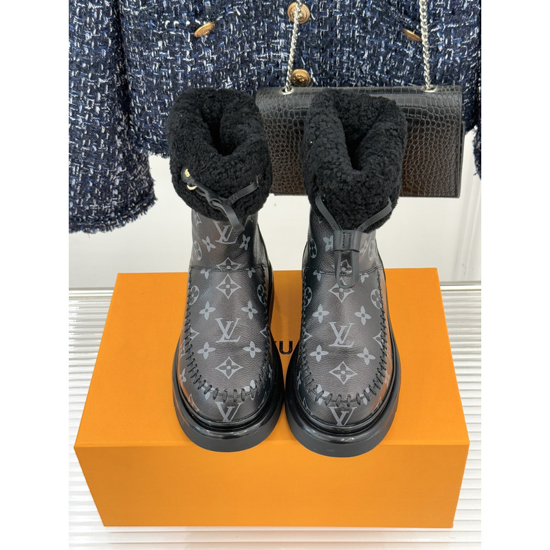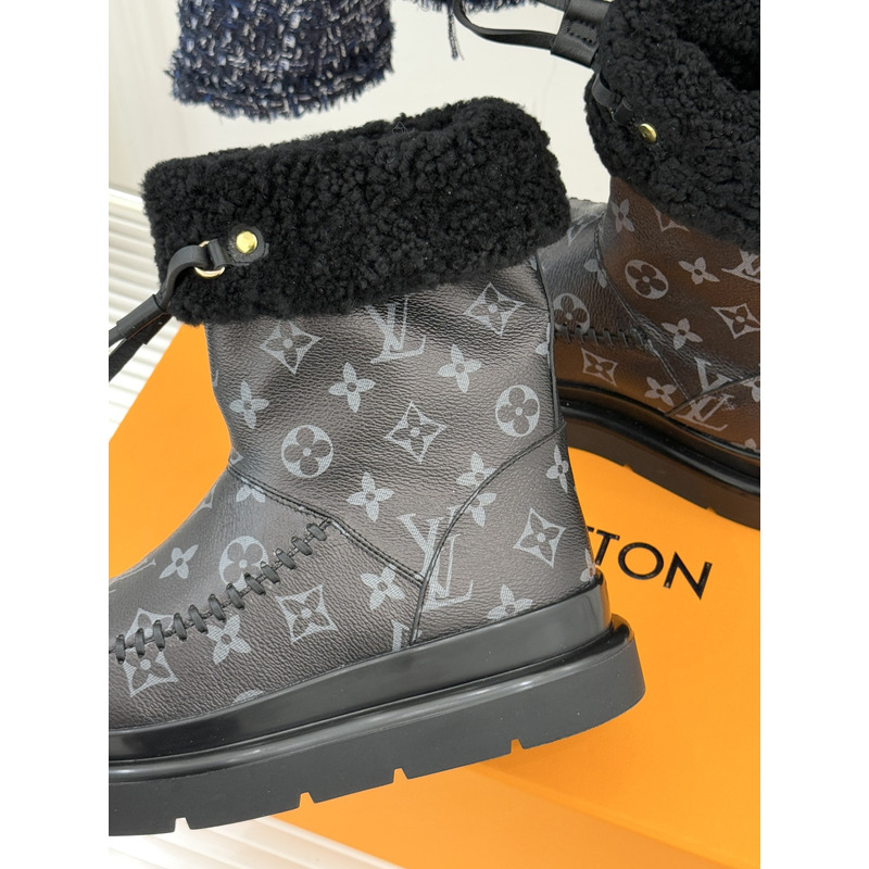 Louis Vuitton Monogram Ankle Boot With Fur In Black