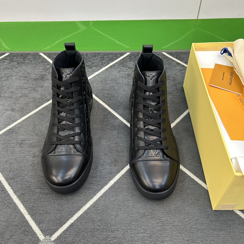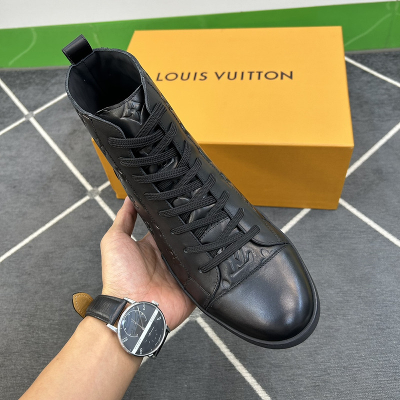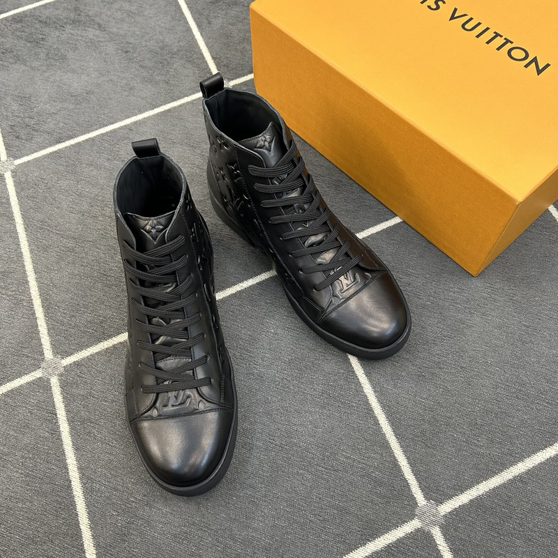 Louis Vuitton Rivoli Monogram Embossed Leather Ankle Boot In Black