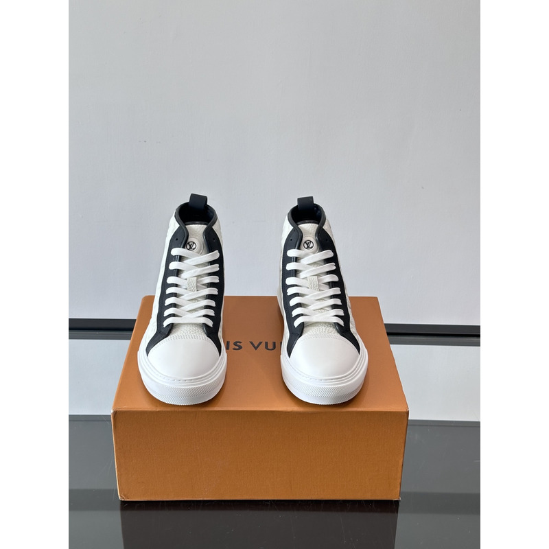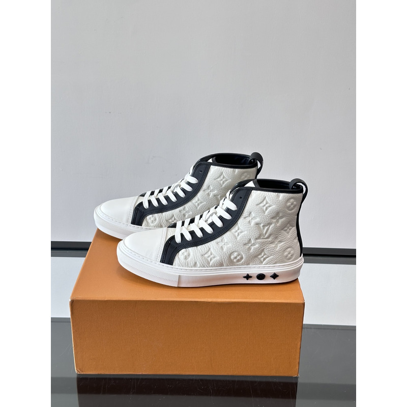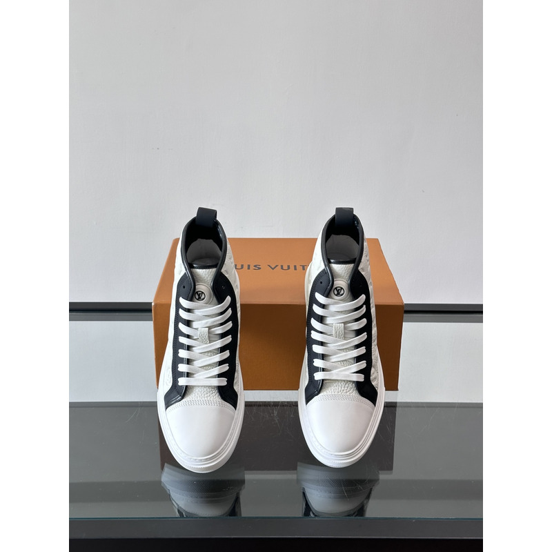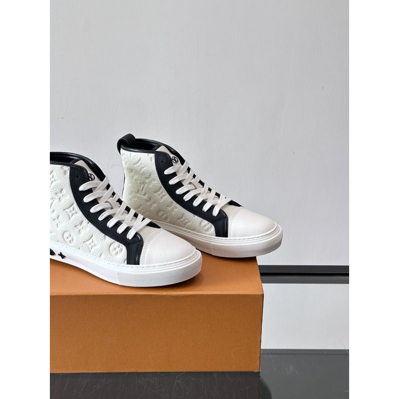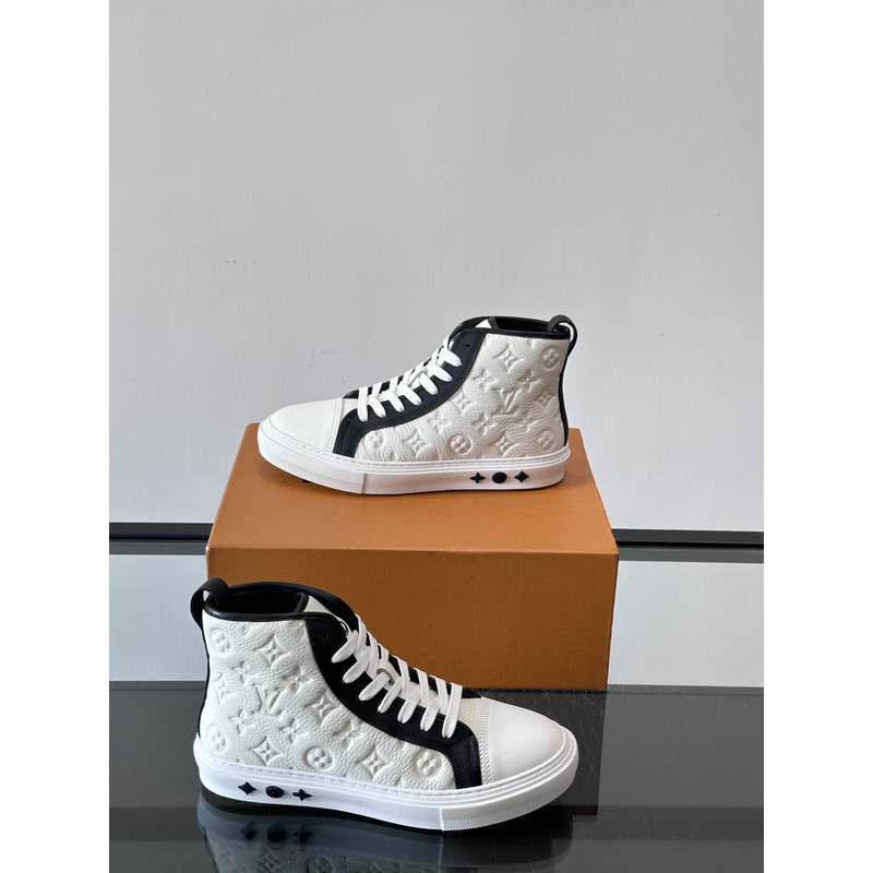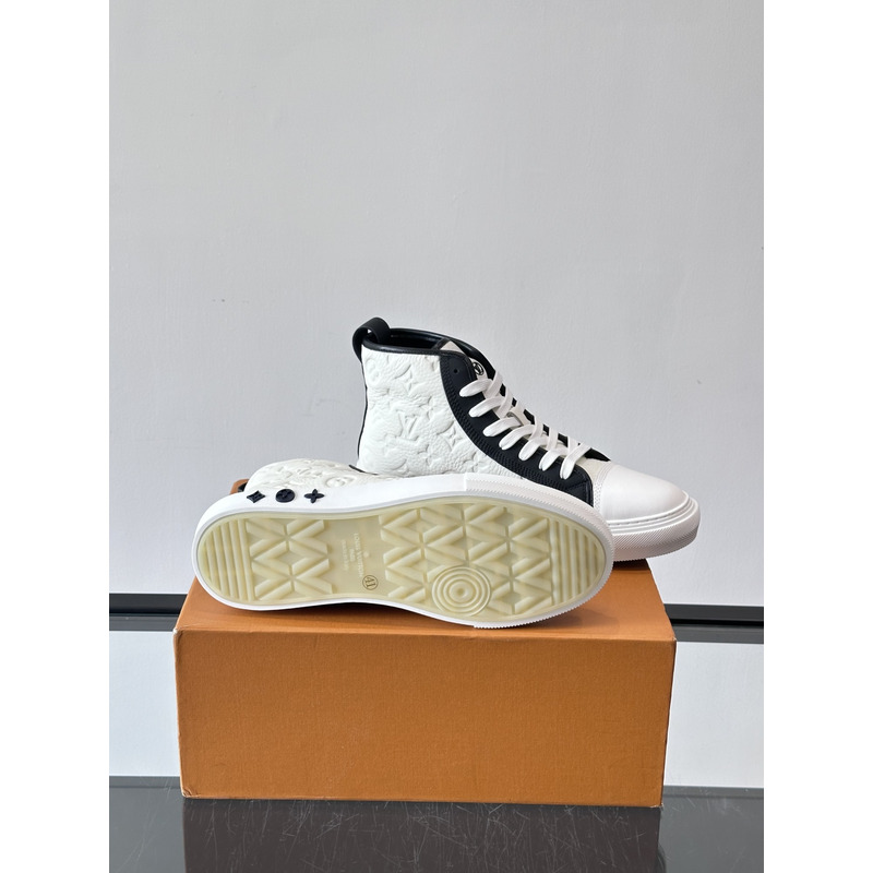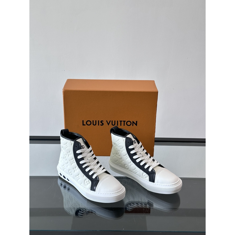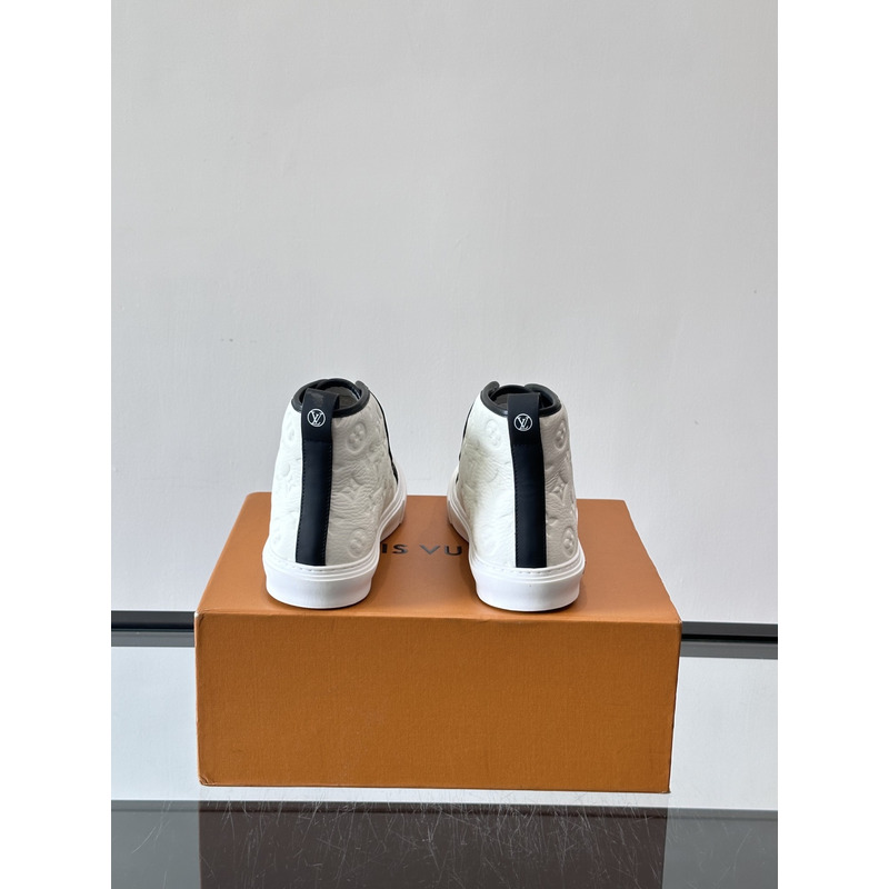 Louis Vuitton White And Black Monogram Embossed High-Top Sneakers