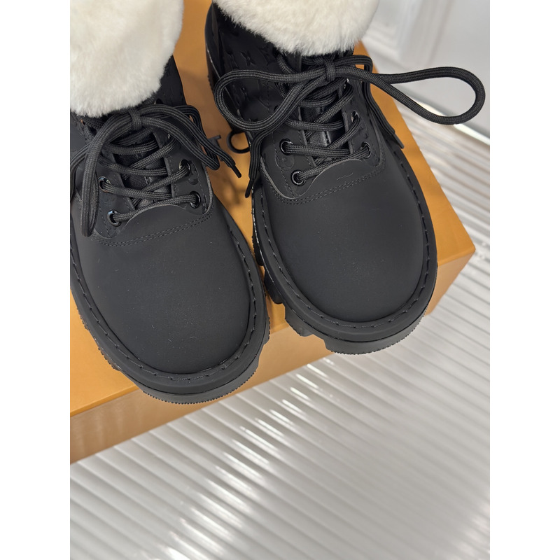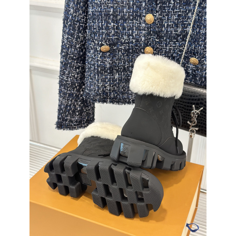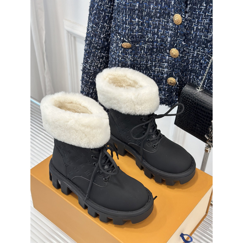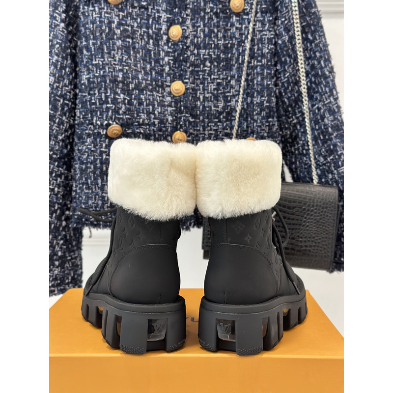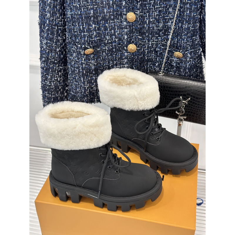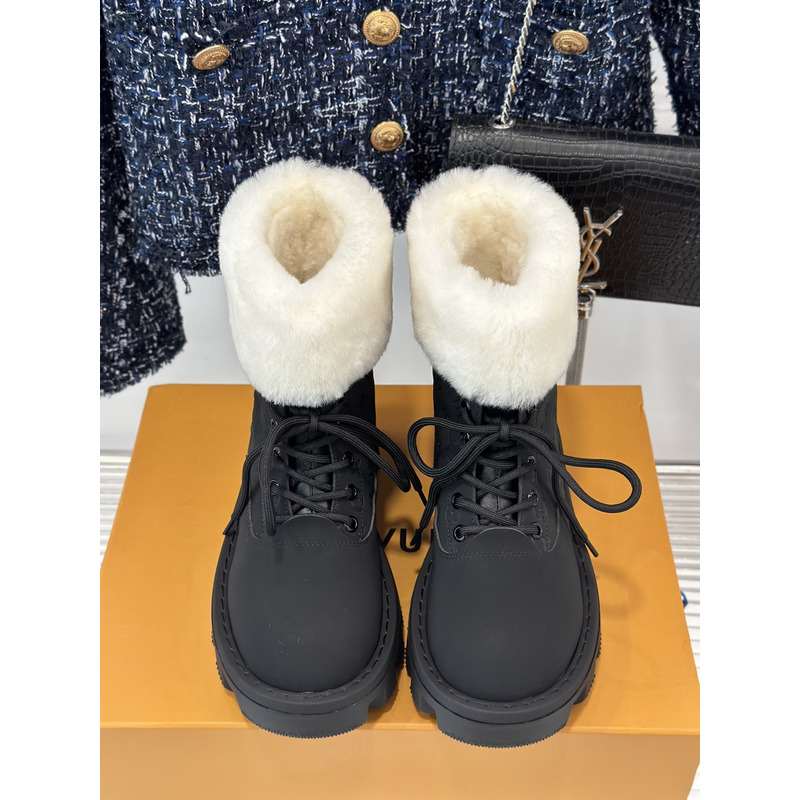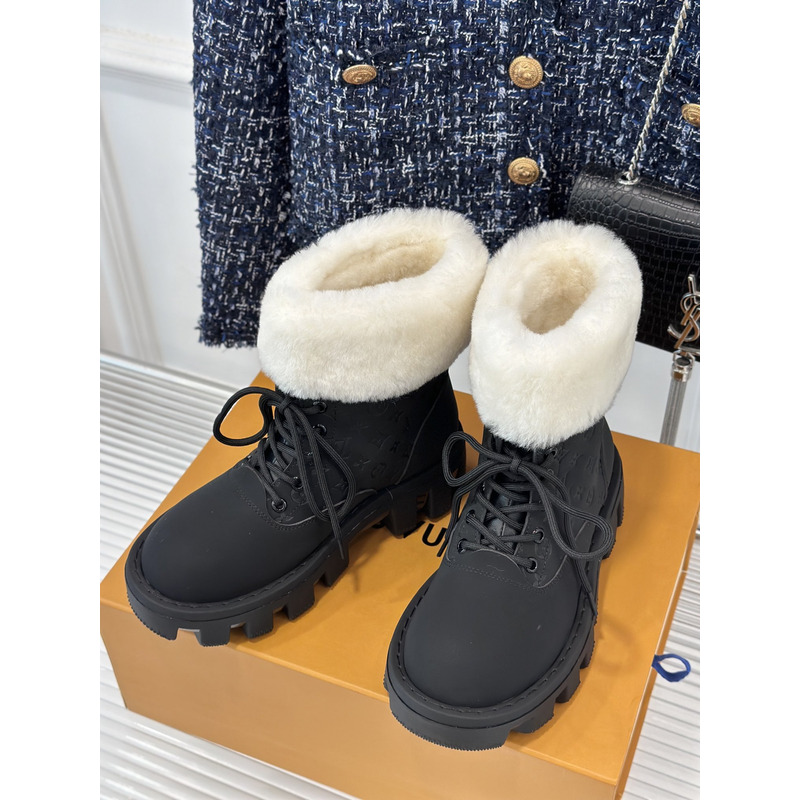 Louis Vuitton White Fur Trimmed Ankle Boot In Black