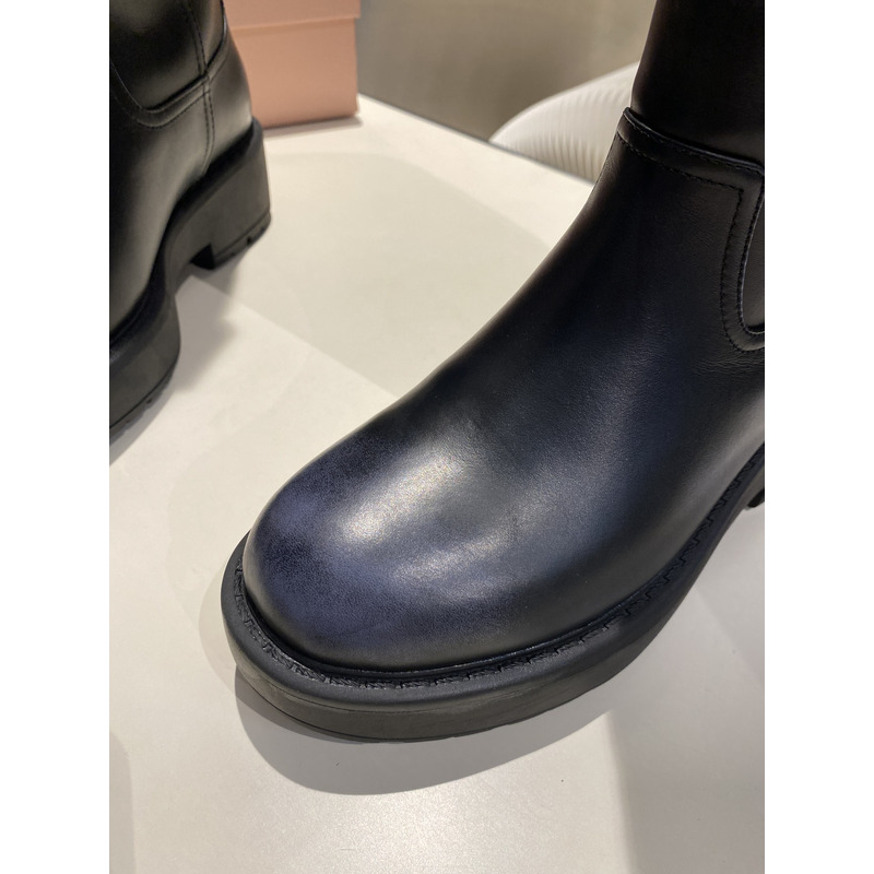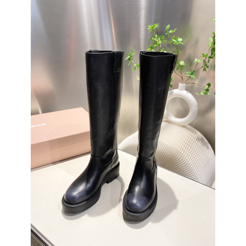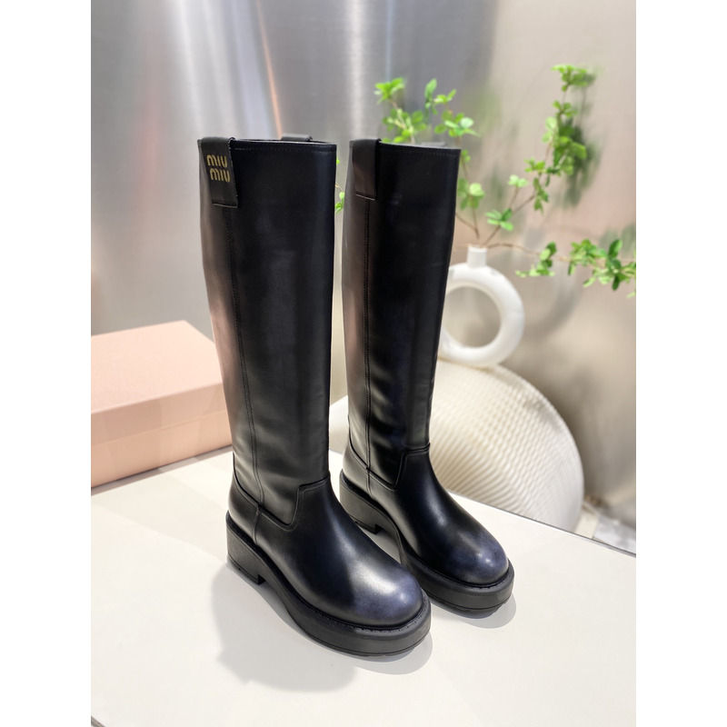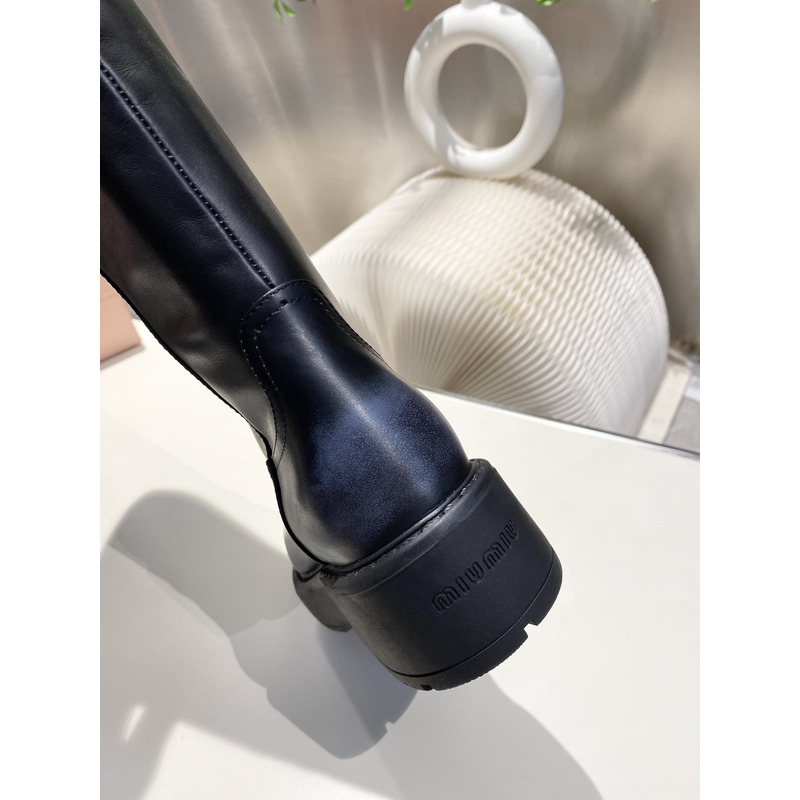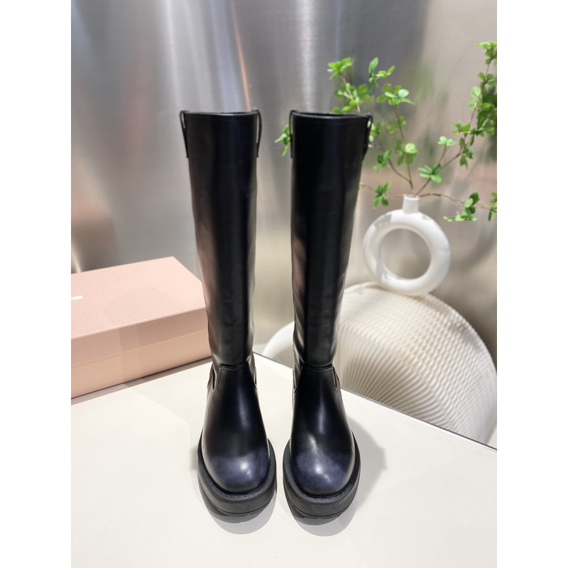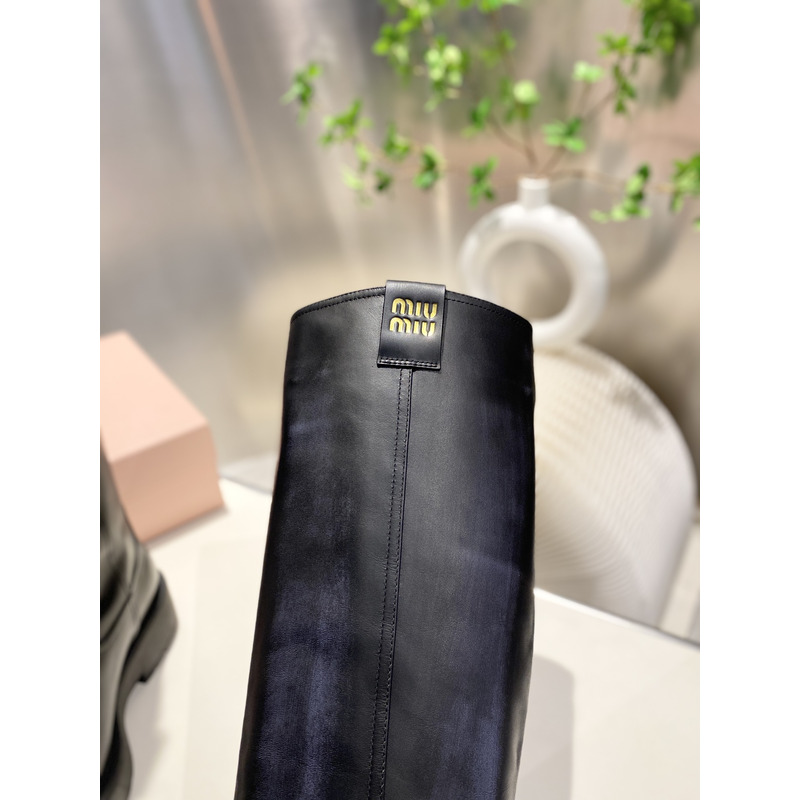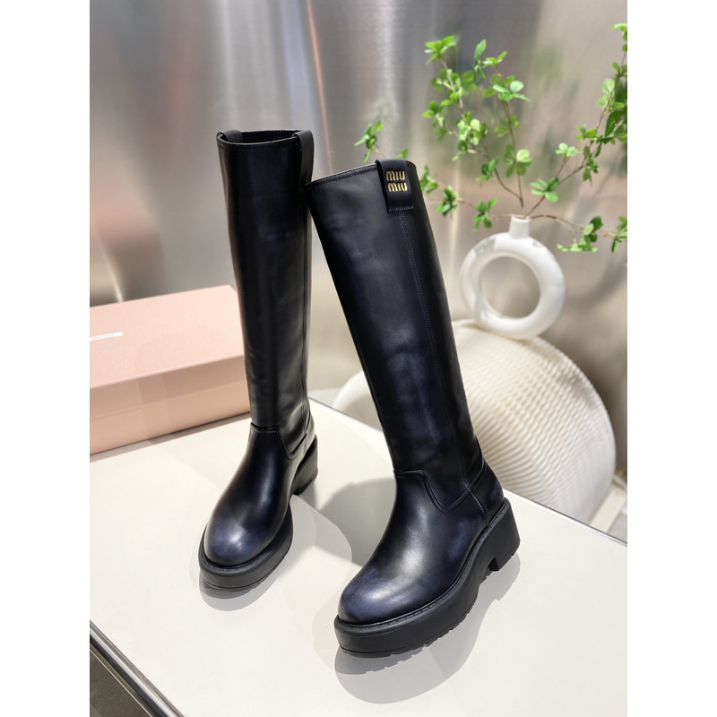 Miu Miu Logo-Embellished Leather Knee-High Boots Black