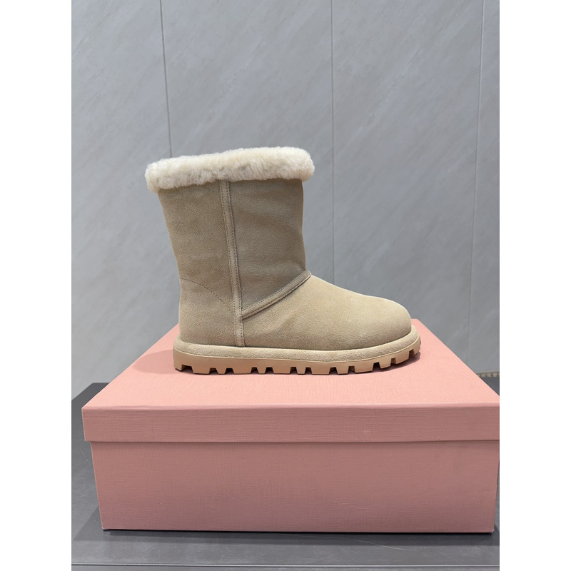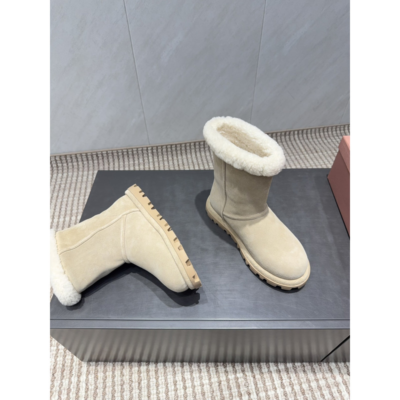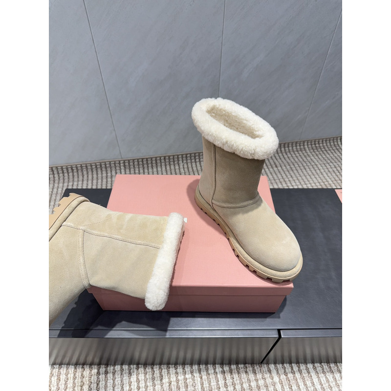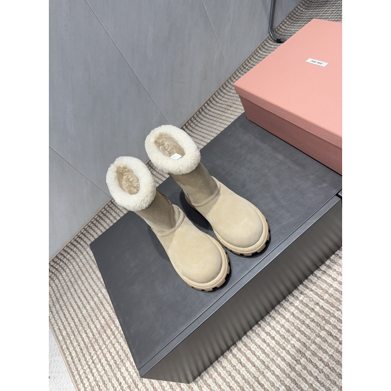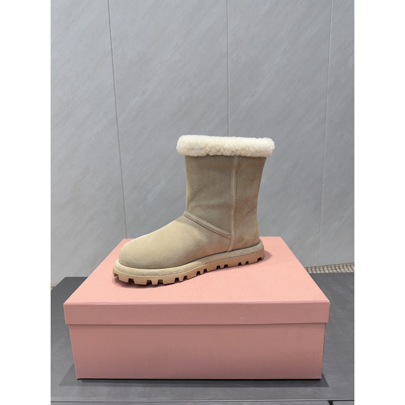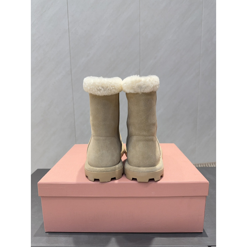 Miu Miu Suede & Shearling-Lined Boots In Light Beige