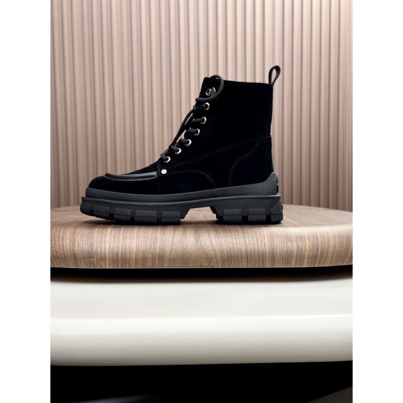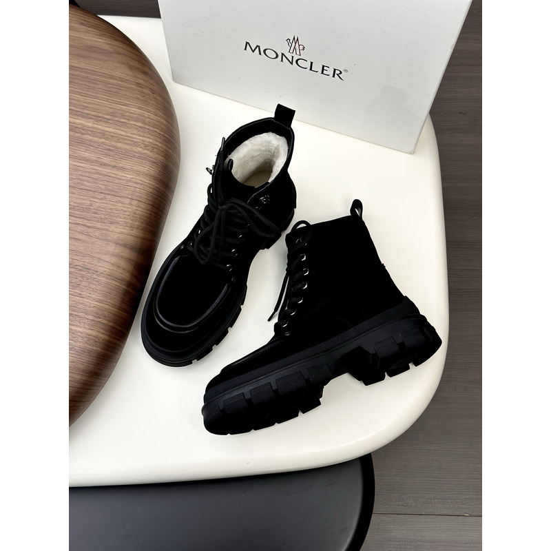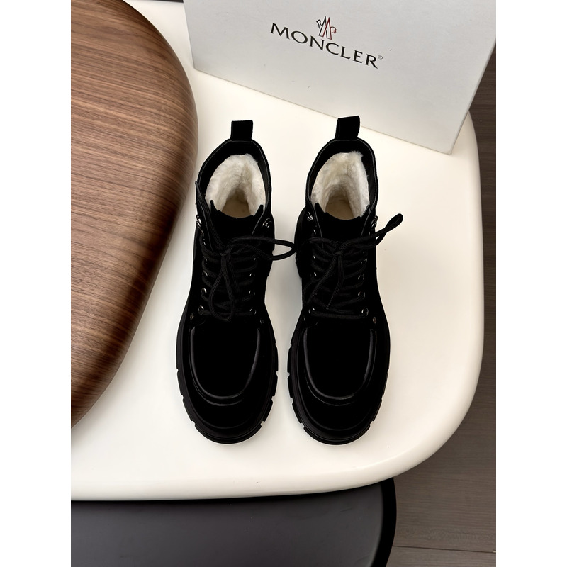 Moncler Peak Path Leather Lace Up Boots Black Suede