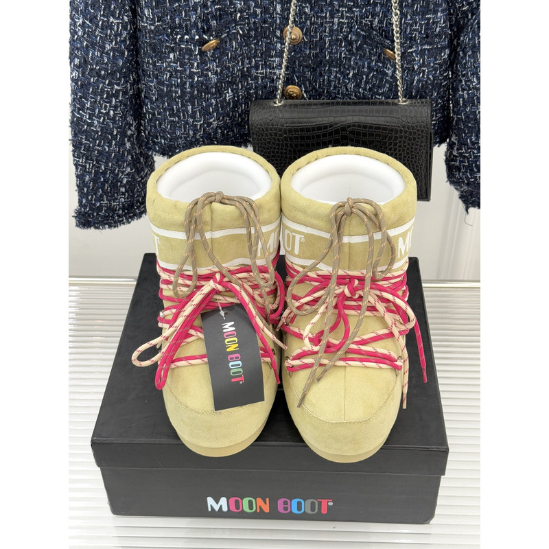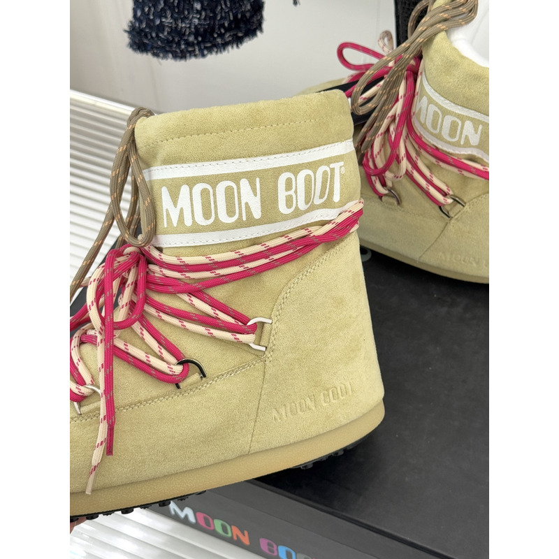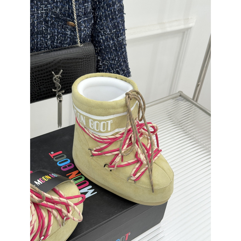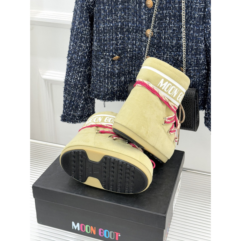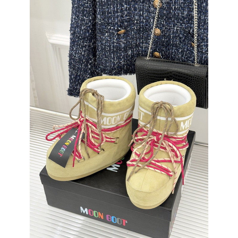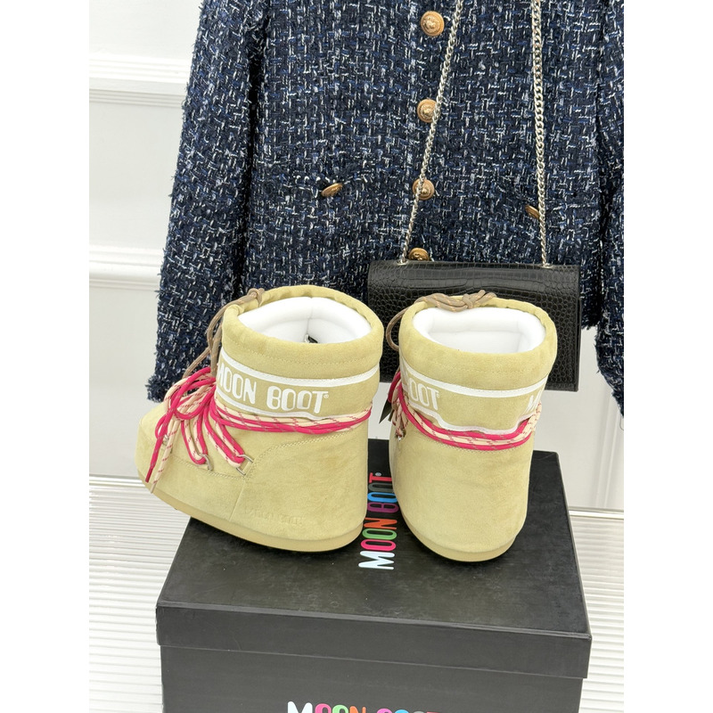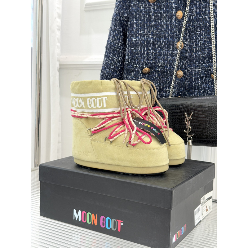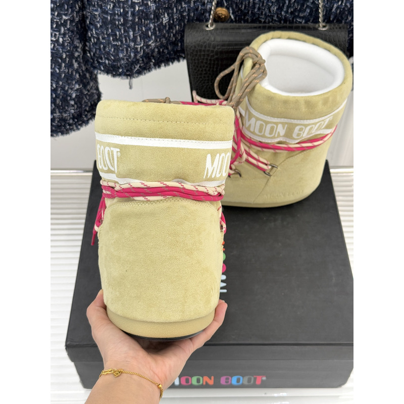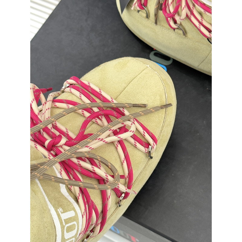 Moon Boot Icon Low Suede Boots With Red Contrast Laces Light Beige