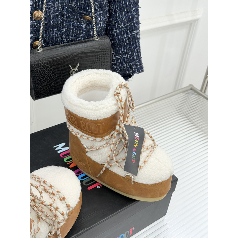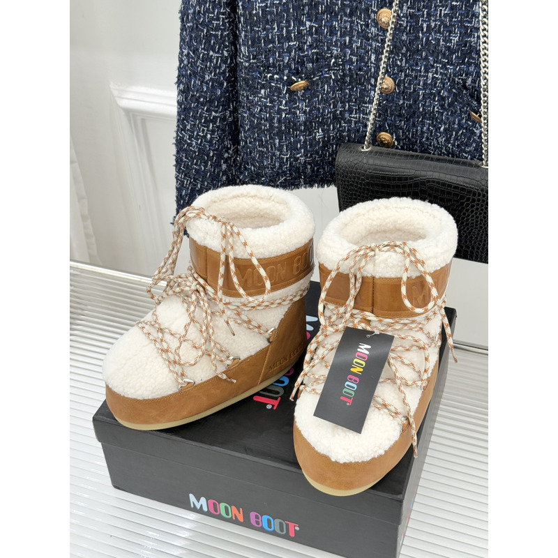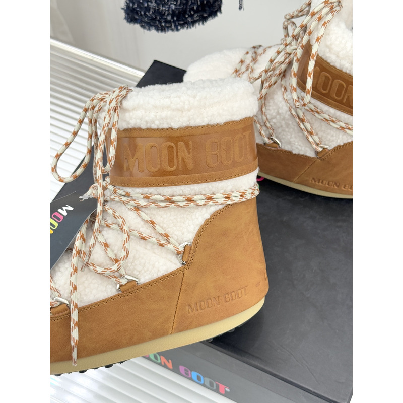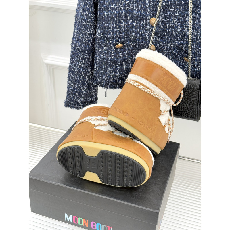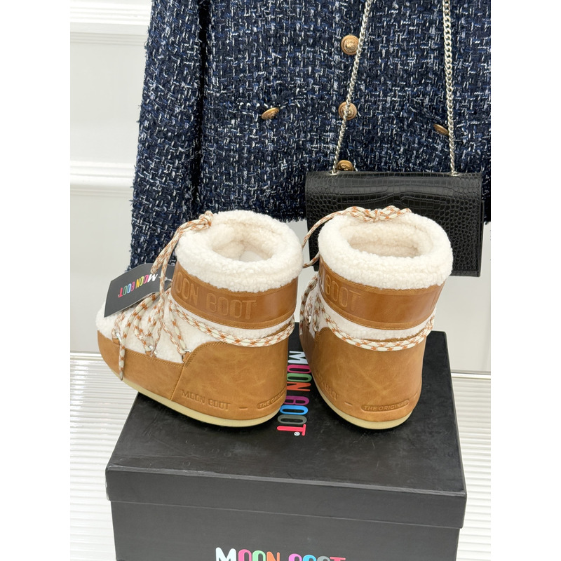Moon Boot Icon Low Two-Tone Boots In Camel & Off-White