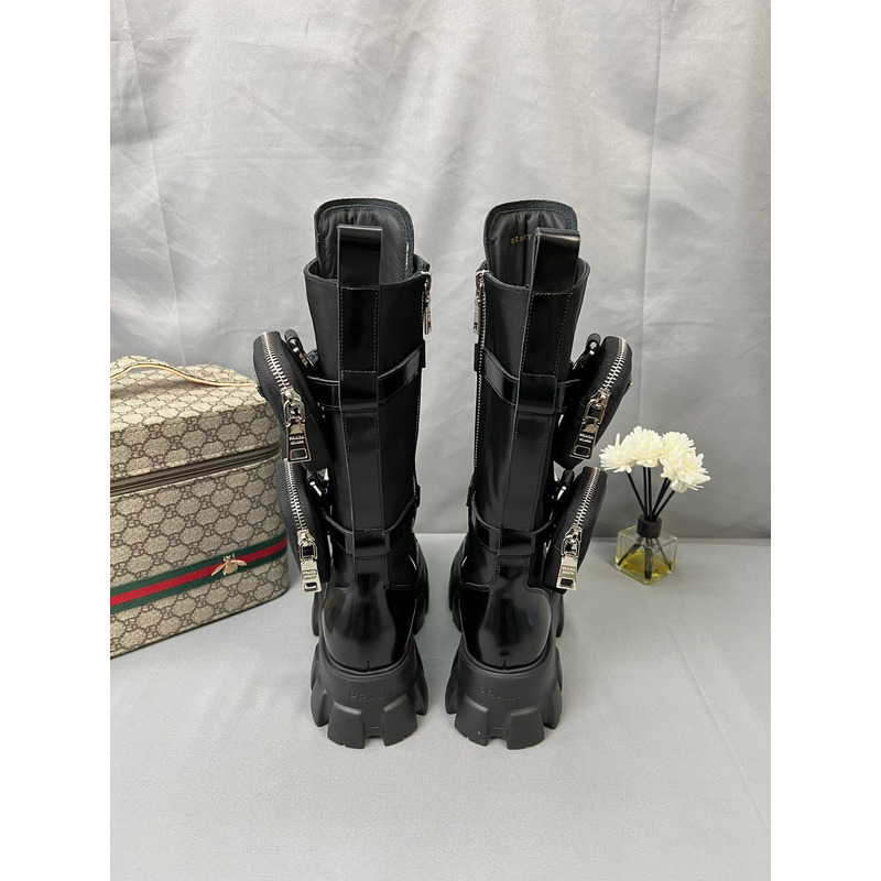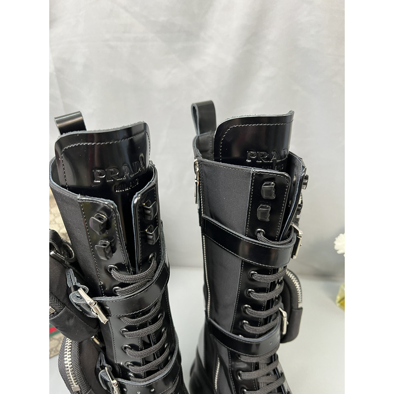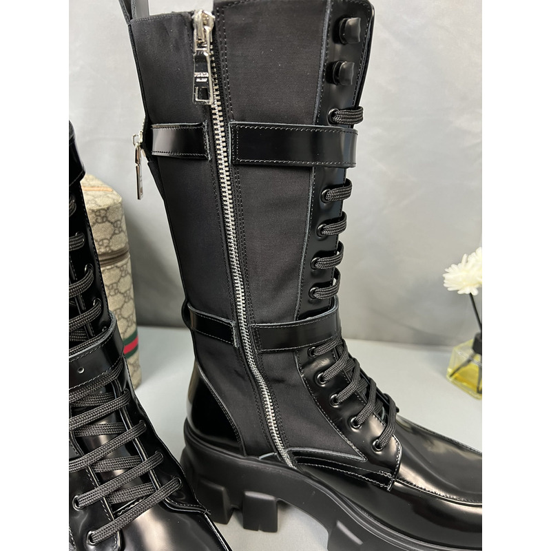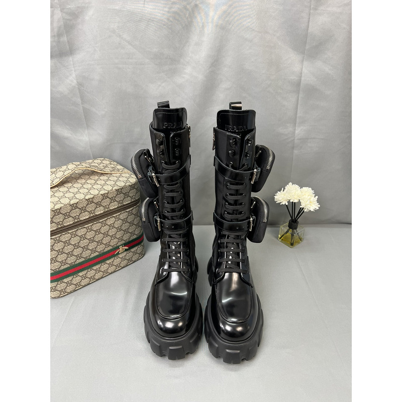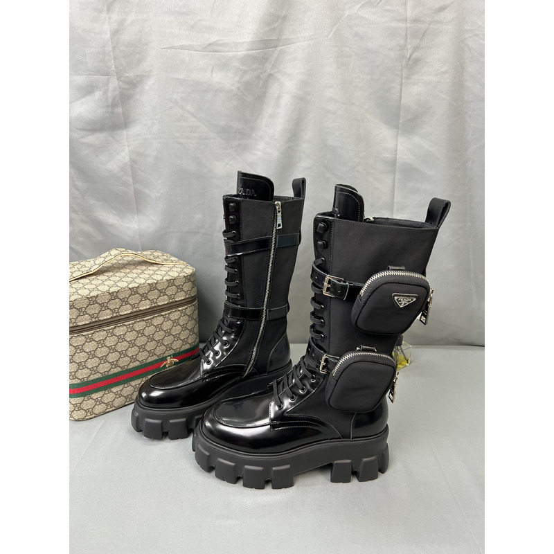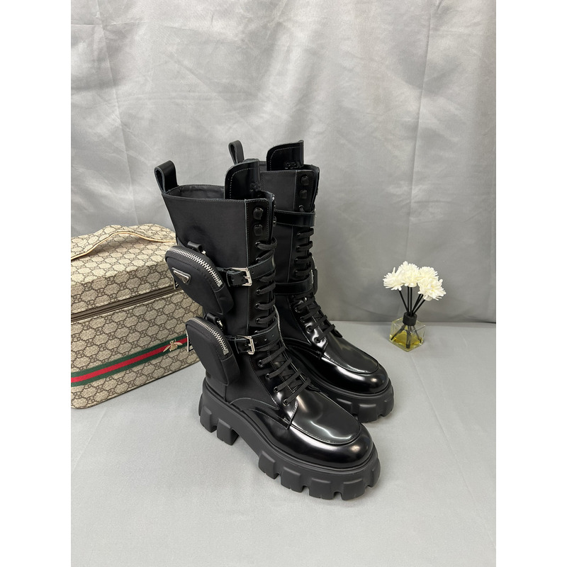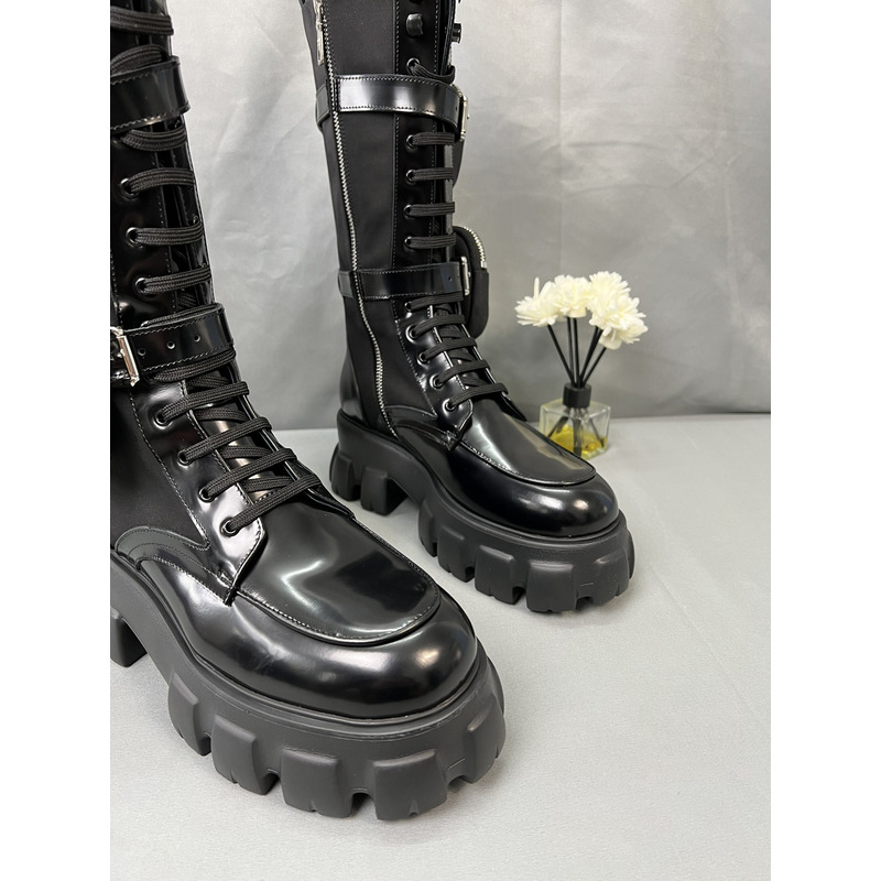 Prada Monolith Boots In Brushed Leather And Re-Nylon