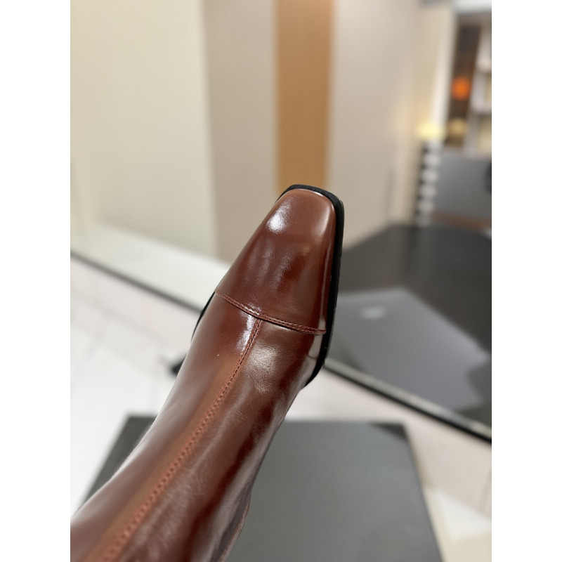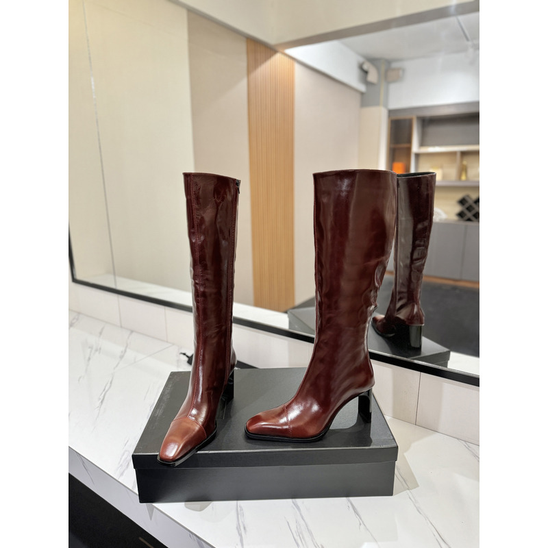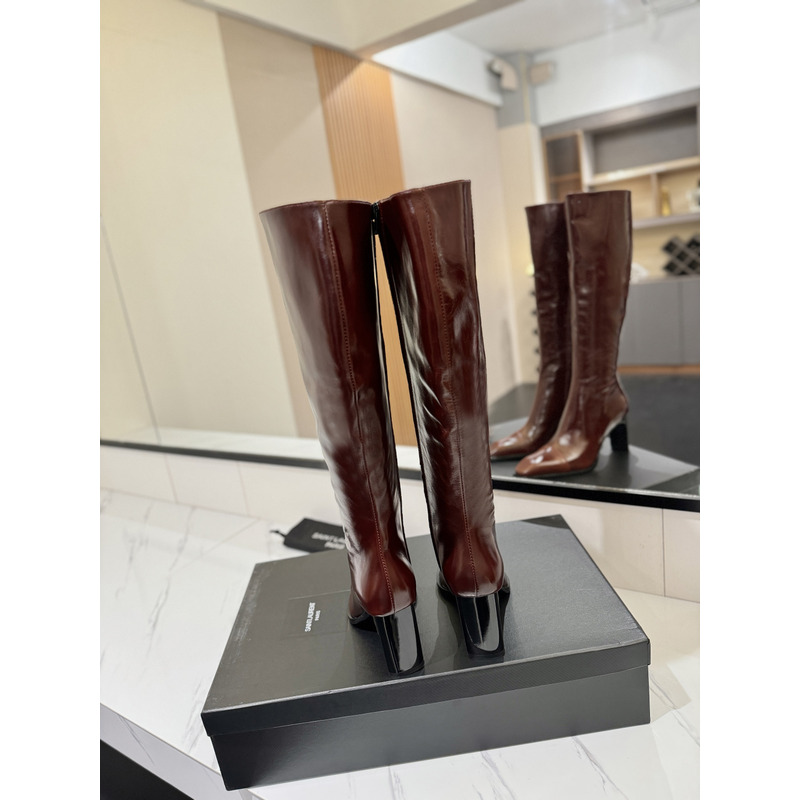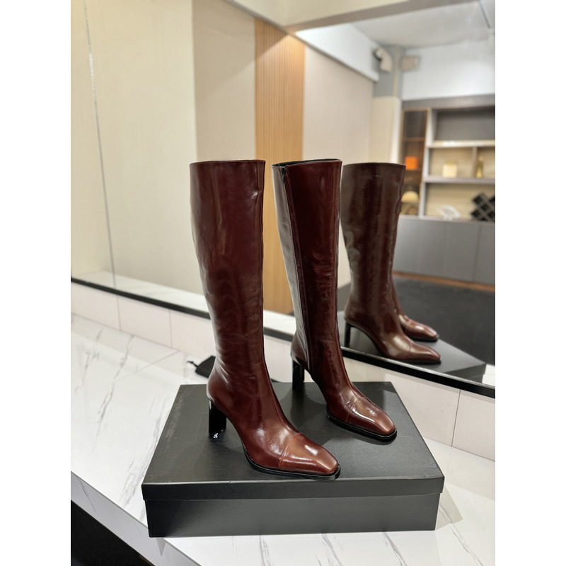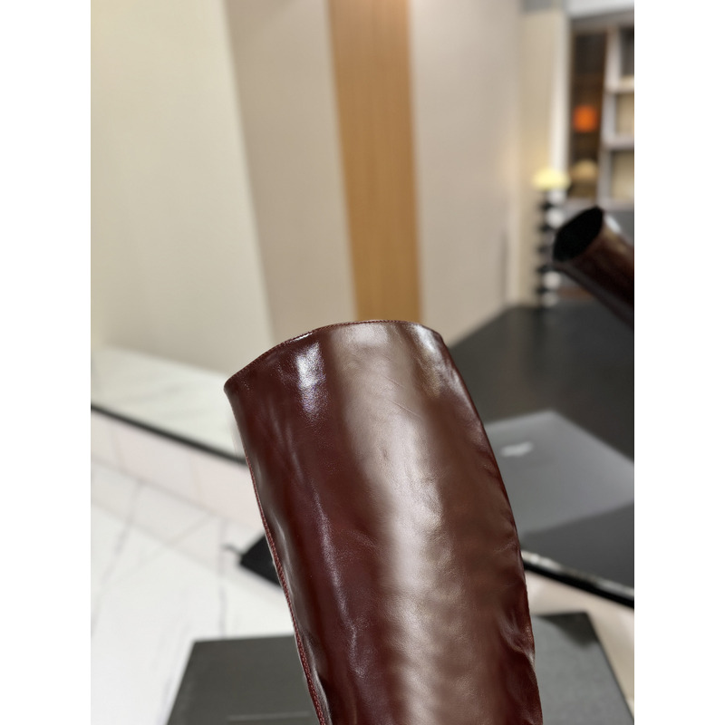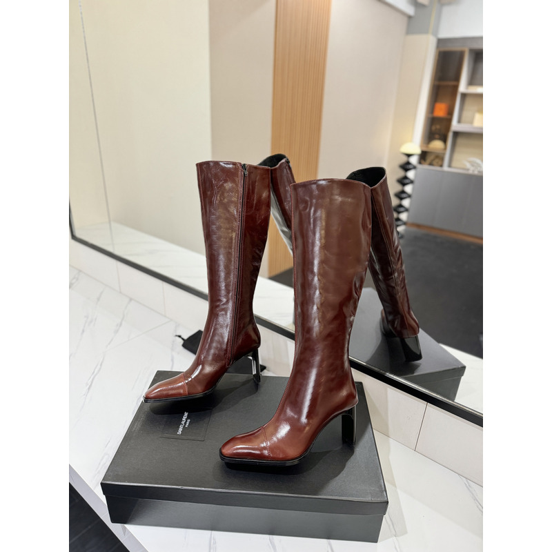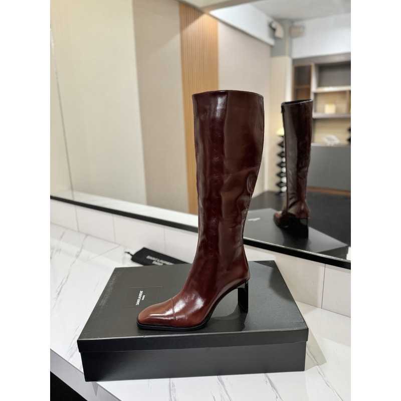 Saint Laurent Burgundy Patent Leather Square-Toe Knee-High Boots