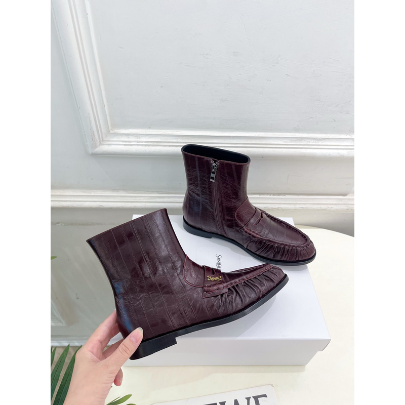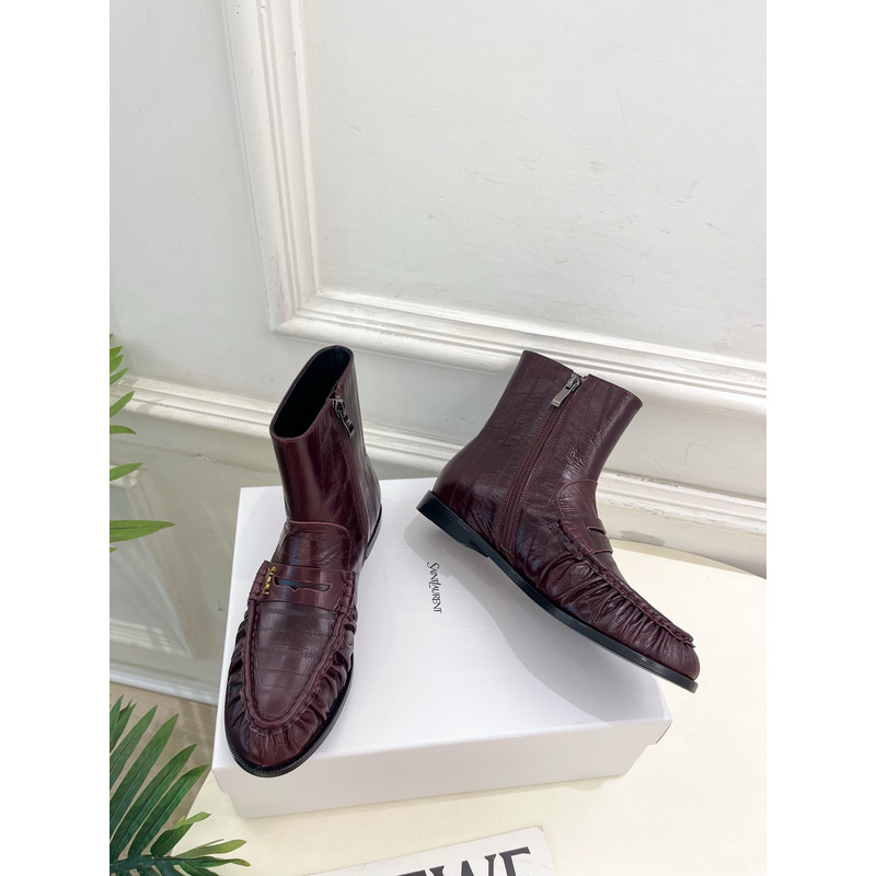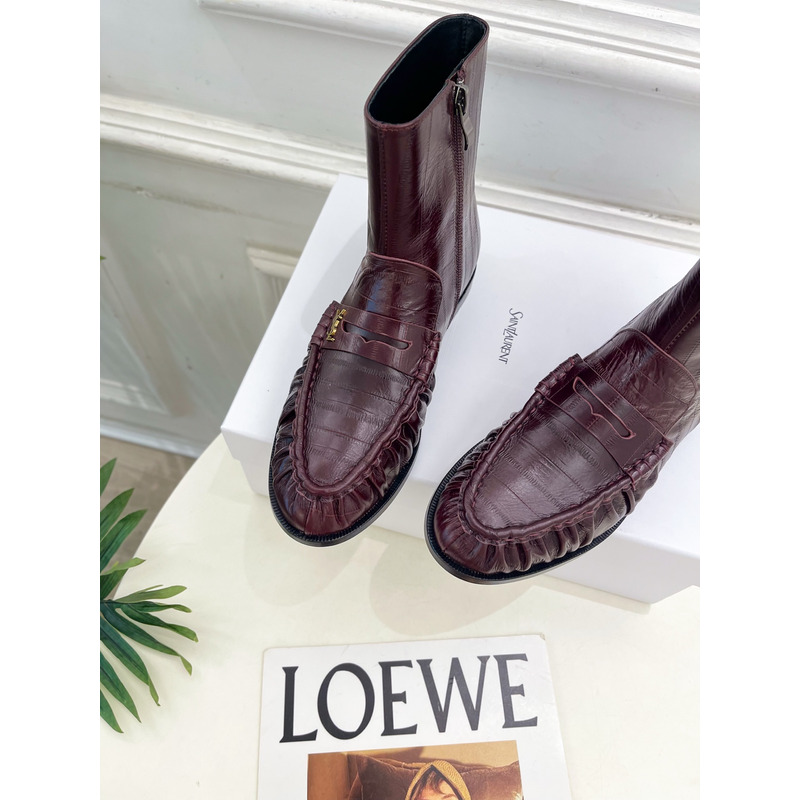 Saint Laurent Chestnut Leather Loafer Ankle Boot