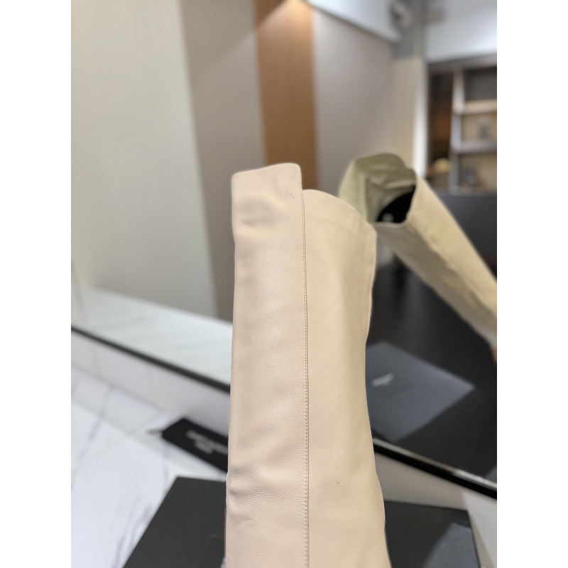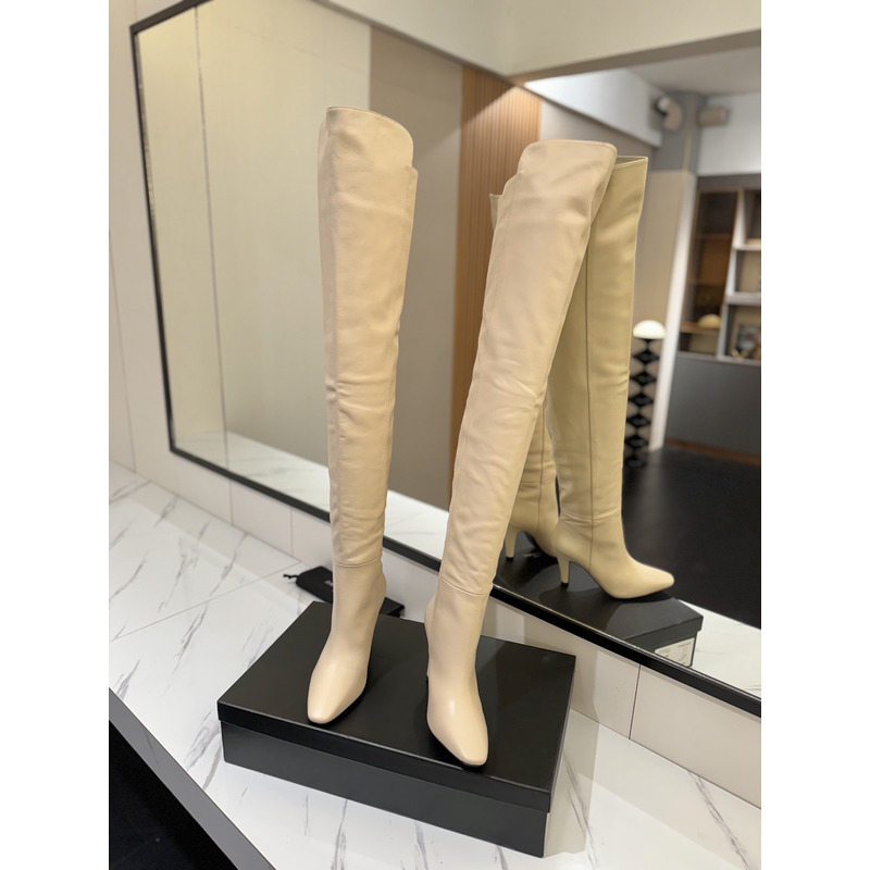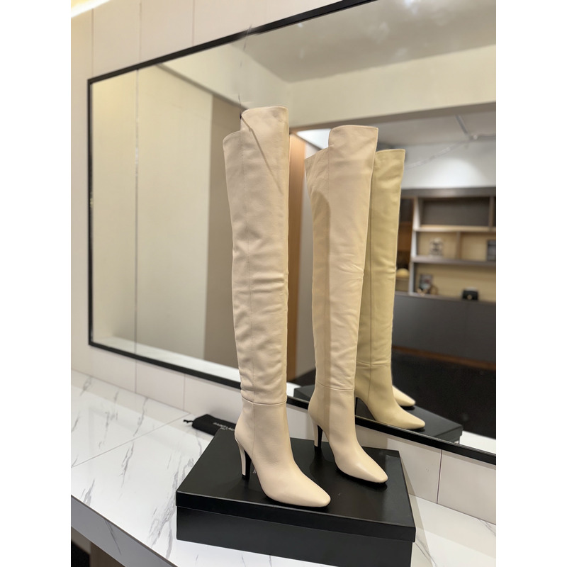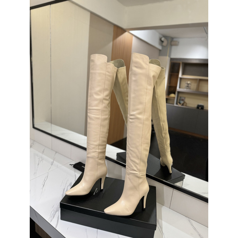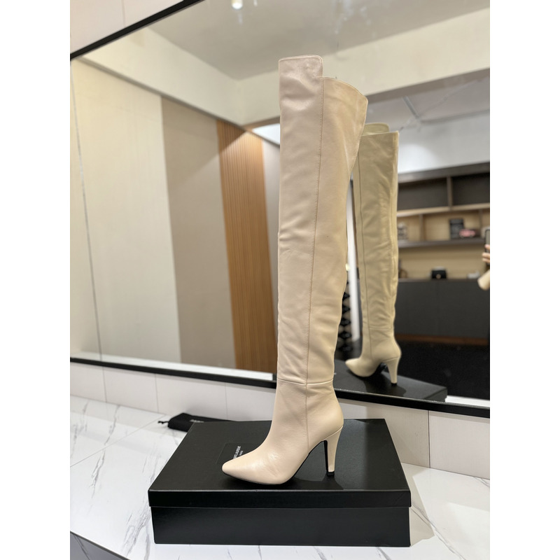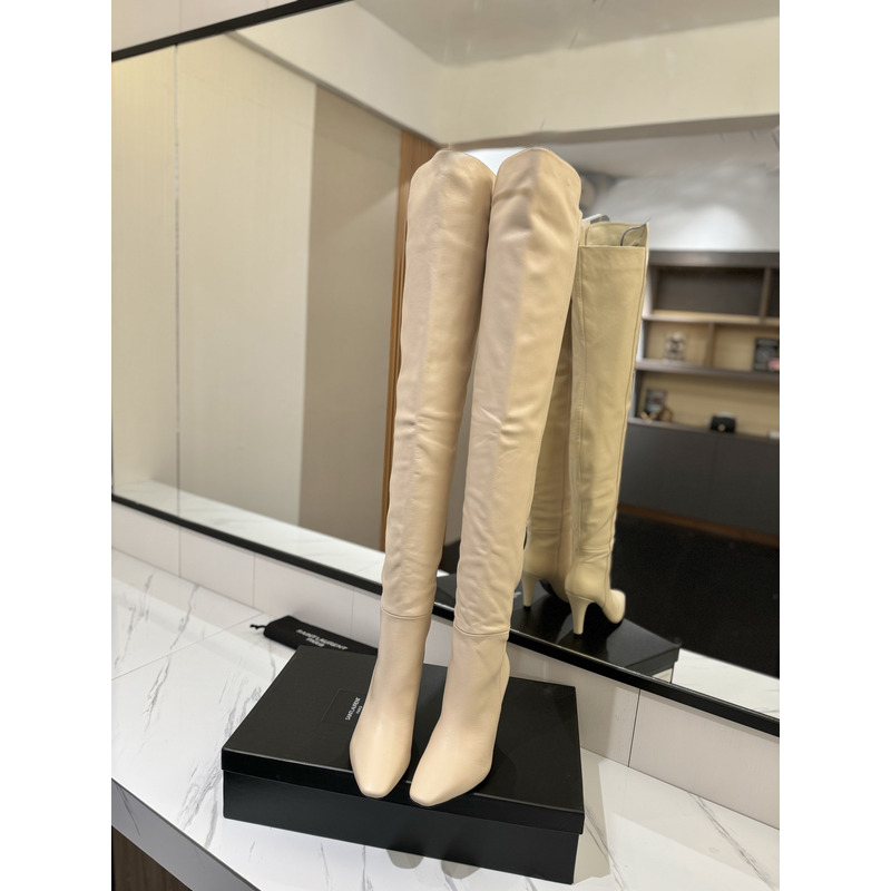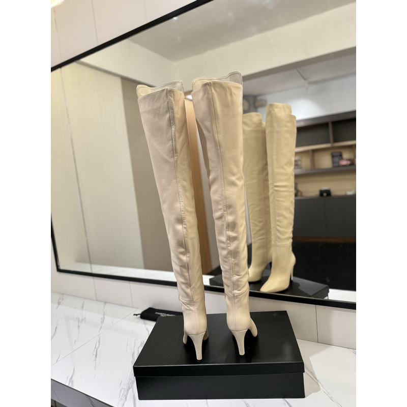 Saint Laurent Over-the-Knee Heeled Boots In Ivory Leather