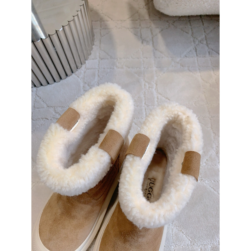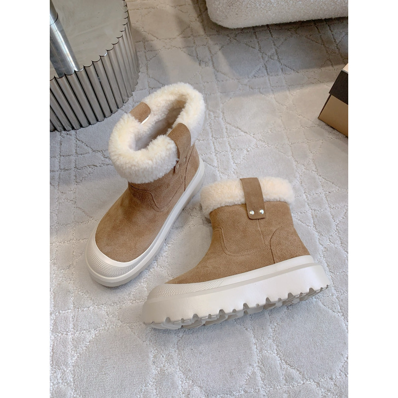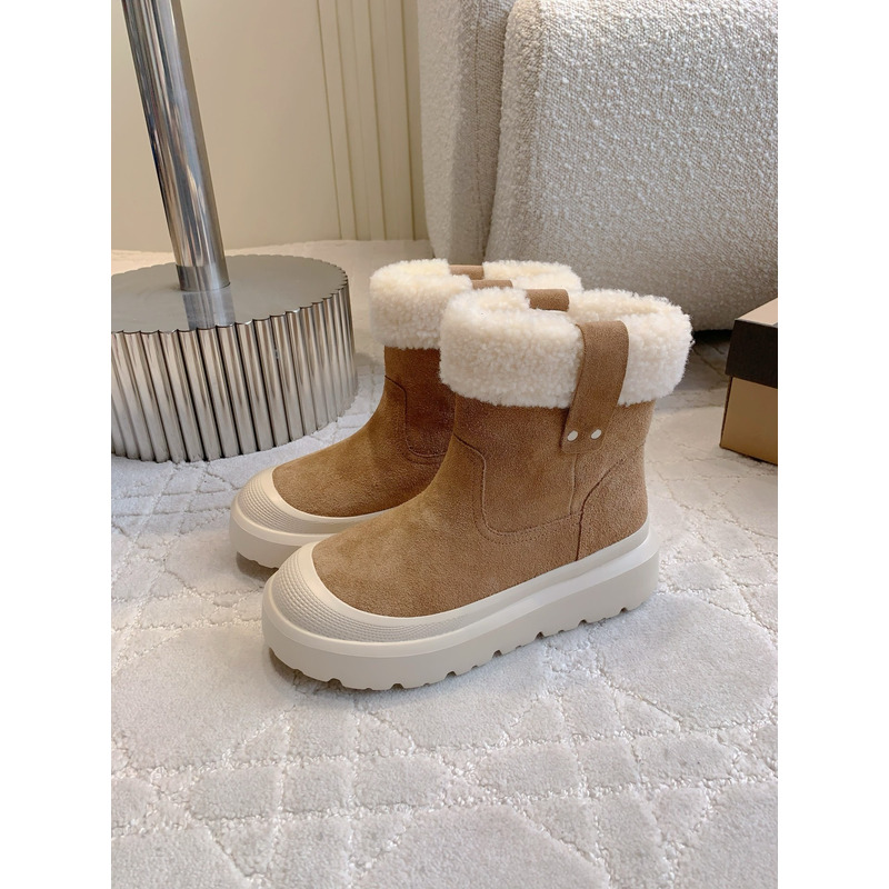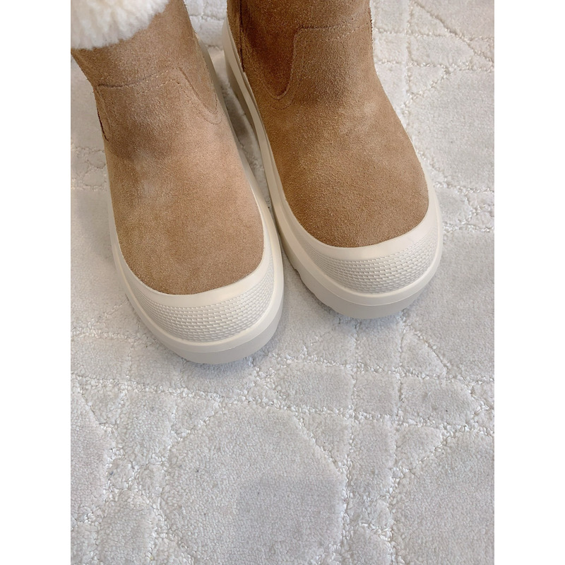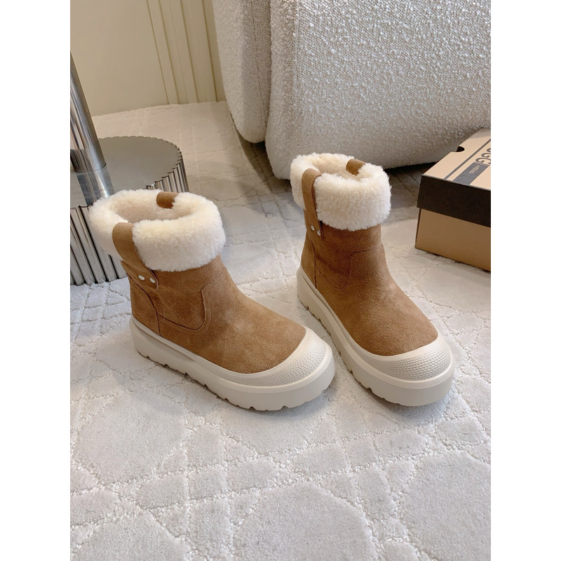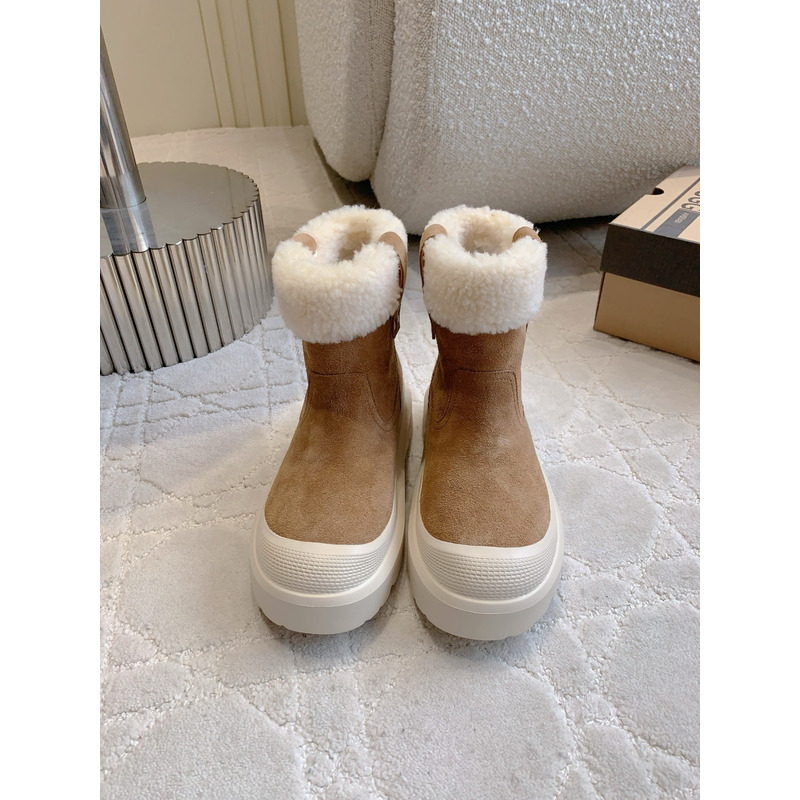 UGG Beige / Brown Platform Shearling-Lined Snow Boots