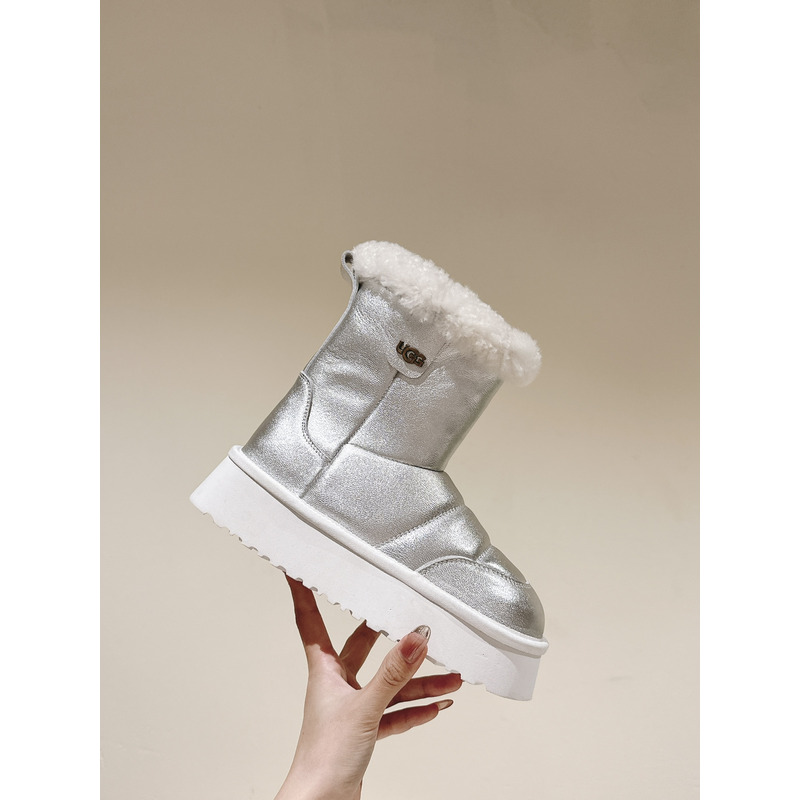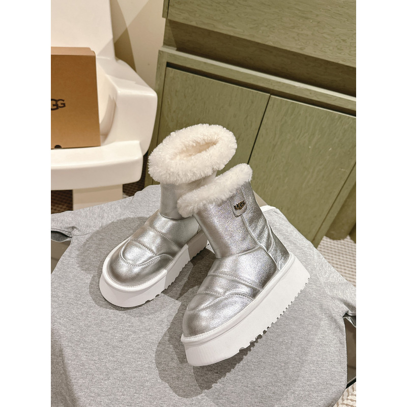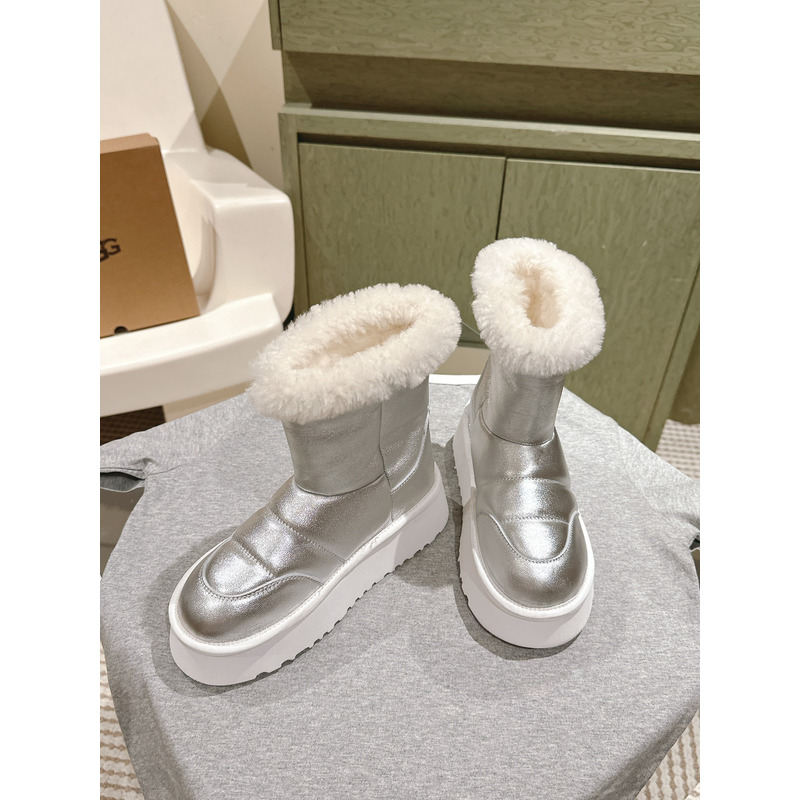 UGG Classic Platform Metallic Silver Shearling Boot