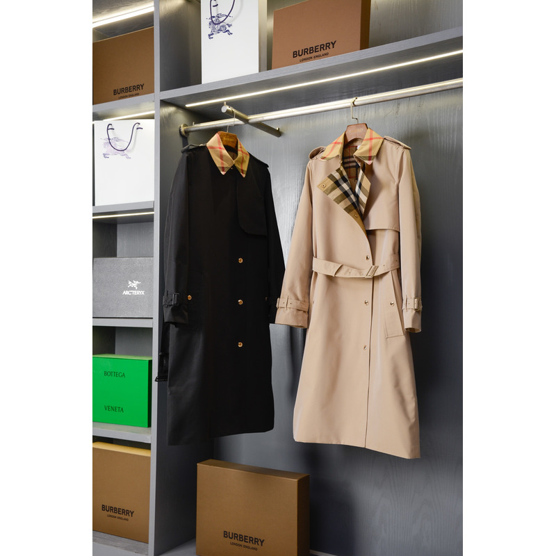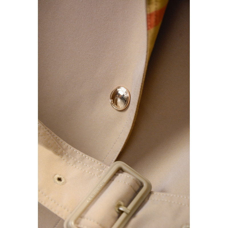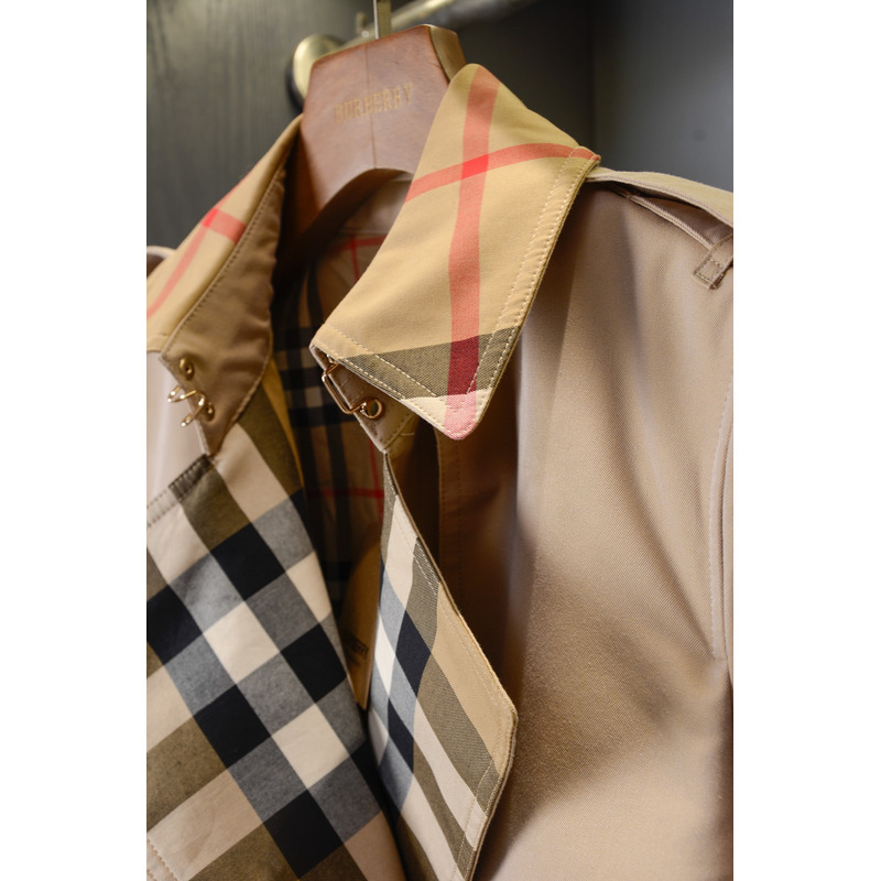 Burberry Long Check Collar Gabardine Trench Coat In Honey