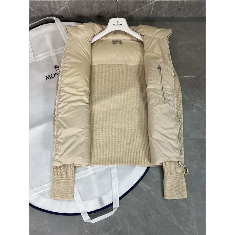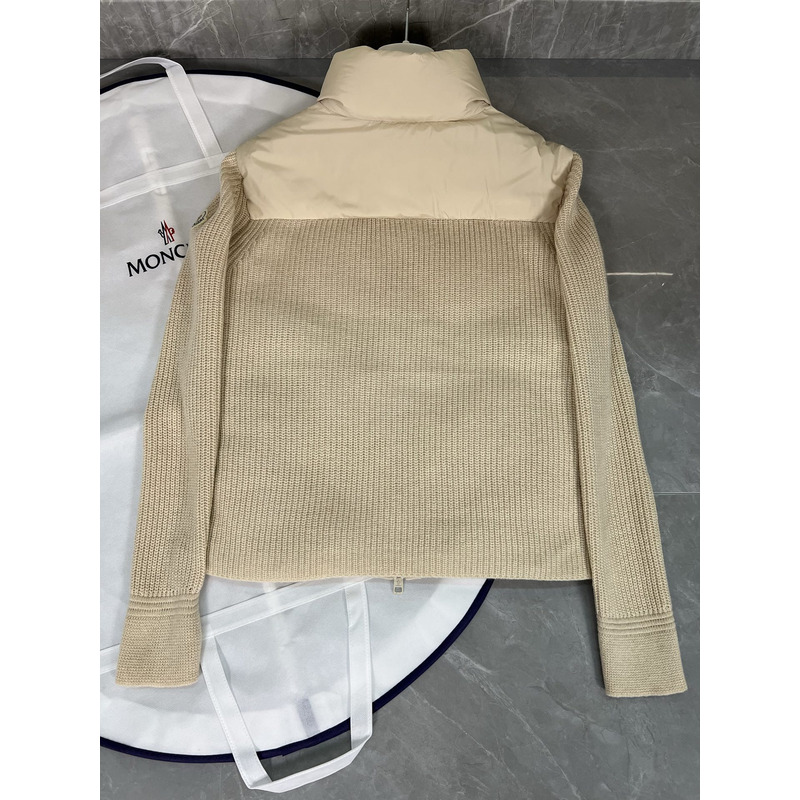 Moncler Padded Wool & Cashmere Zip-Up Cardigan Beige