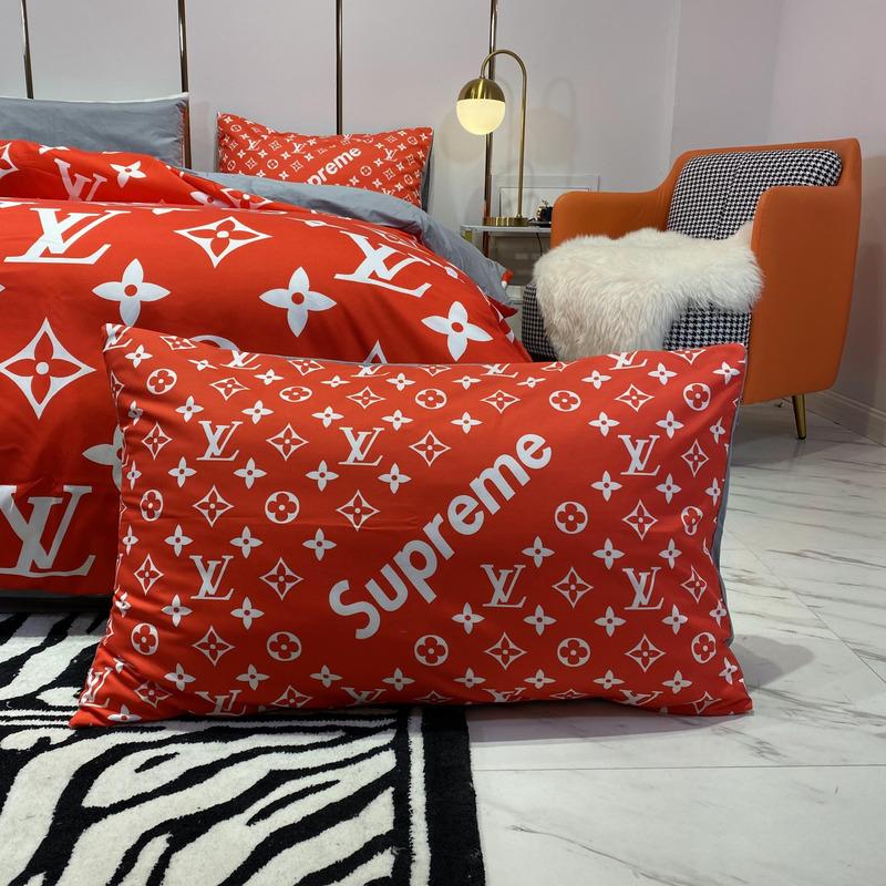 Louis Vuitton x Supreme In Signature Red Monogram Bedding Set