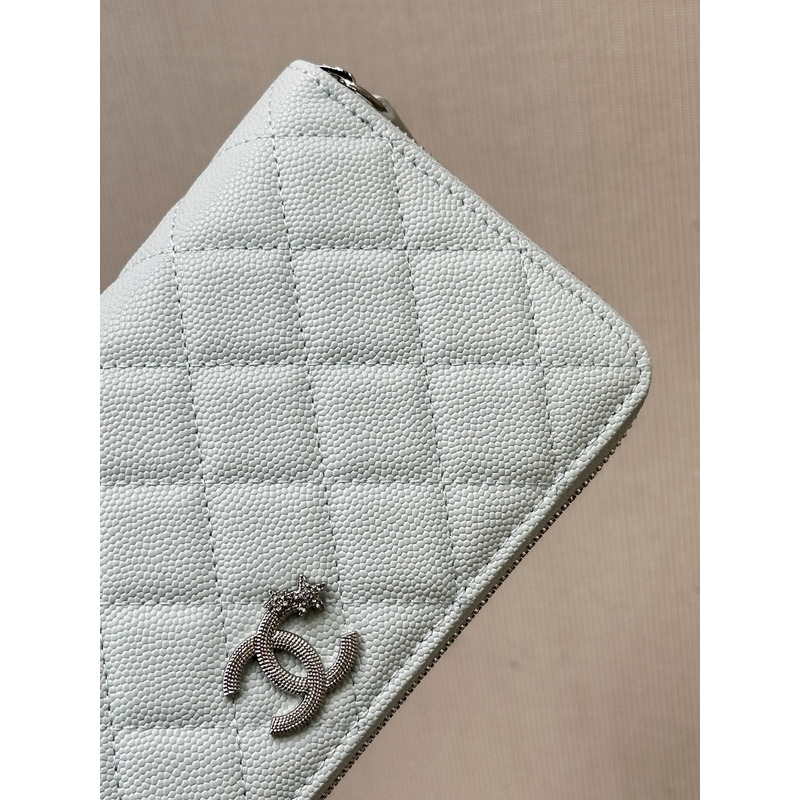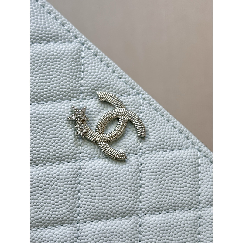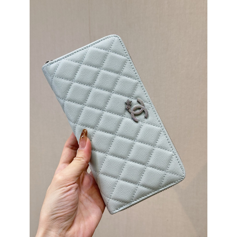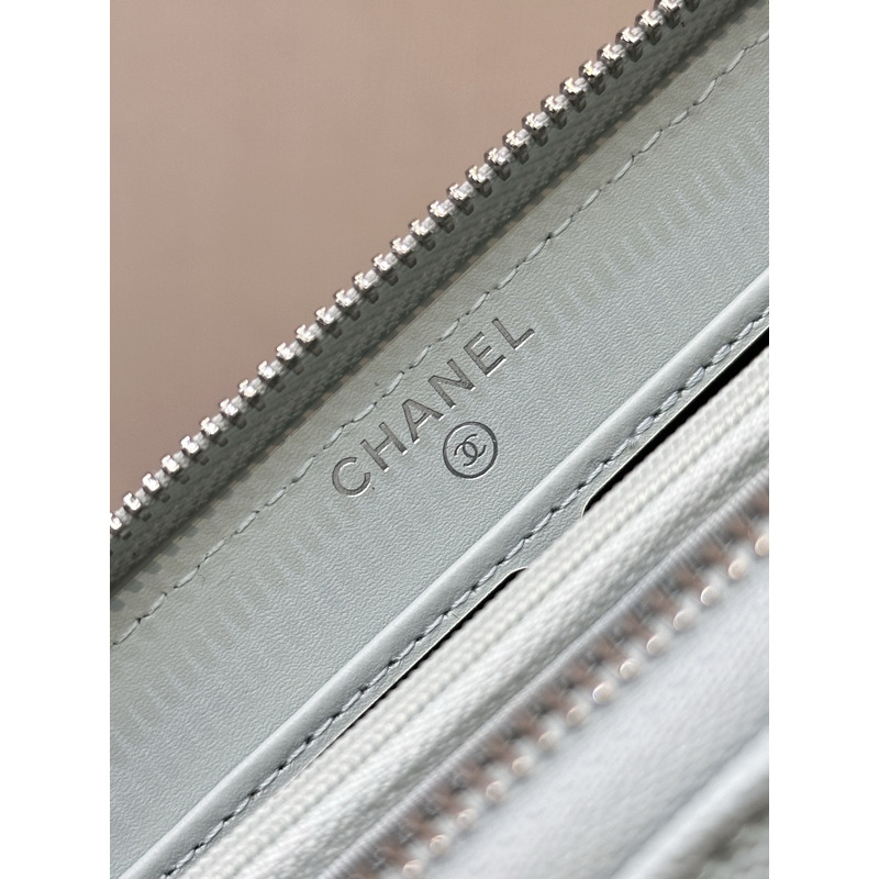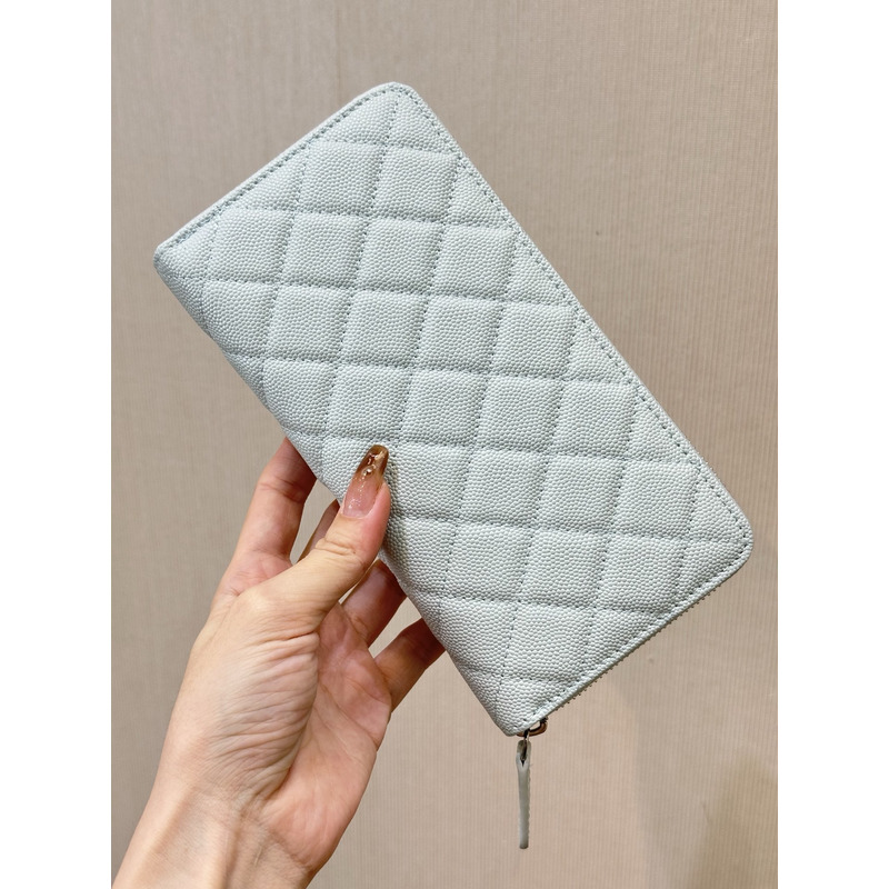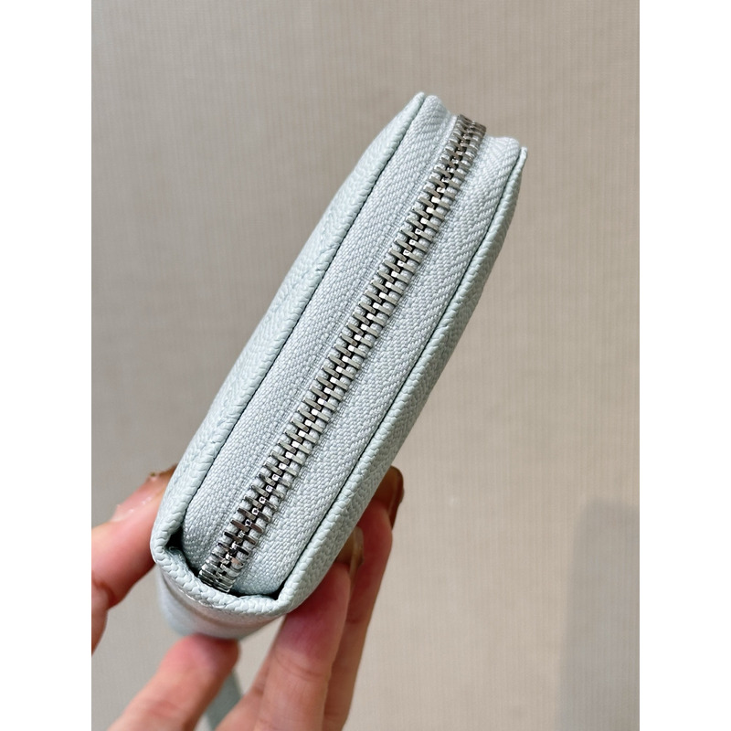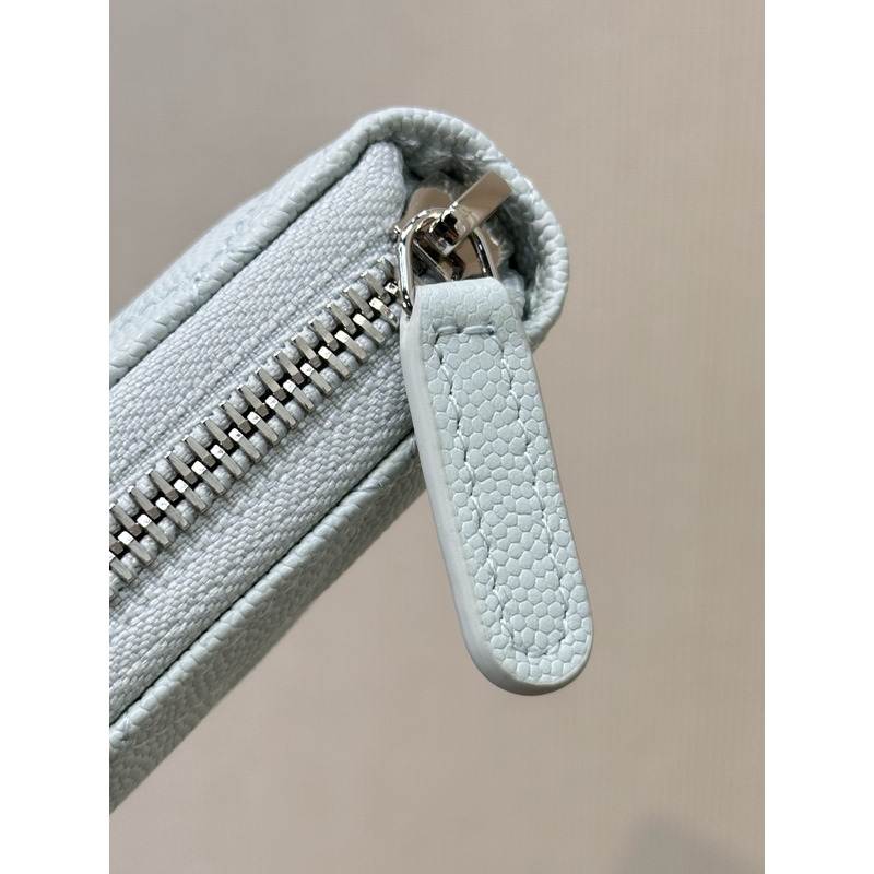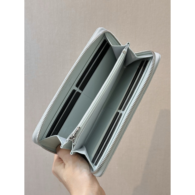 Chanel Classic Quilted Zipped Wallet In Light Grey Blue