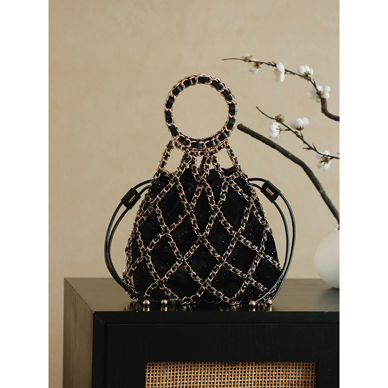 Chanel 2021 Runway Black Velvet Drawstring Bag