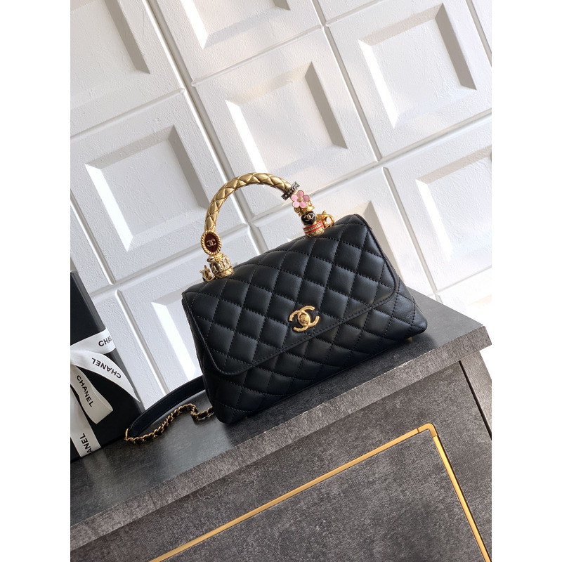 Chanel Medium Coco Handle Quilted Leather Handbag With Decorative Handle In Black