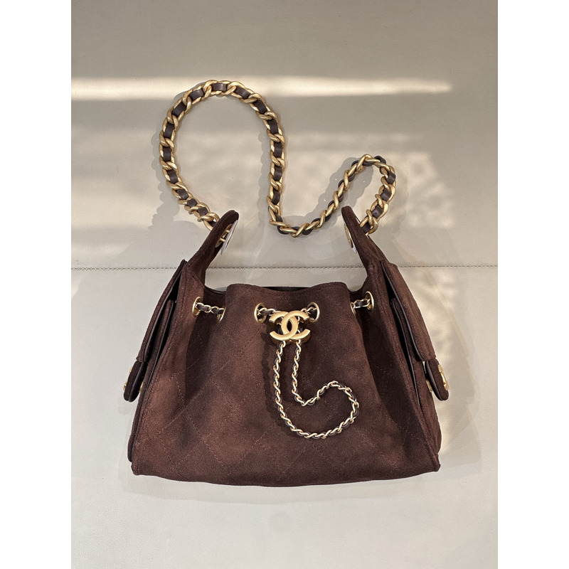 Chanel Maxi Hobo Bag Suede Calfskin Lambskin & Gold-tone Metal