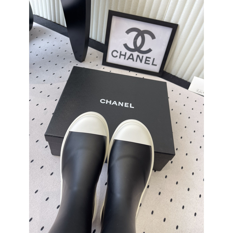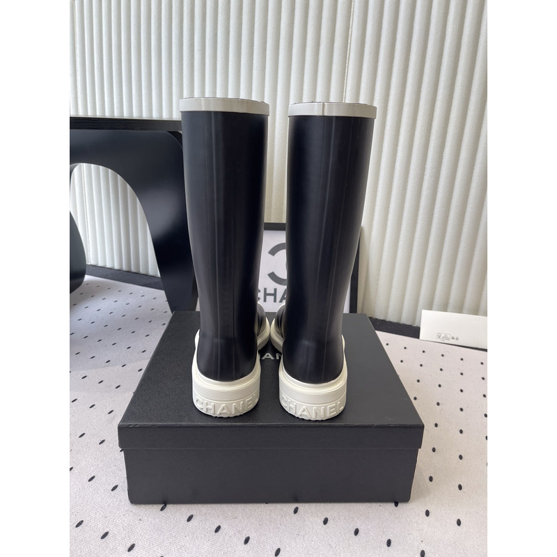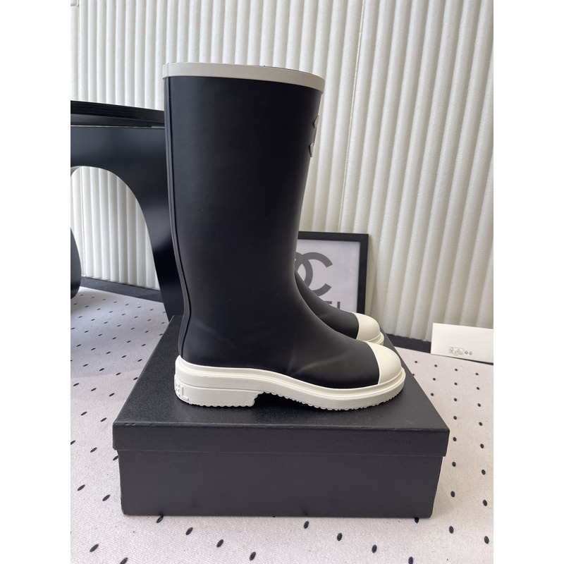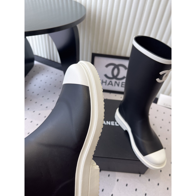 Chanel Rubber PVC CC Logo Two-Tone Rain Boots In Black/White