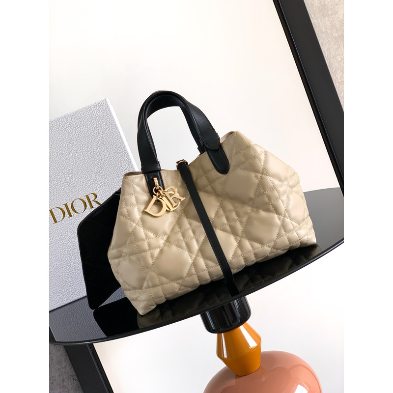 Dior Medium Toujours Bag Calfskin Beige And Black