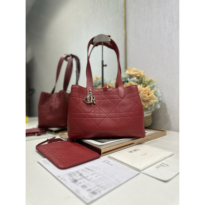 Dior Medium Toujours Bag In Burgundy Flat Macrocanna