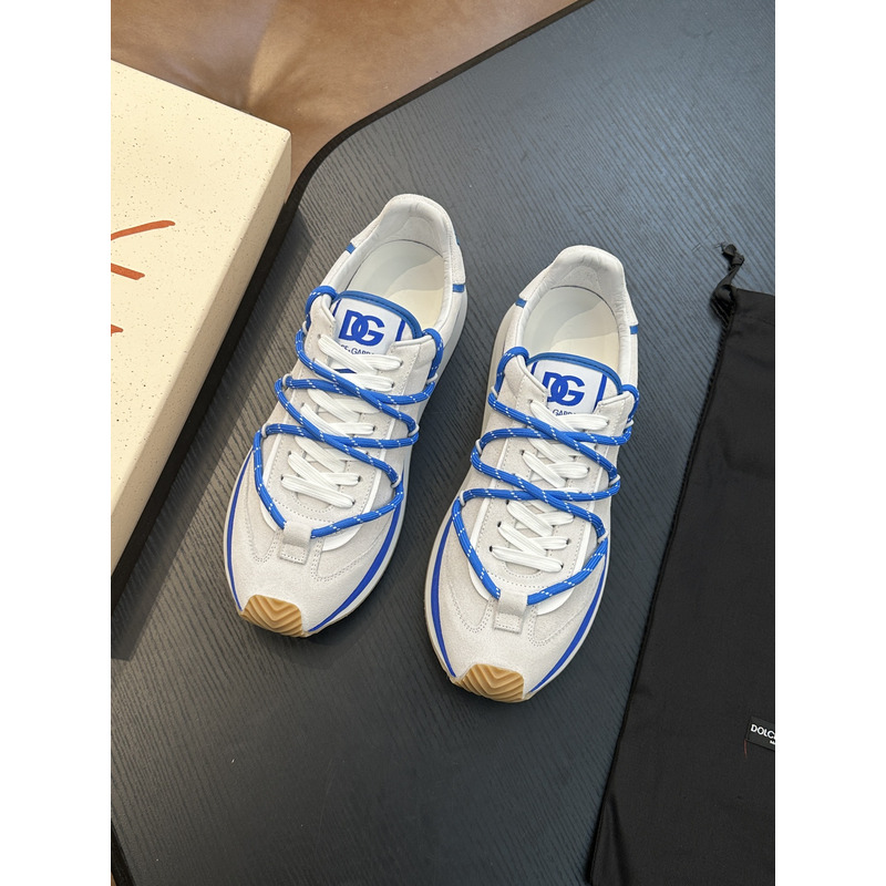 Dolce & Gabbana DG Logo White & Blue Lace-Up Sneakers